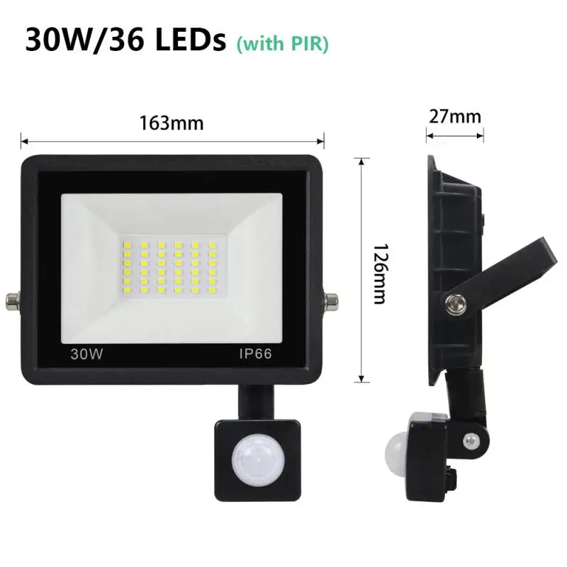 100/50 Вт, 30 Вт/10 Вт движения PIR Сенсор Светодиодный прожектор светильник Водонепроницаемый Точечный светильник потолочные светильник напольный светильник ing для садово-уличный светодиодный настенный светильник
