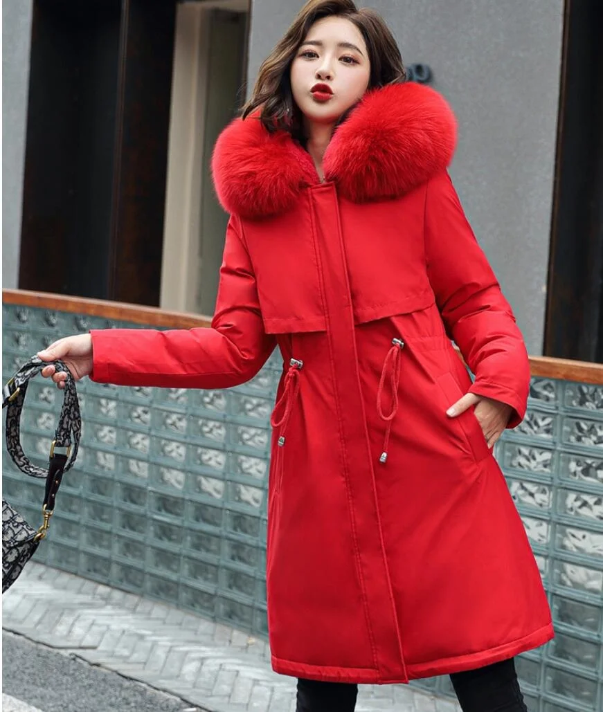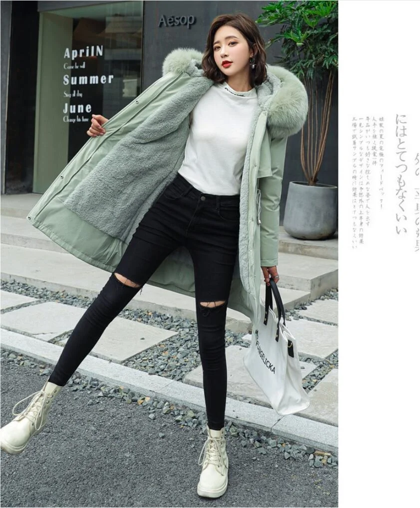 Женское пальто с капюшоном зимнее хлопковое воротником из 2018 меха енота