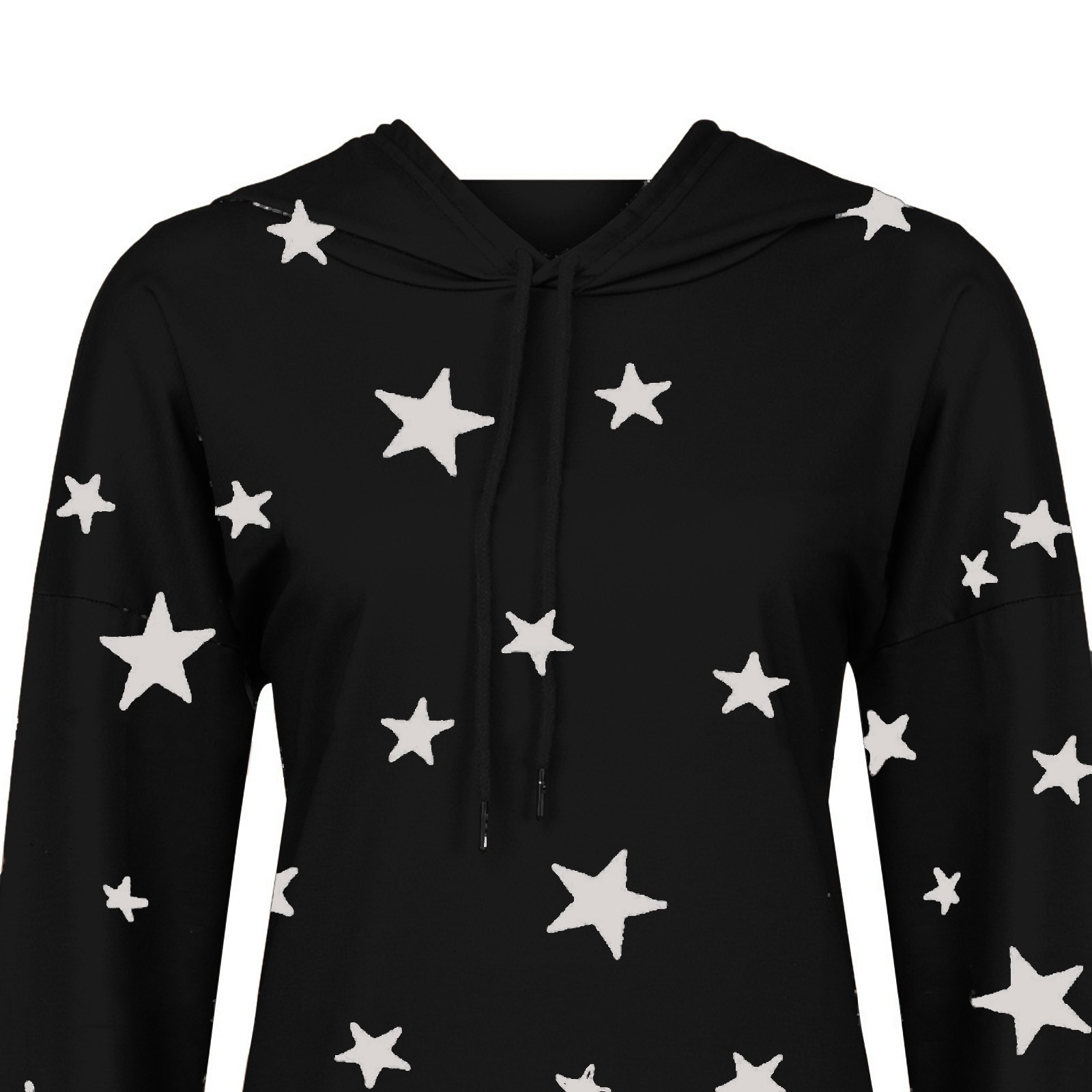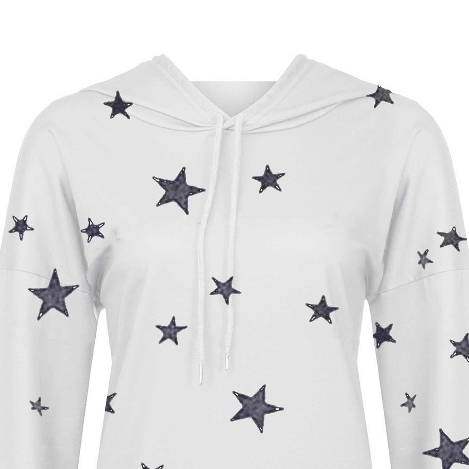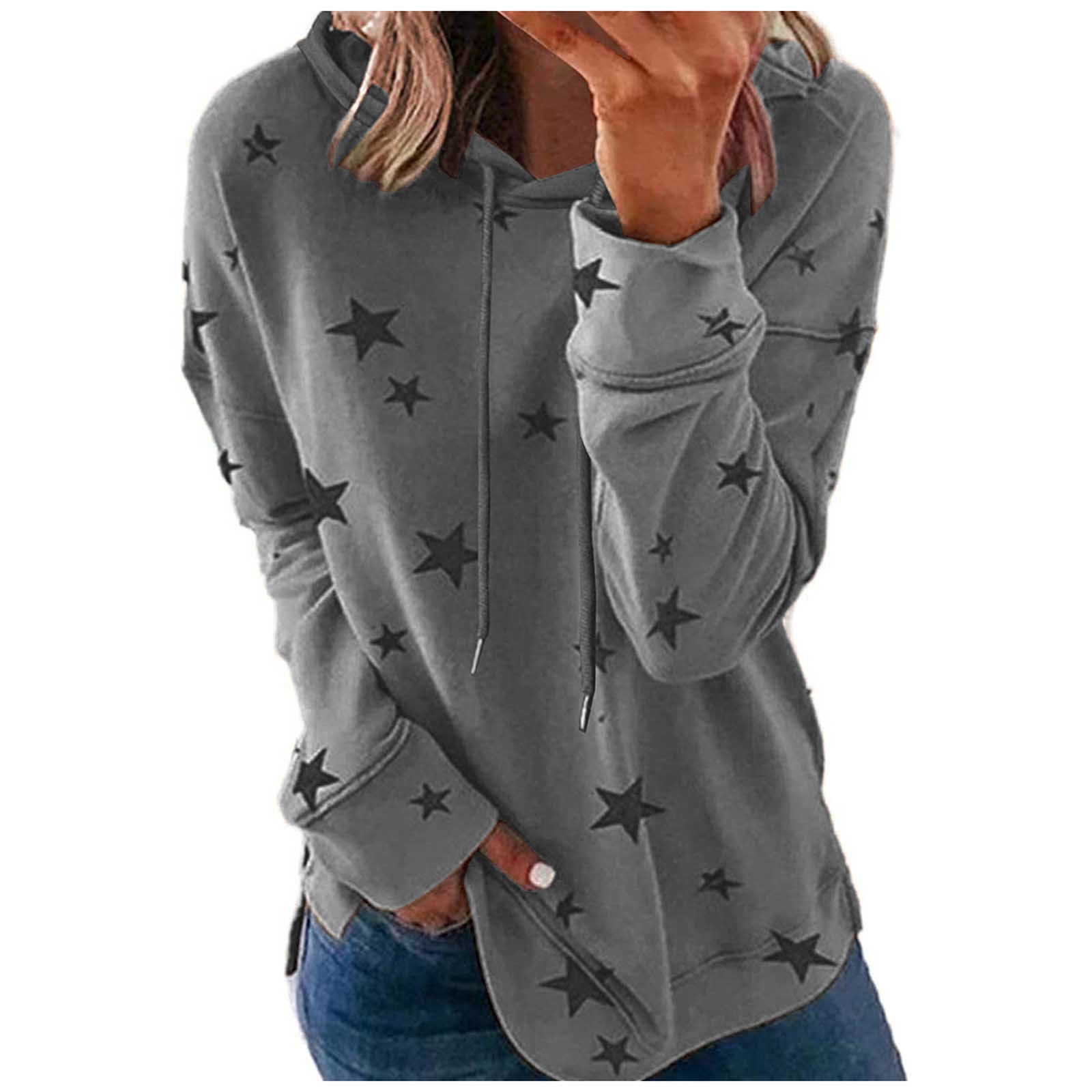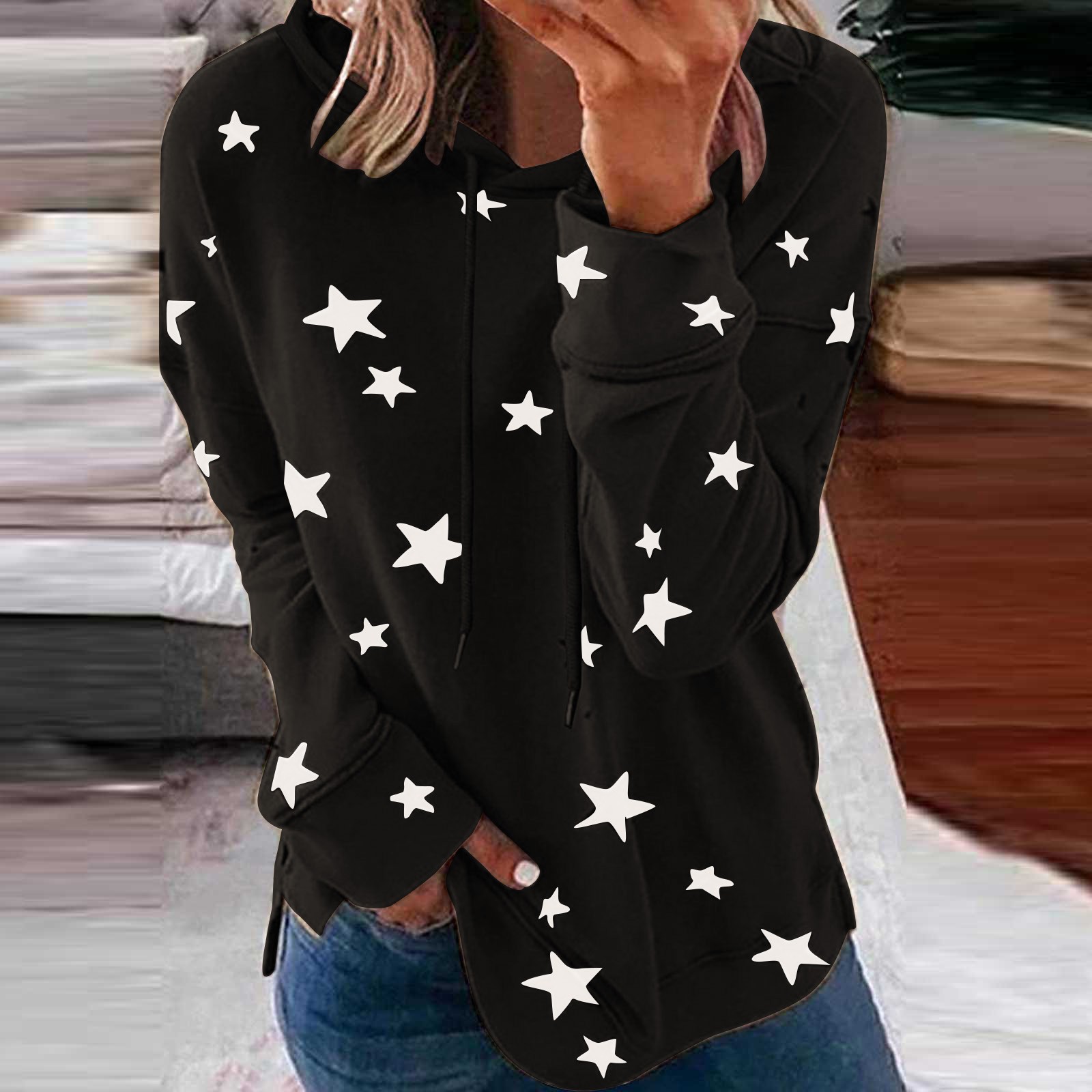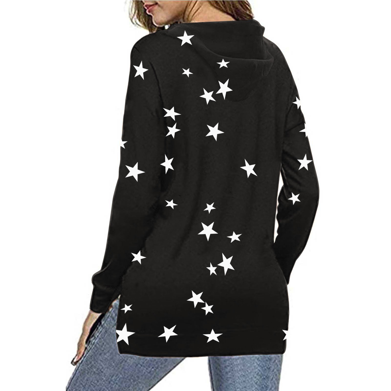 Женская модная толстовка с капюшоном и принтом звезды, топы с длинными рукавами в стиле пэчворк