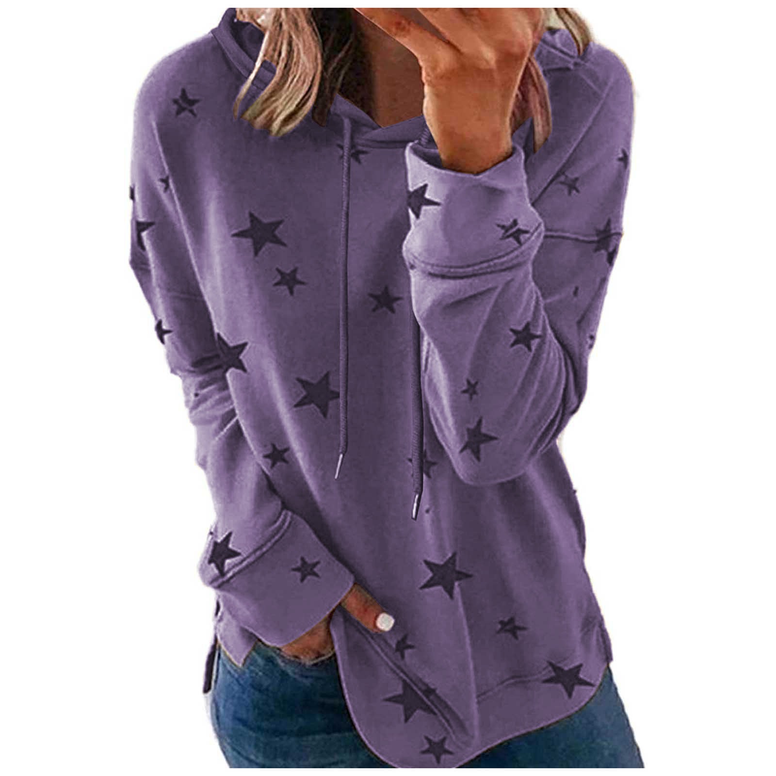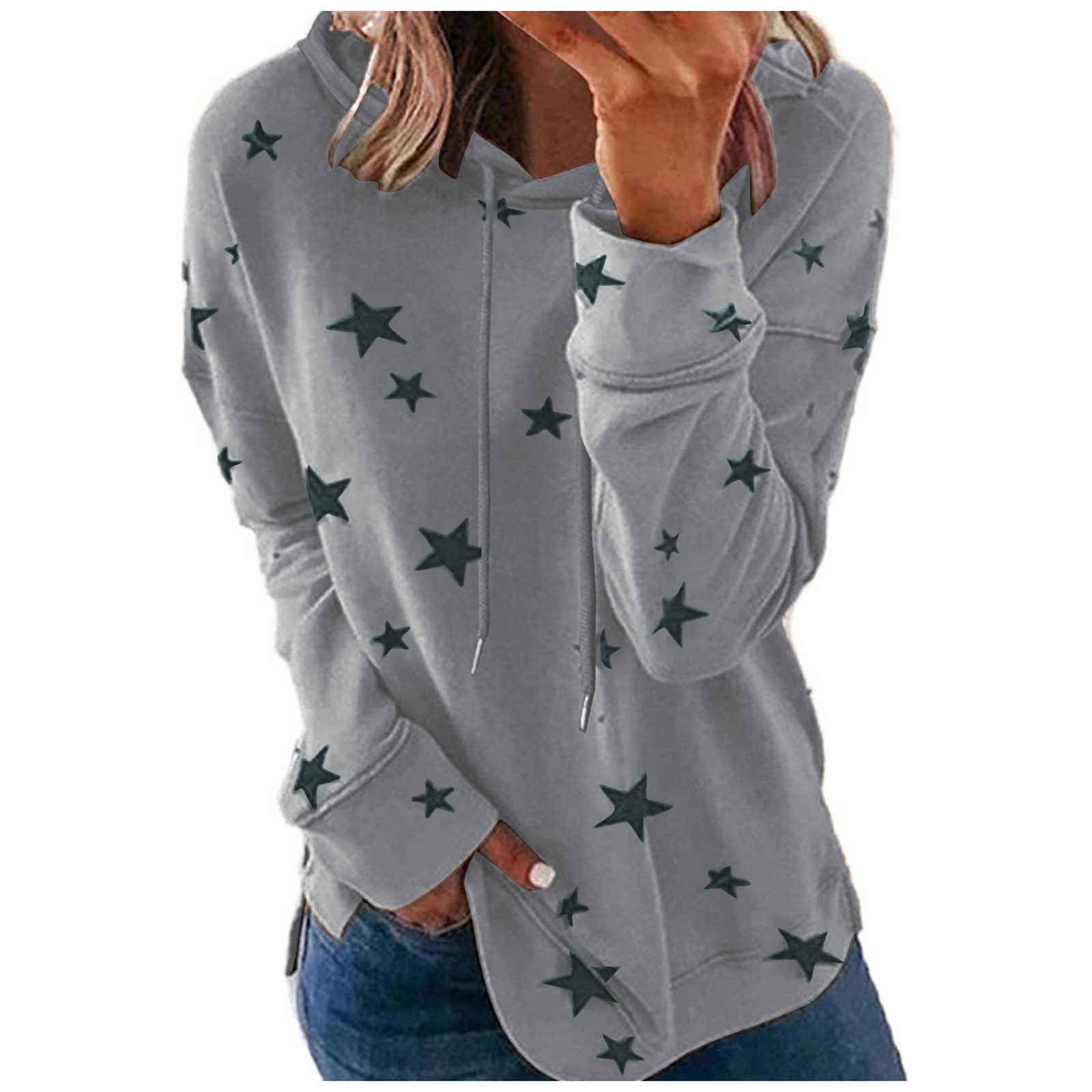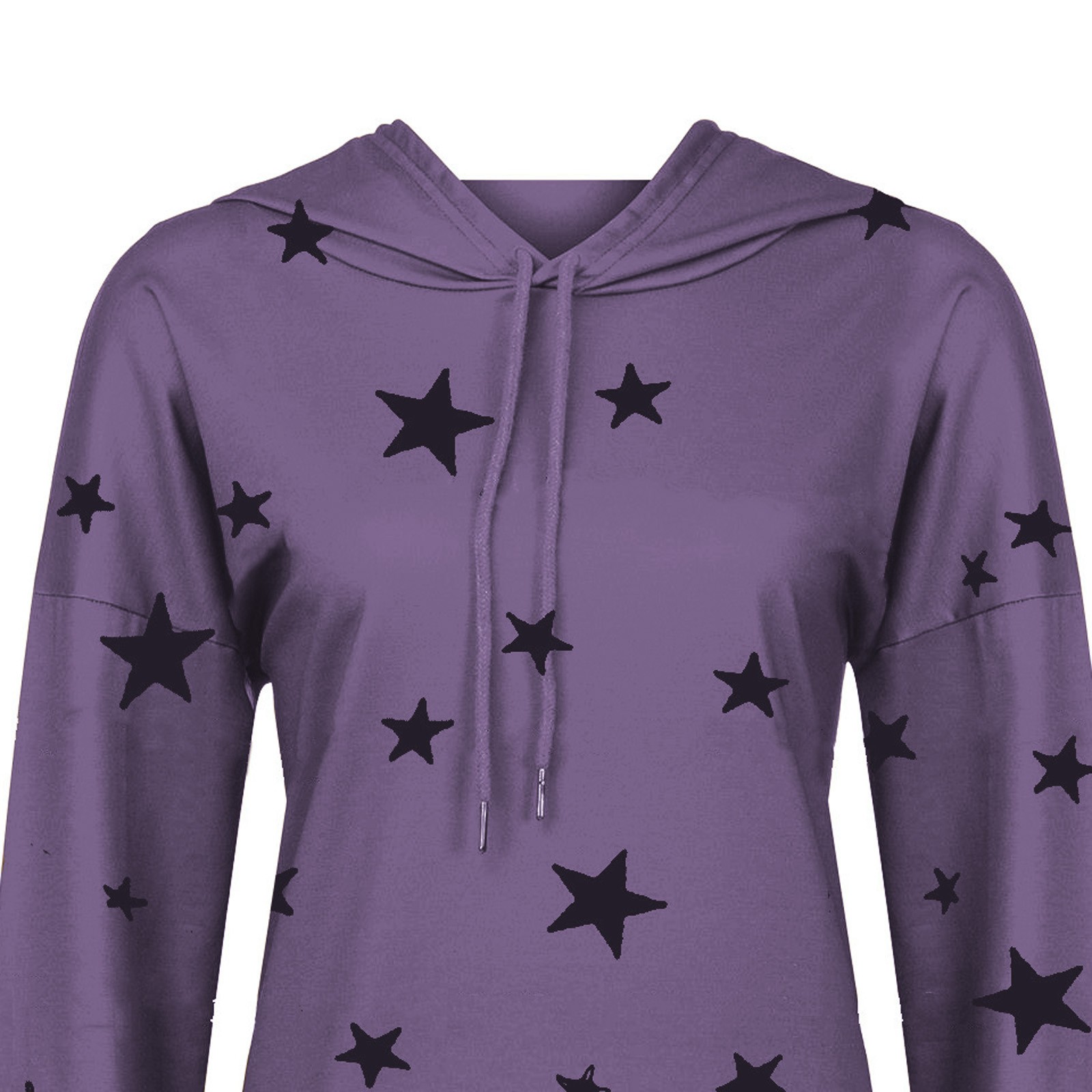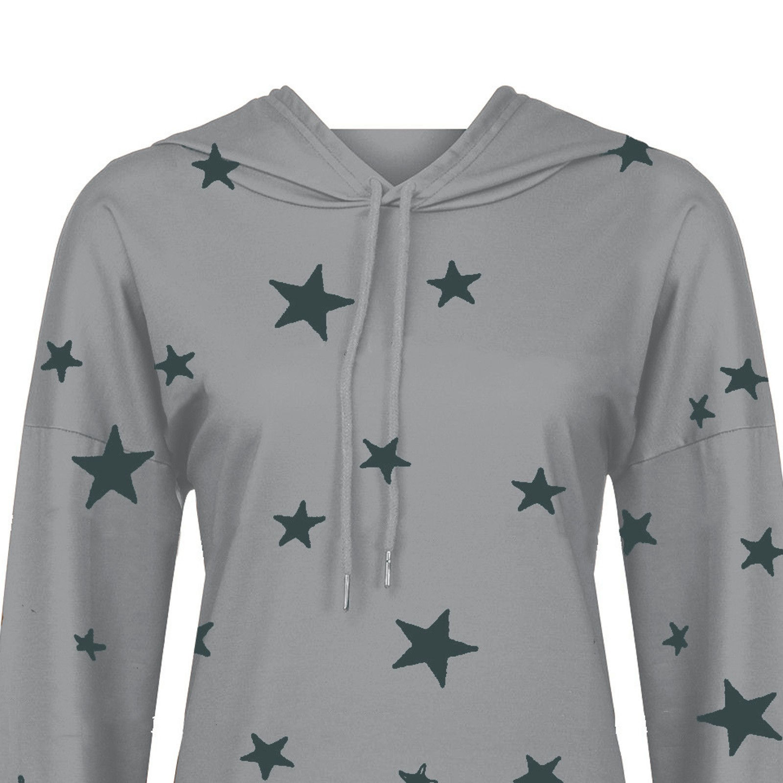 Женская модная толстовка с капюшоном и принтом звезды, топы с длинными рукавами в стиле пэчворк