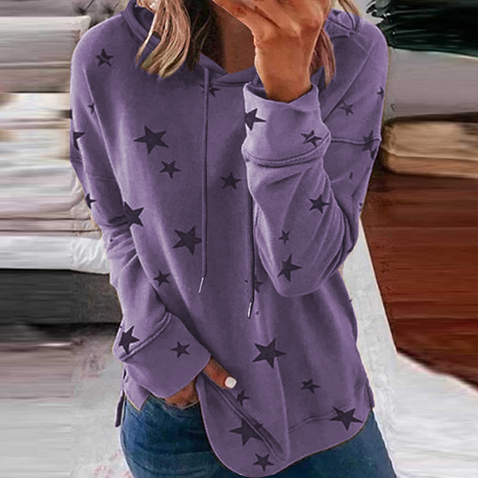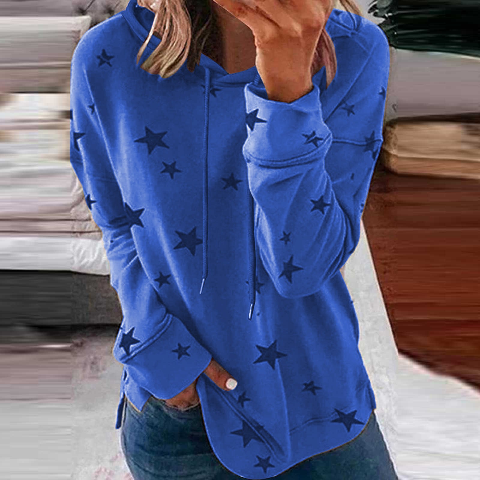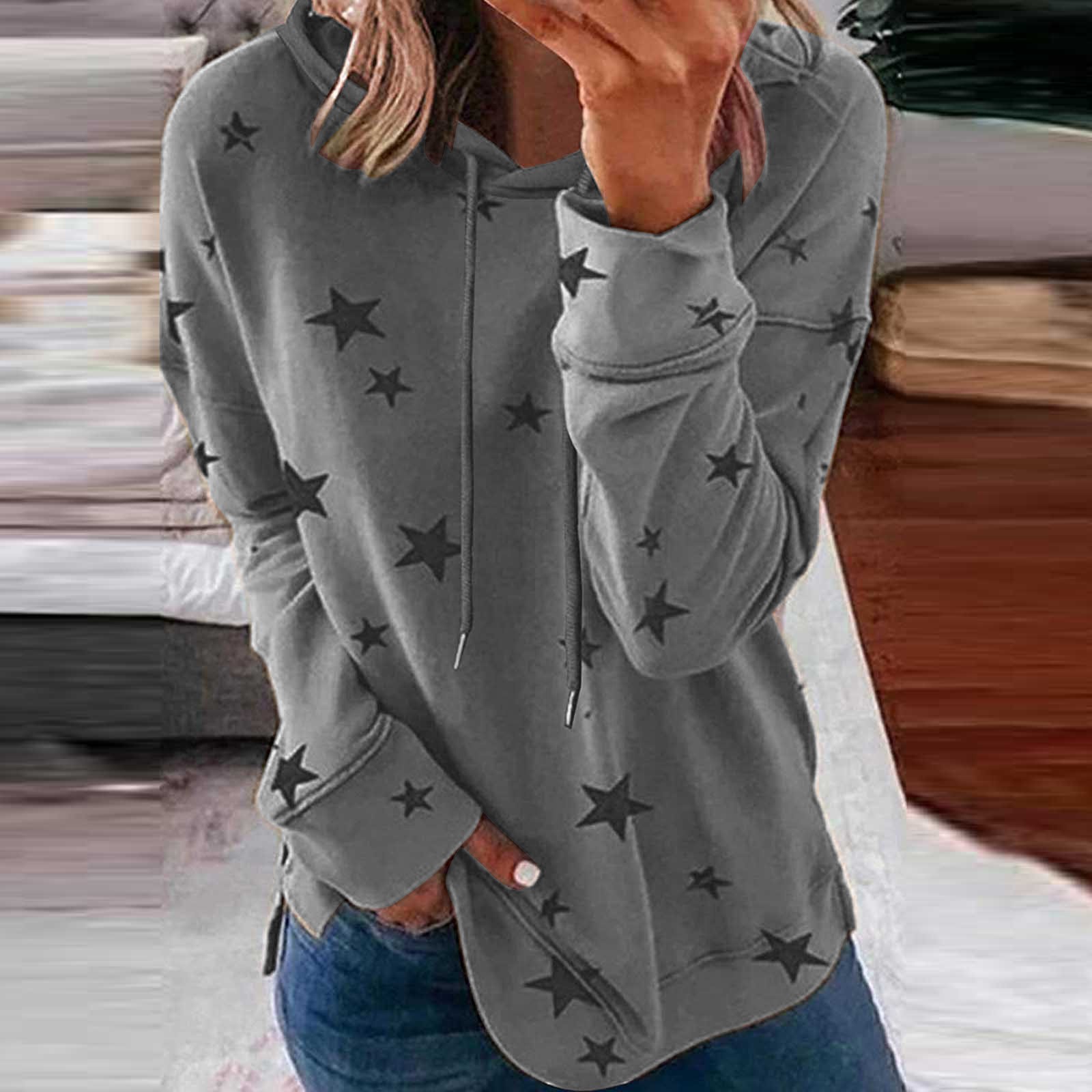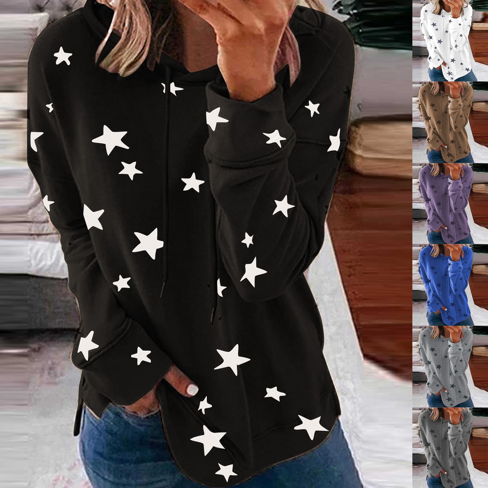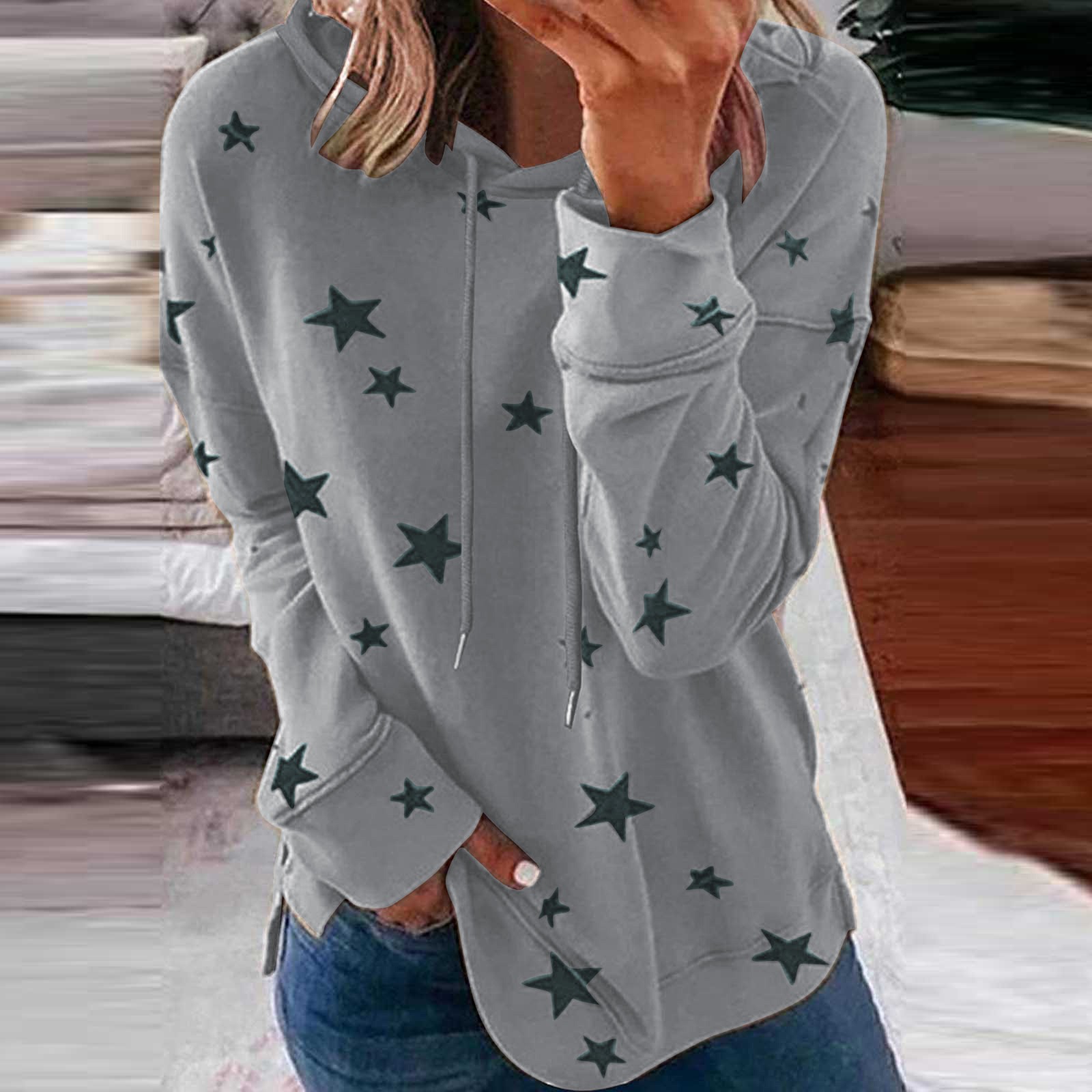Женская модная толстовка с капюшоном и принтом звезды, топы с длинными рукавами в стиле пэчворк