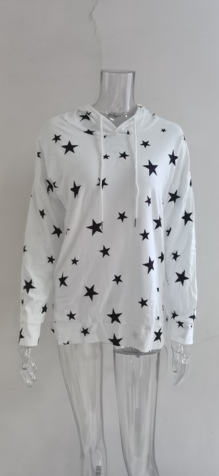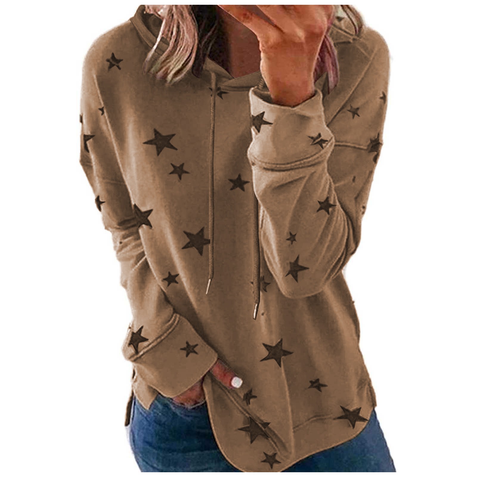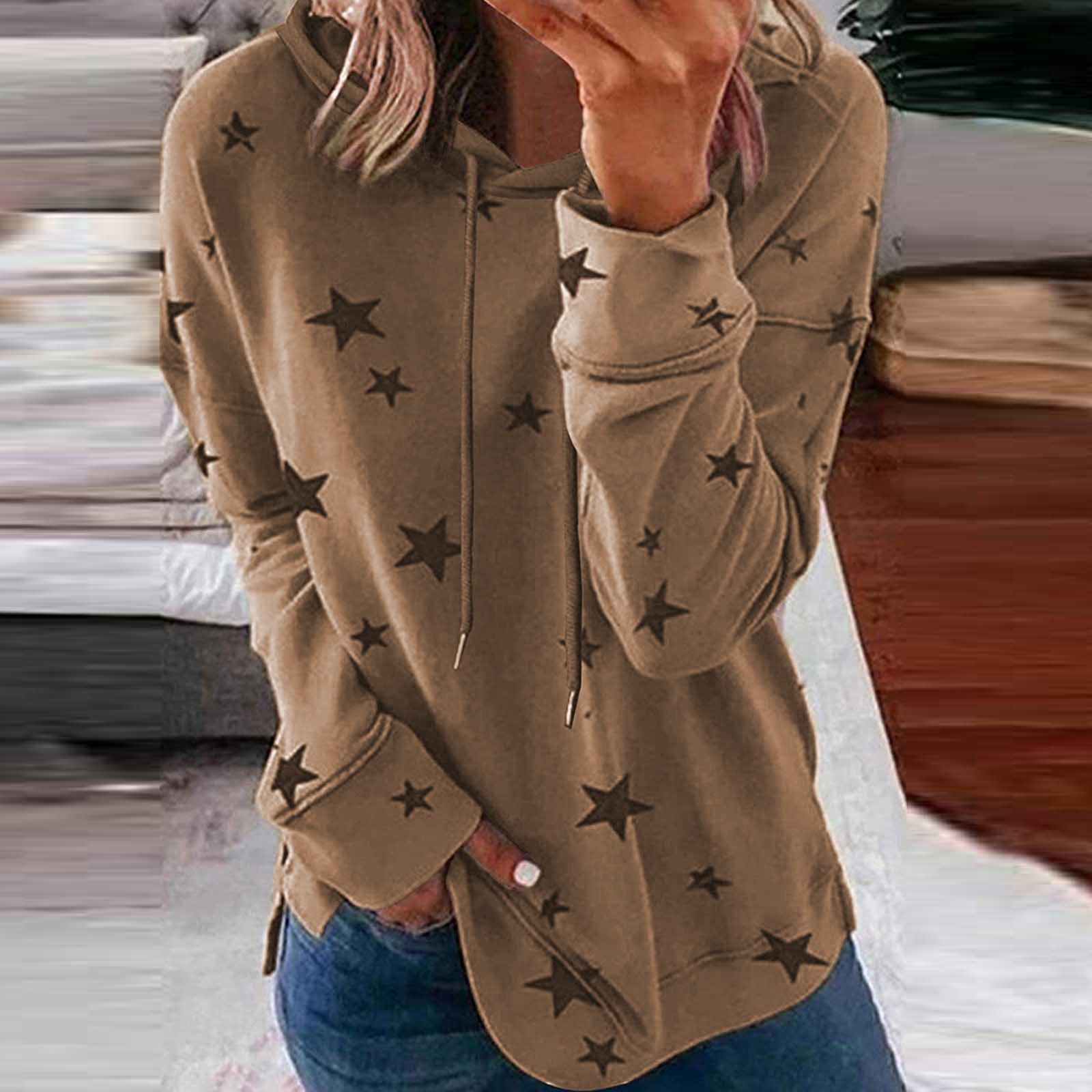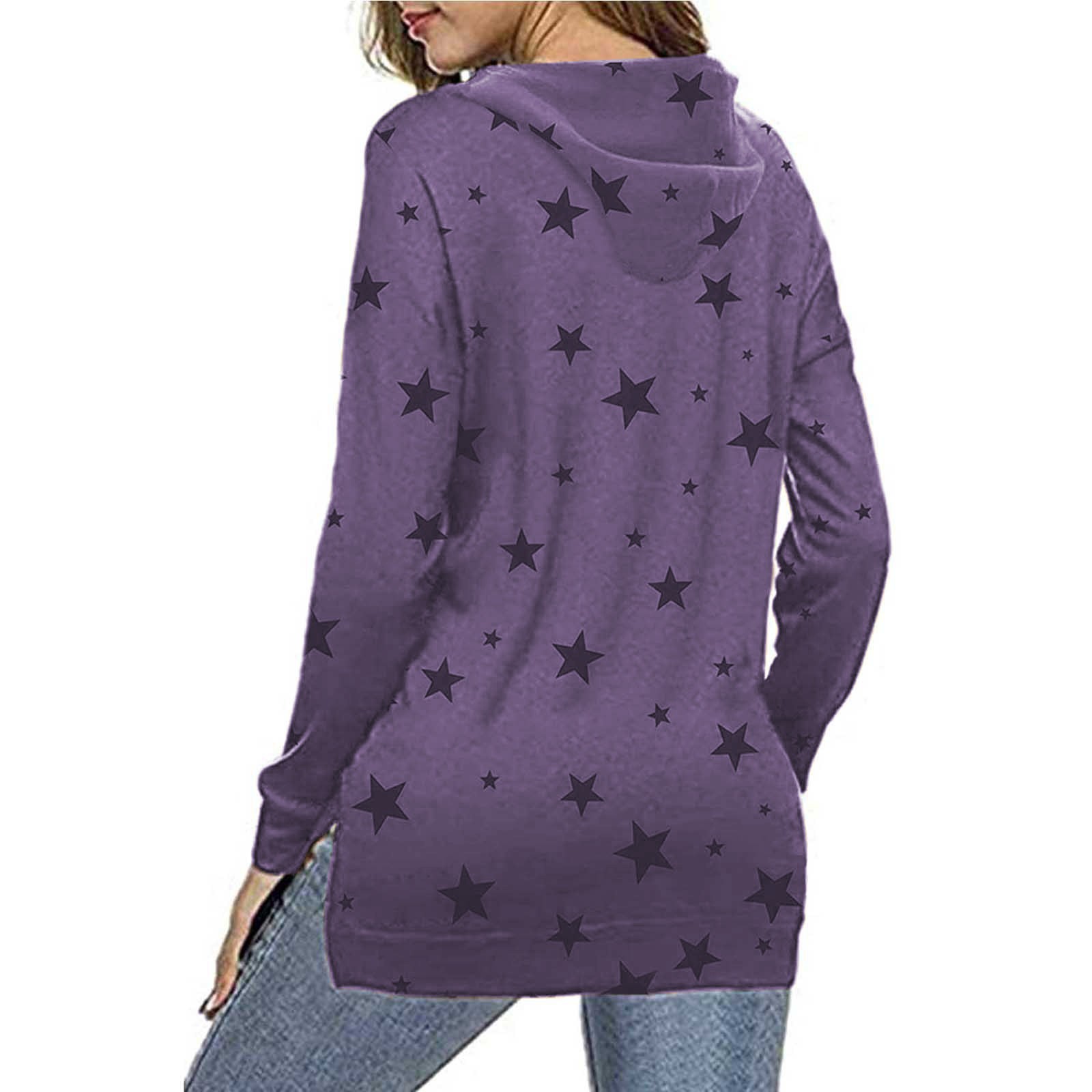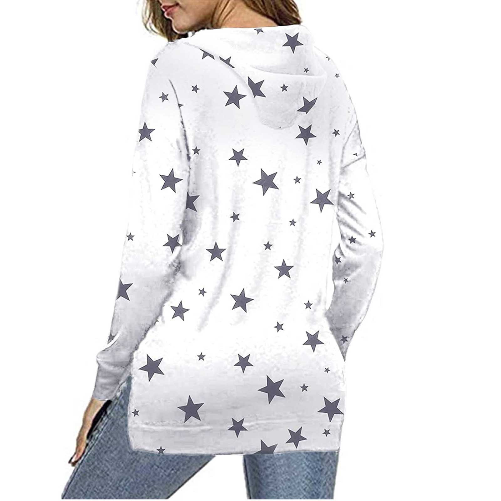 Женская модная толстовка с капюшоном и принтом звезды, топы с длинными рукавами в стиле пэчворк
