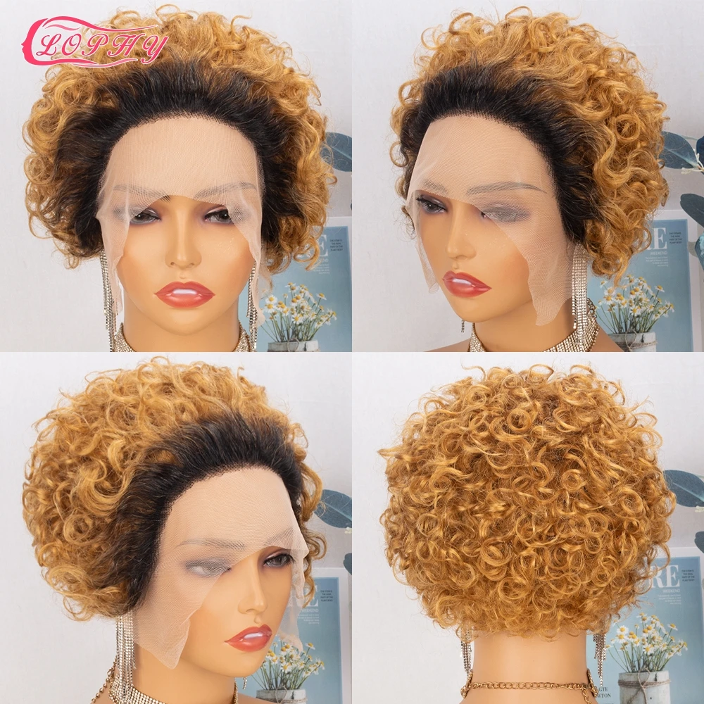 Short Curly Human Hair Wigs Pixie Cut Wigs Lace Front Wigs for Women Remy Hair Wig for Women Pre Plucked with Baby Hair