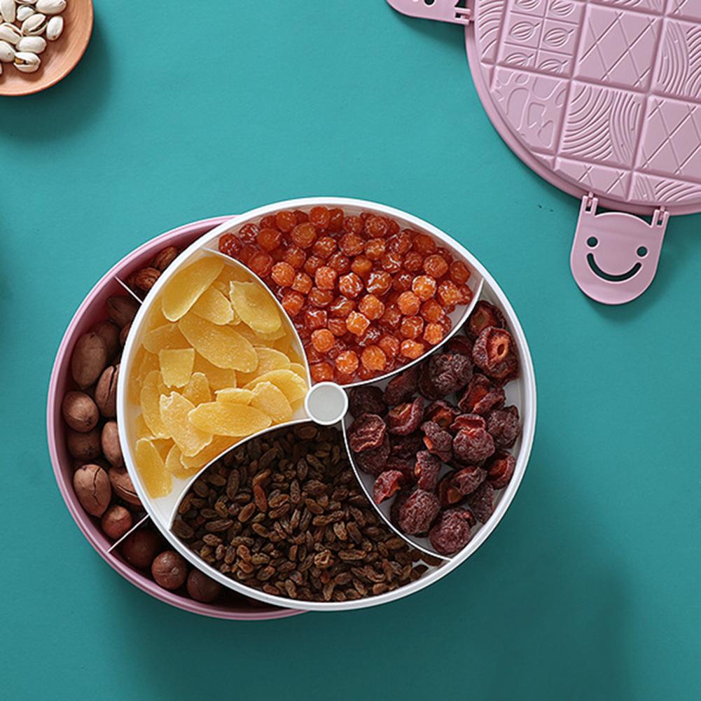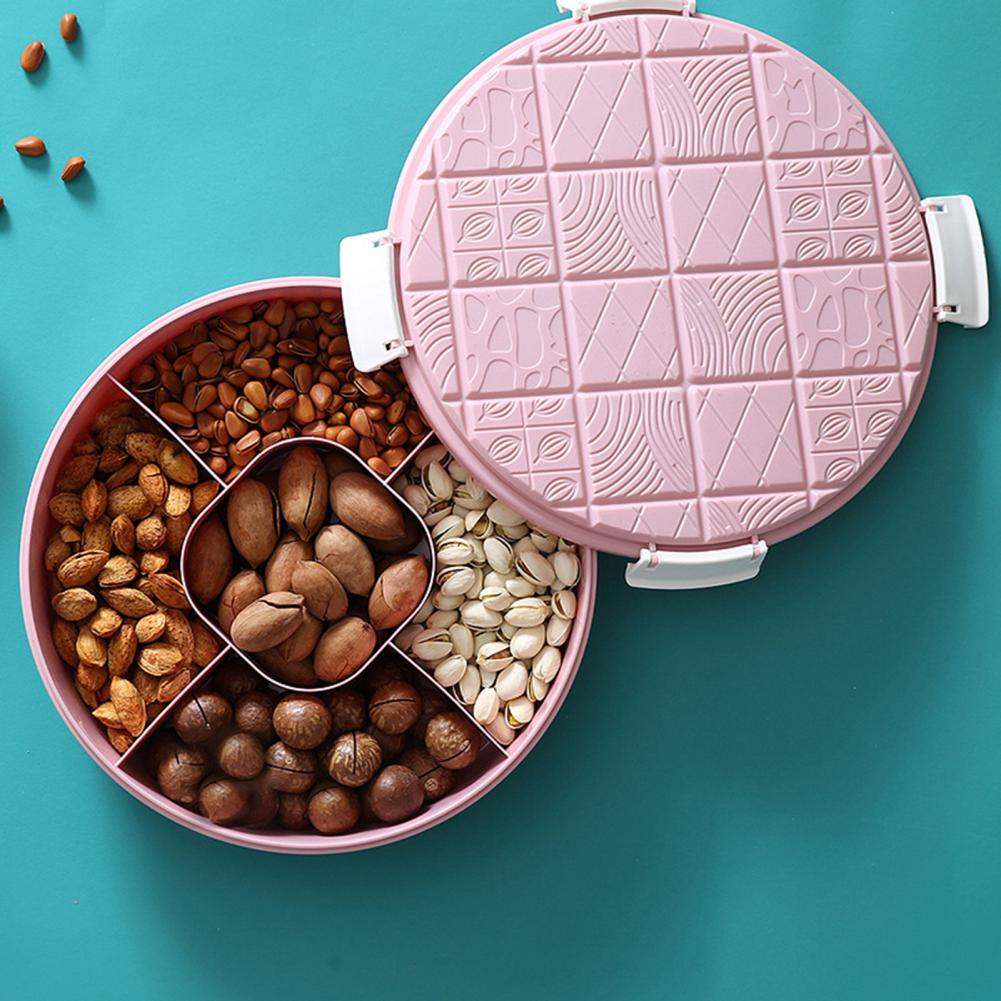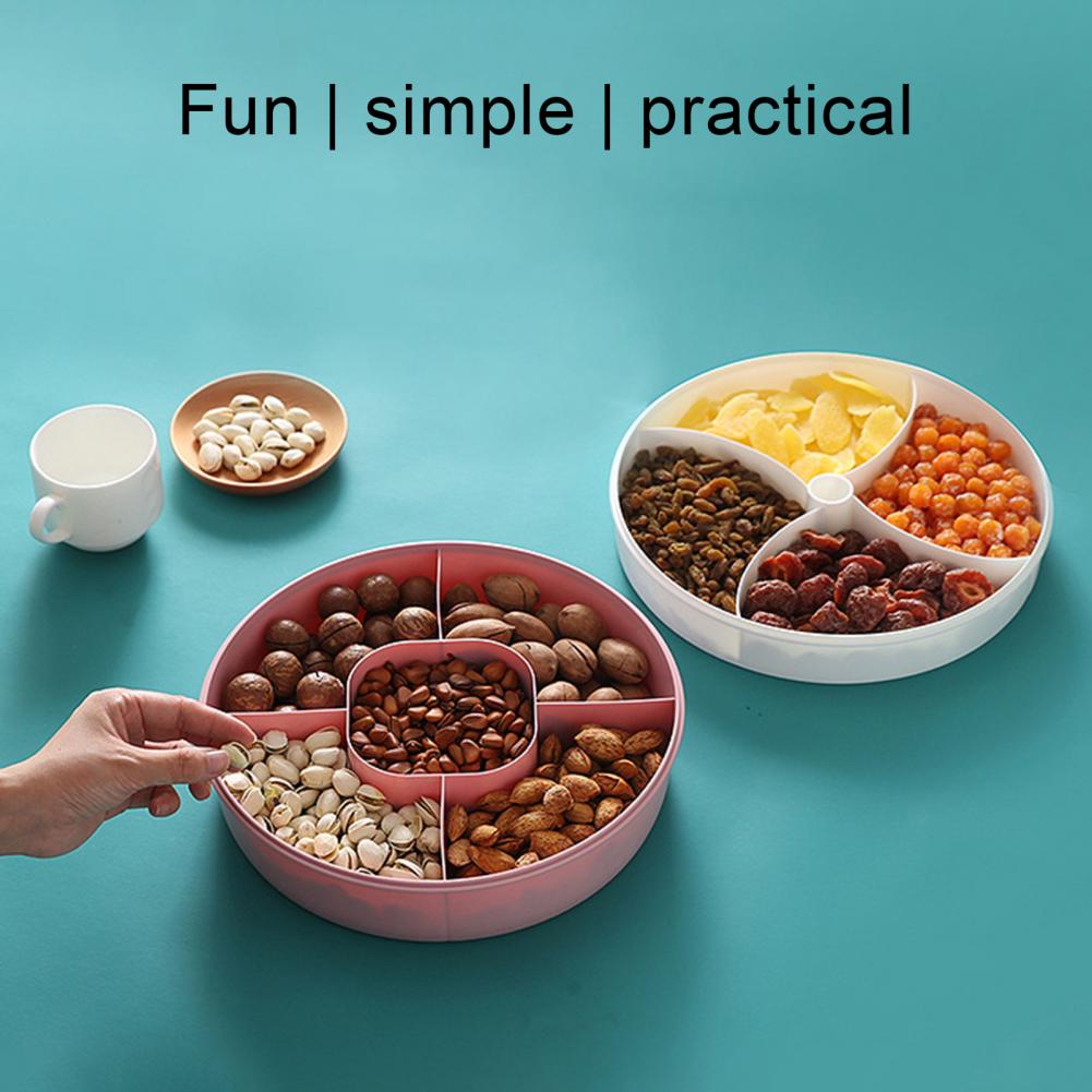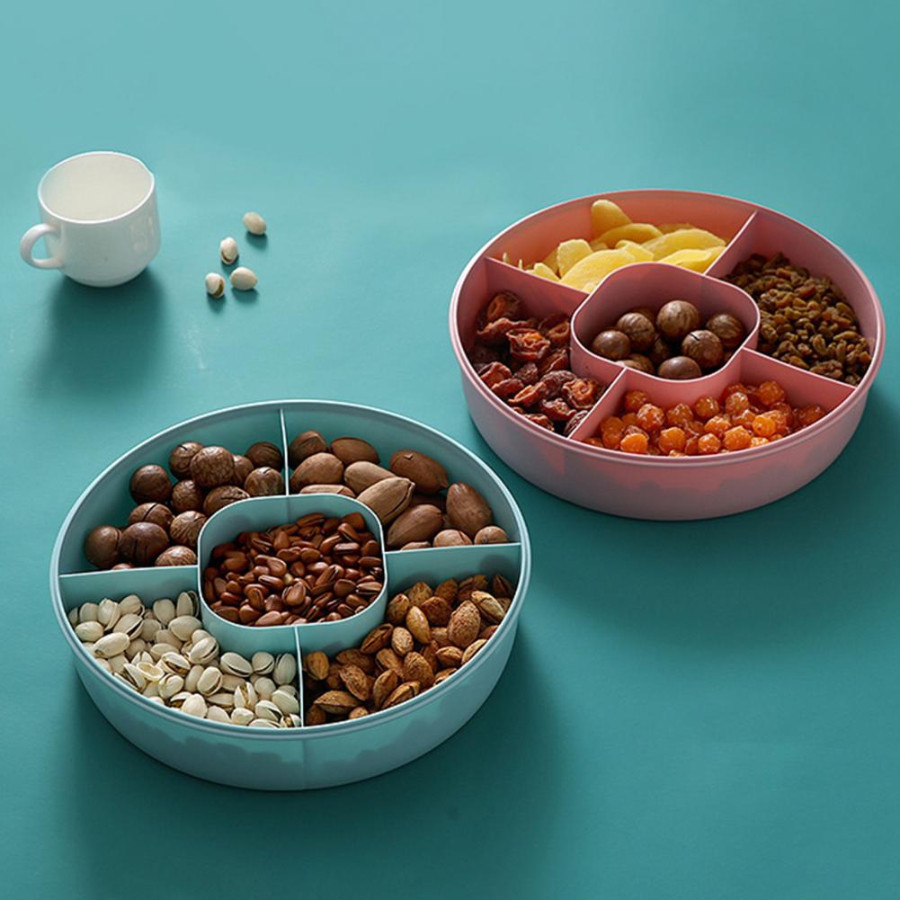 Этот фруктовый поднос может предложить вам несколько отсеков, что делает его большим объемом для хранения сухофруктов, орехов и конфет.