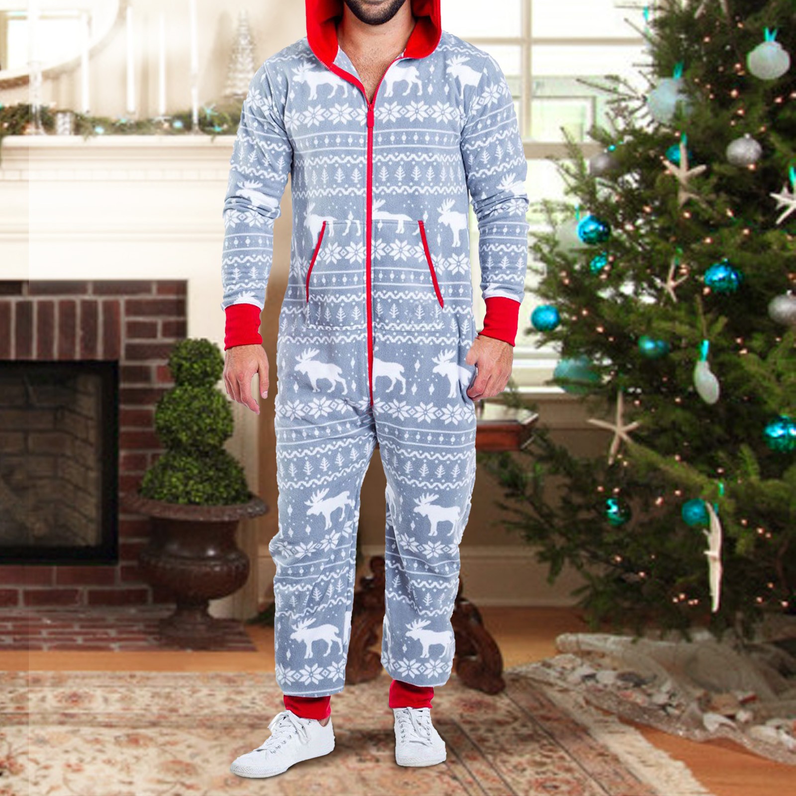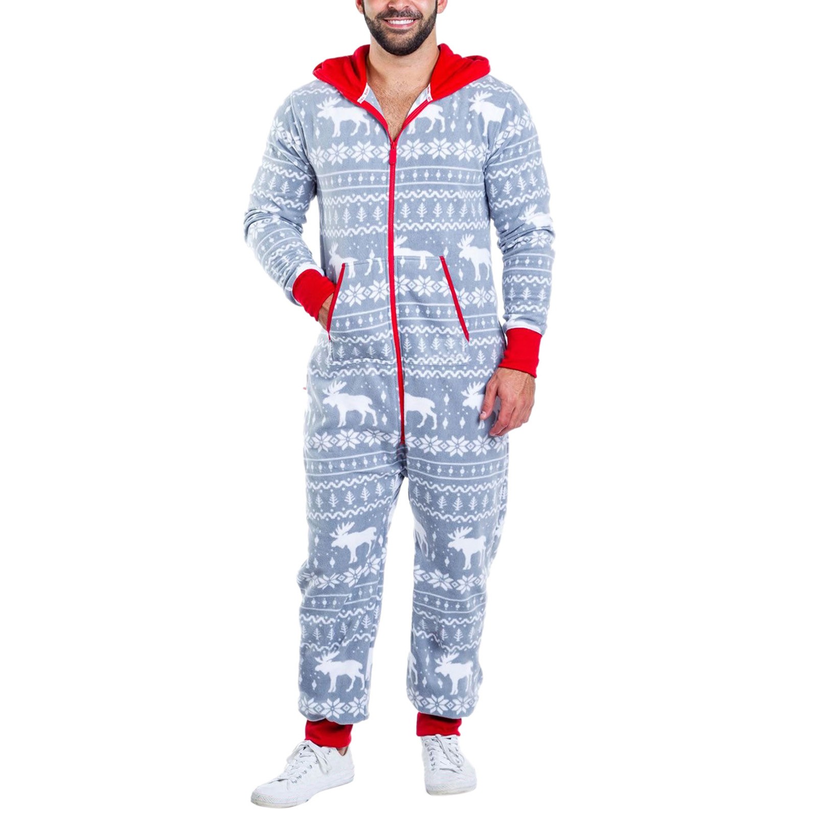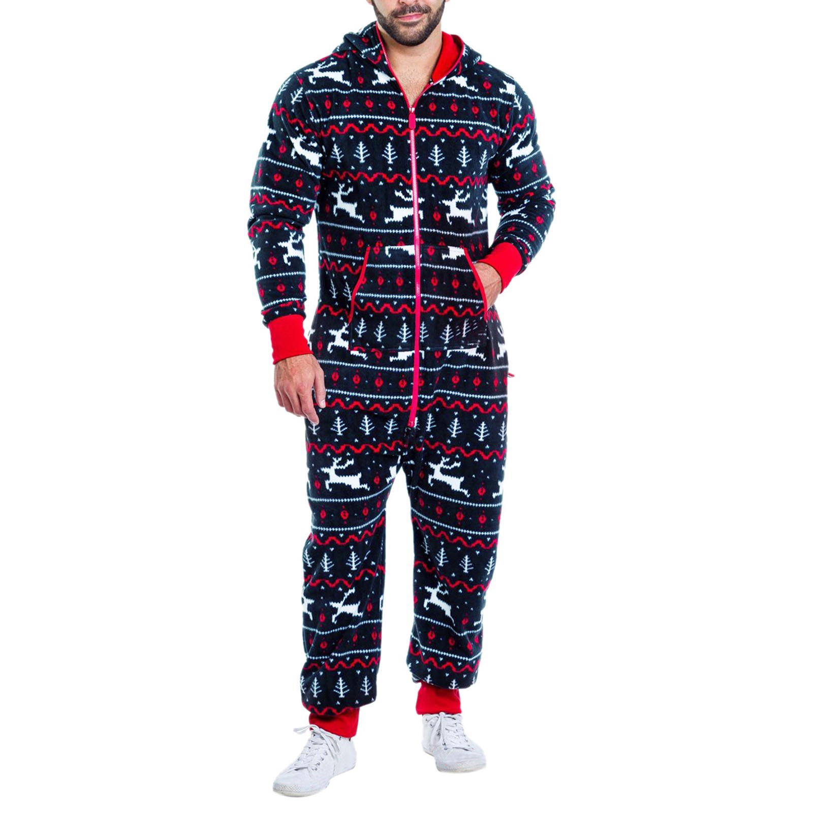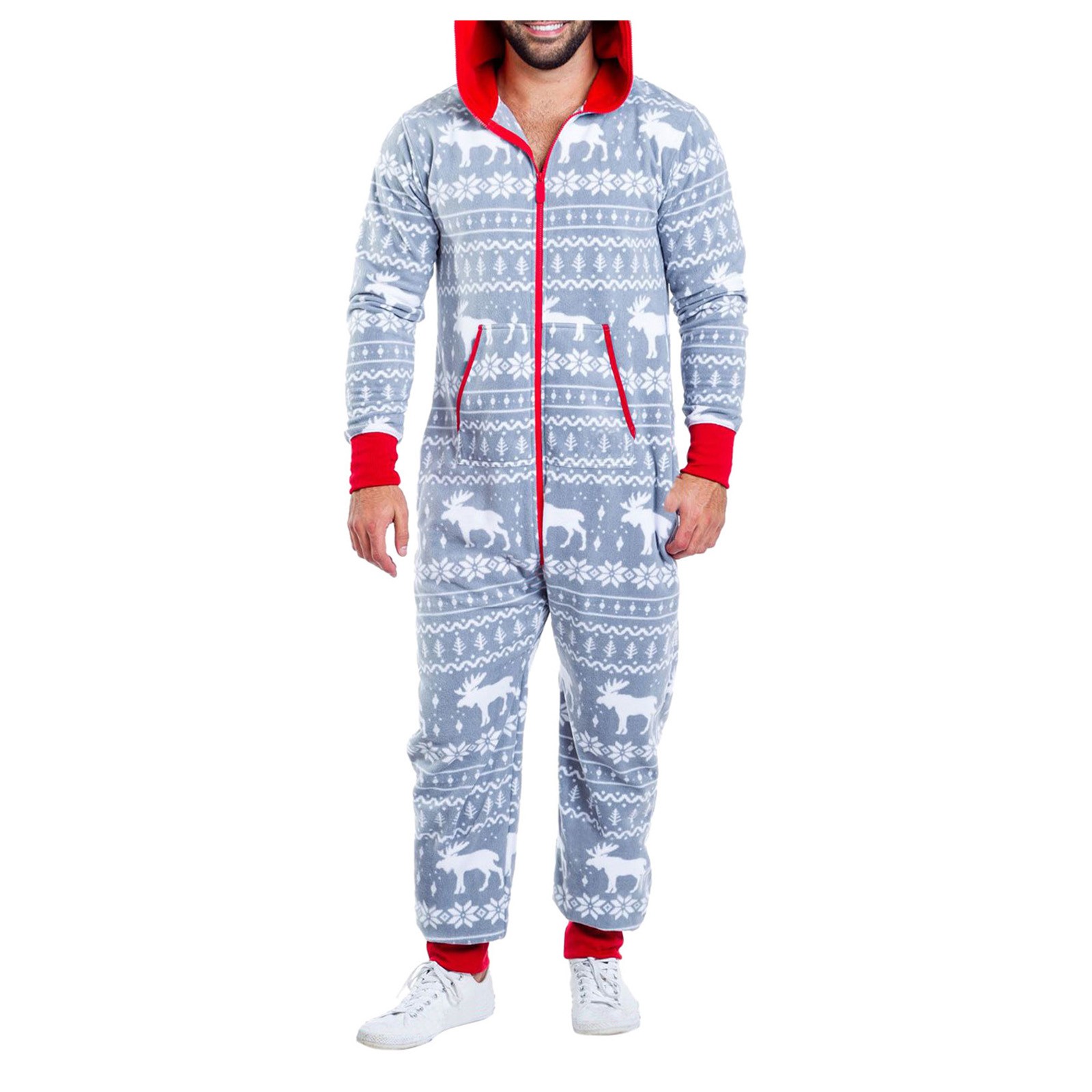 Onesies Mens 3d Christmas Elk Printed Long Sleeve Jumpsuit Zipper Hood Pyjamas Nightwear Macacao Masculino Onesie Men Jumpsuits