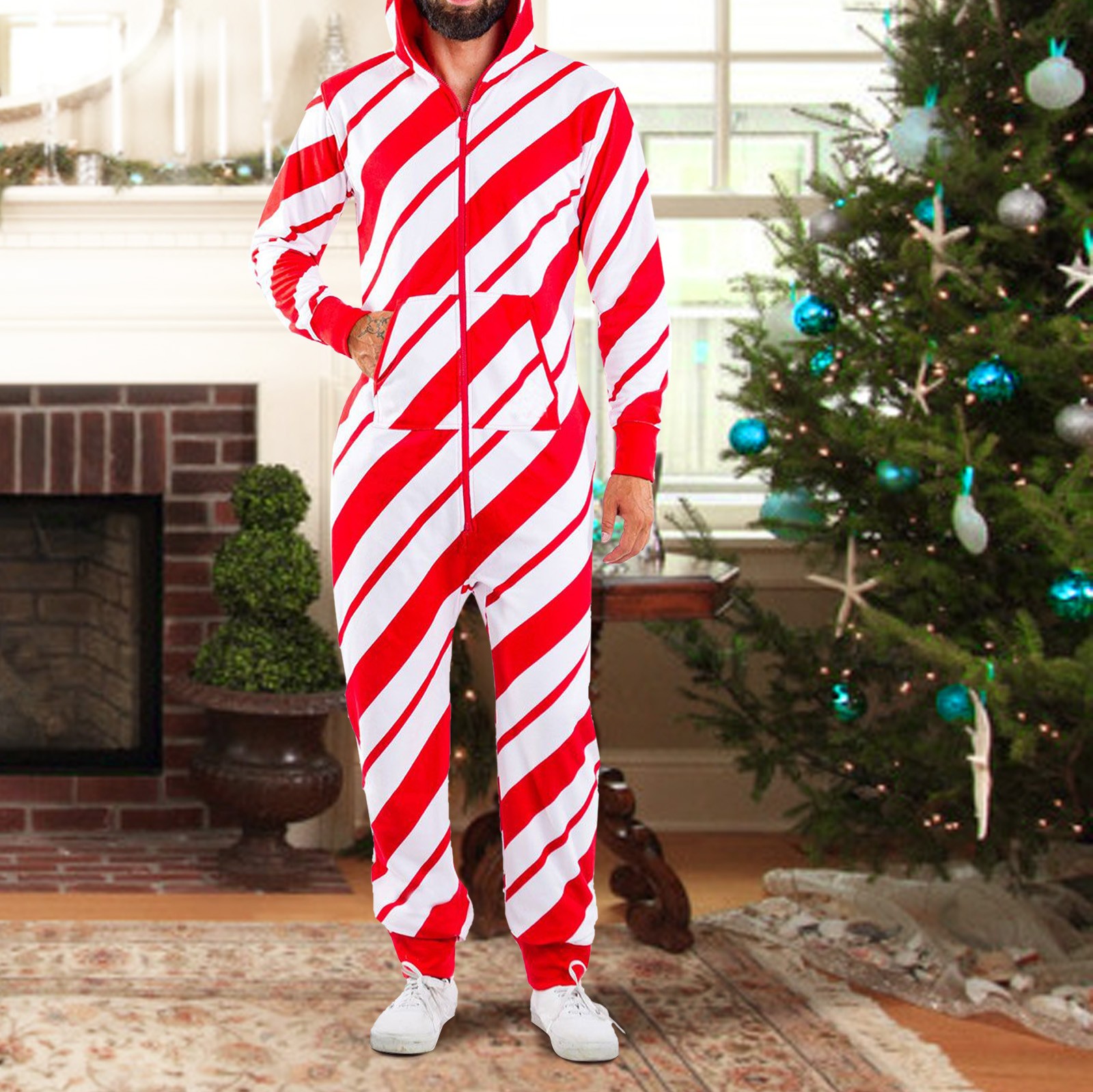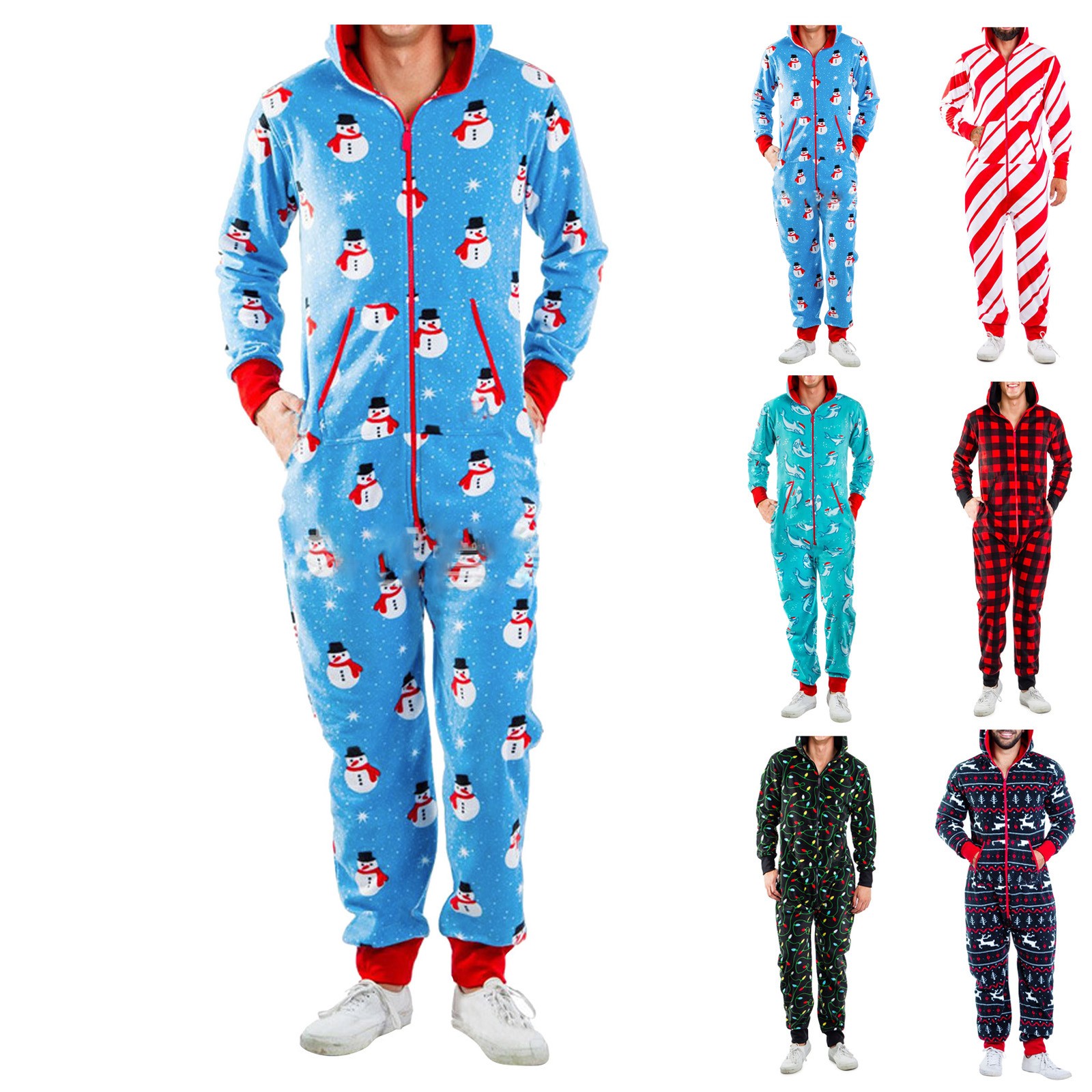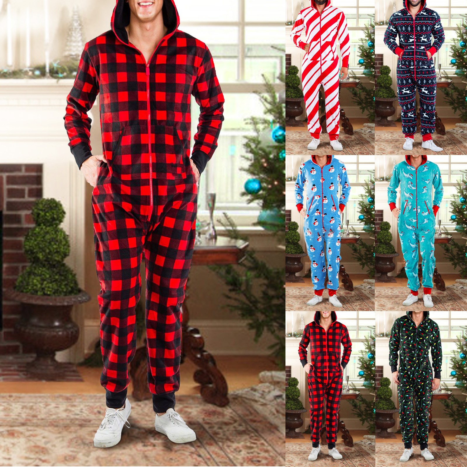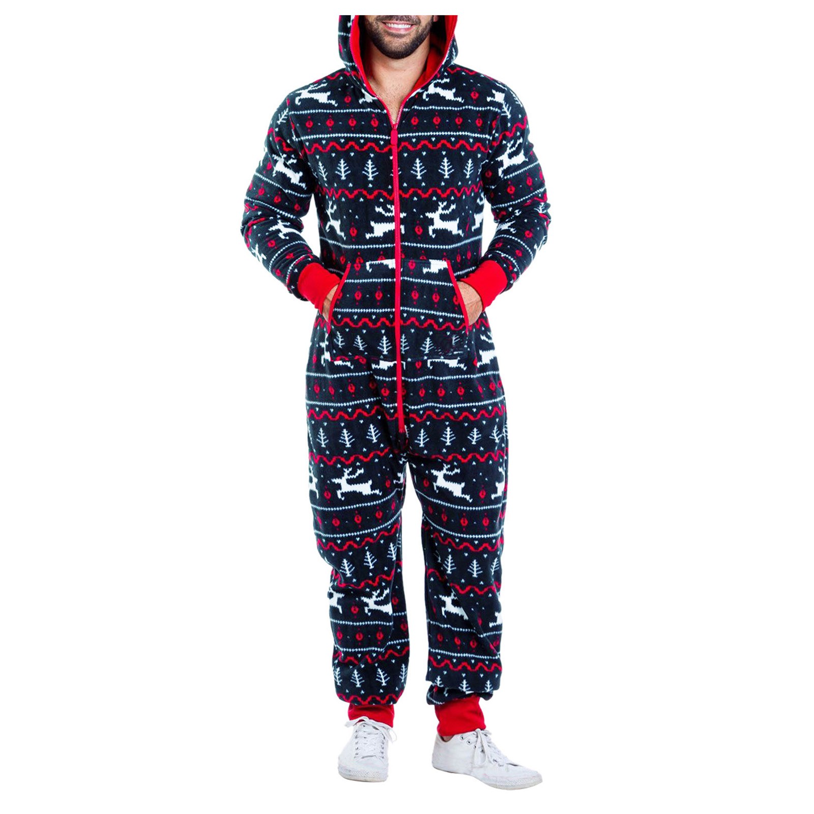 Onesies Mens 3d Christmas Elk Printed Long Sleeve Jumpsuit Zipper Hood Pyjamas Nightwear Macacao Masculino Onesie Men Jumpsuits