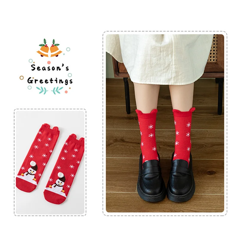 5 пар, хит продаж, рождественские женские носки, хлопковые длинные носки красного цвета с рисунком, рождественские носки с изображением Санта-Клауса, дерева, снежинки