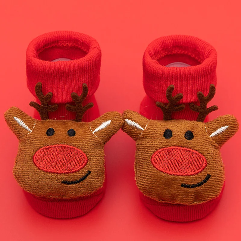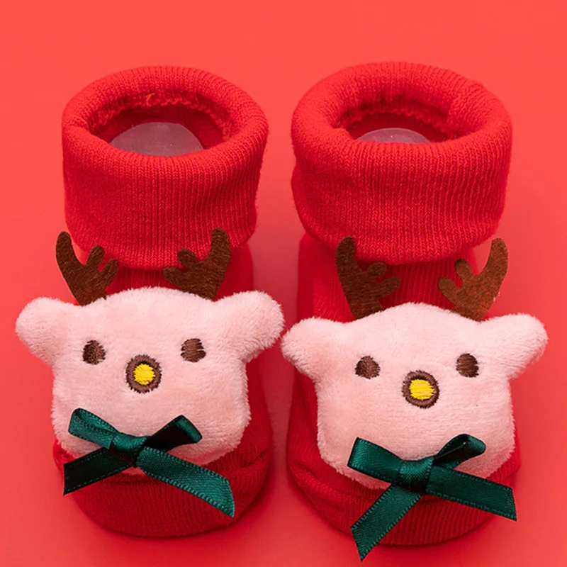 Размеры S/M, 6 цветов, утепленные детские носки с изображением рождественской елки, Санта-Клауса и лося детские красные хлопковые короткие Носки с рисунком для мальчиков и девочек