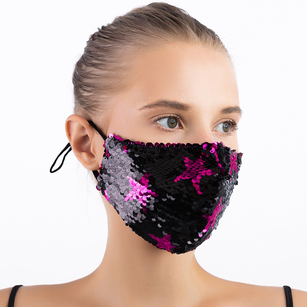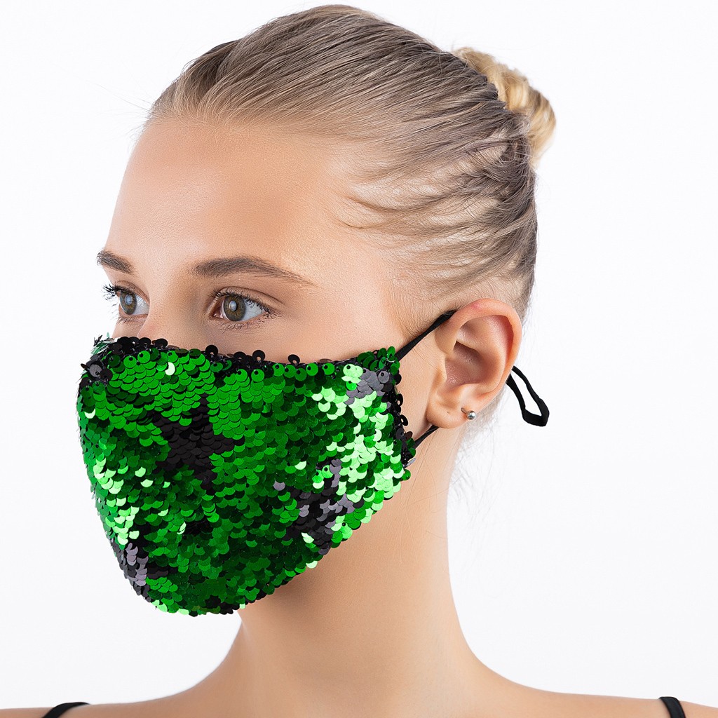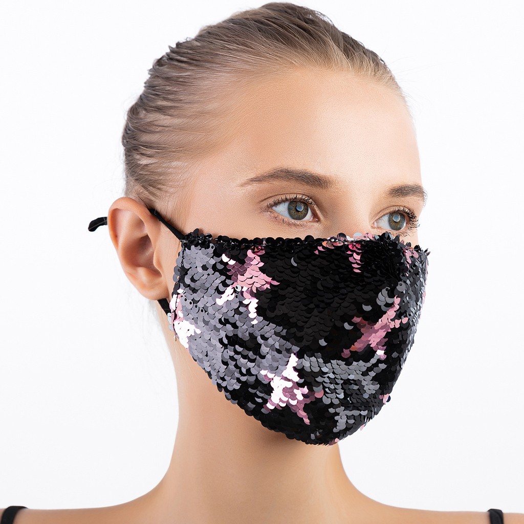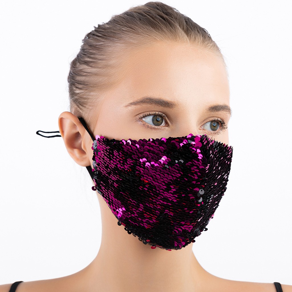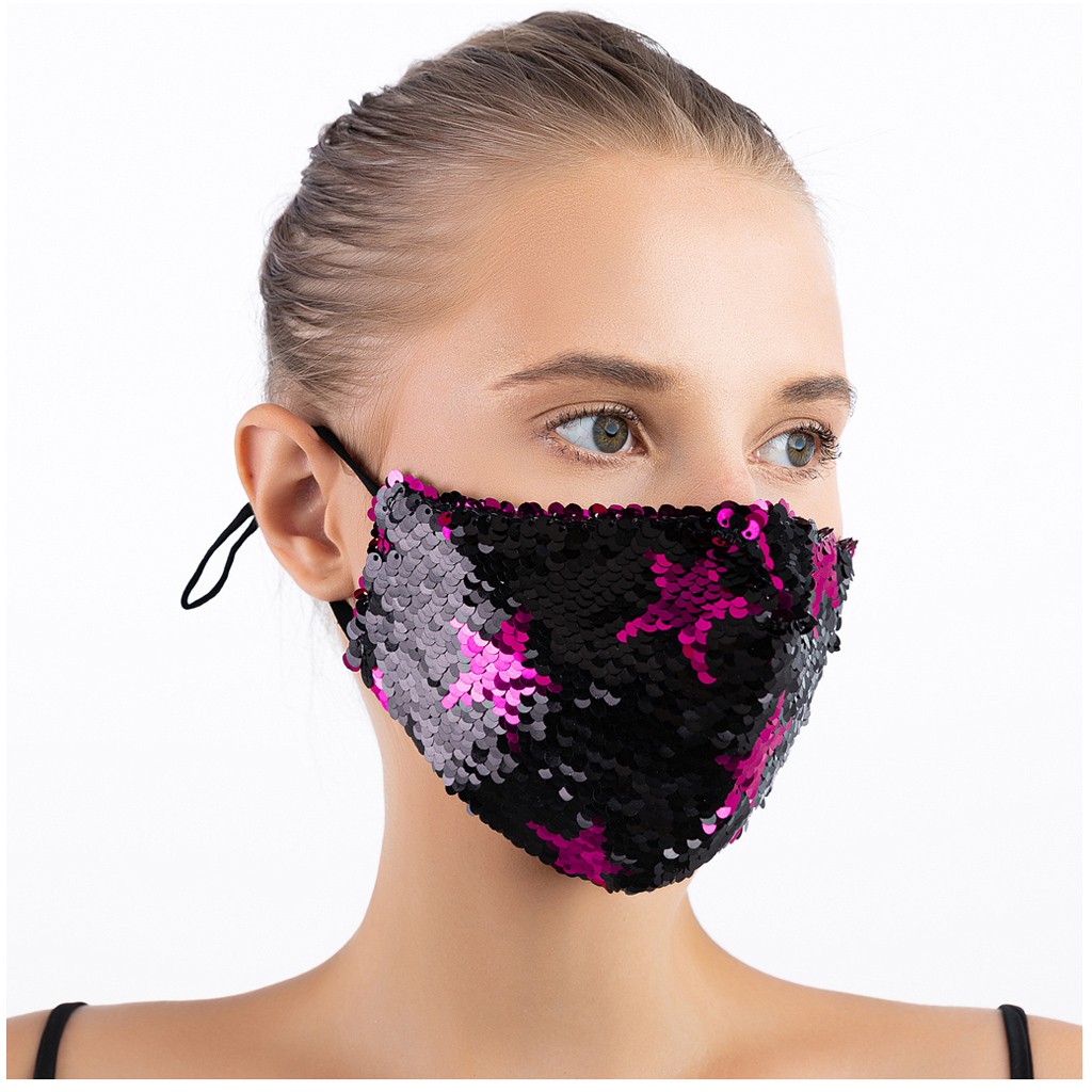 Маска изготовлена из ткани и пайеток, с небольшим запахом. Замочите его в теплой воде в течение 15 минут, и запах исчезнет медленно.