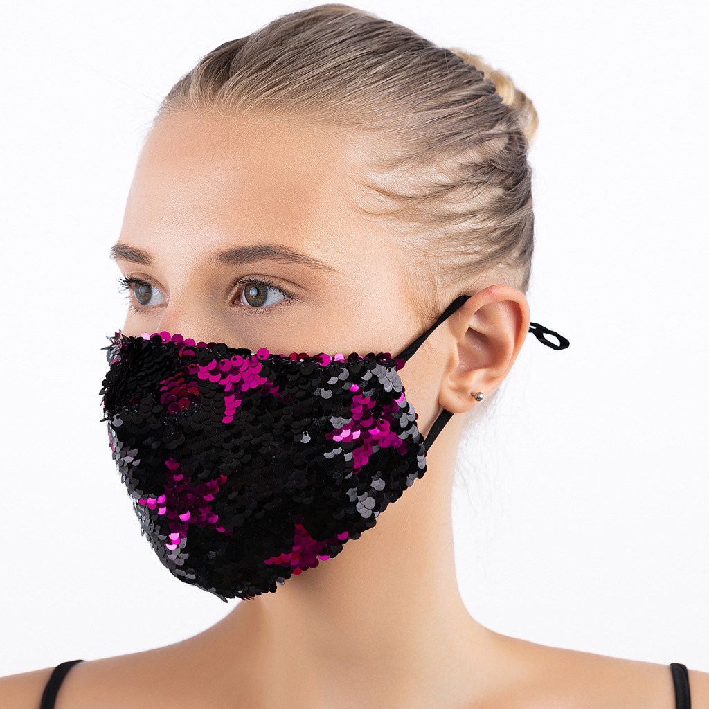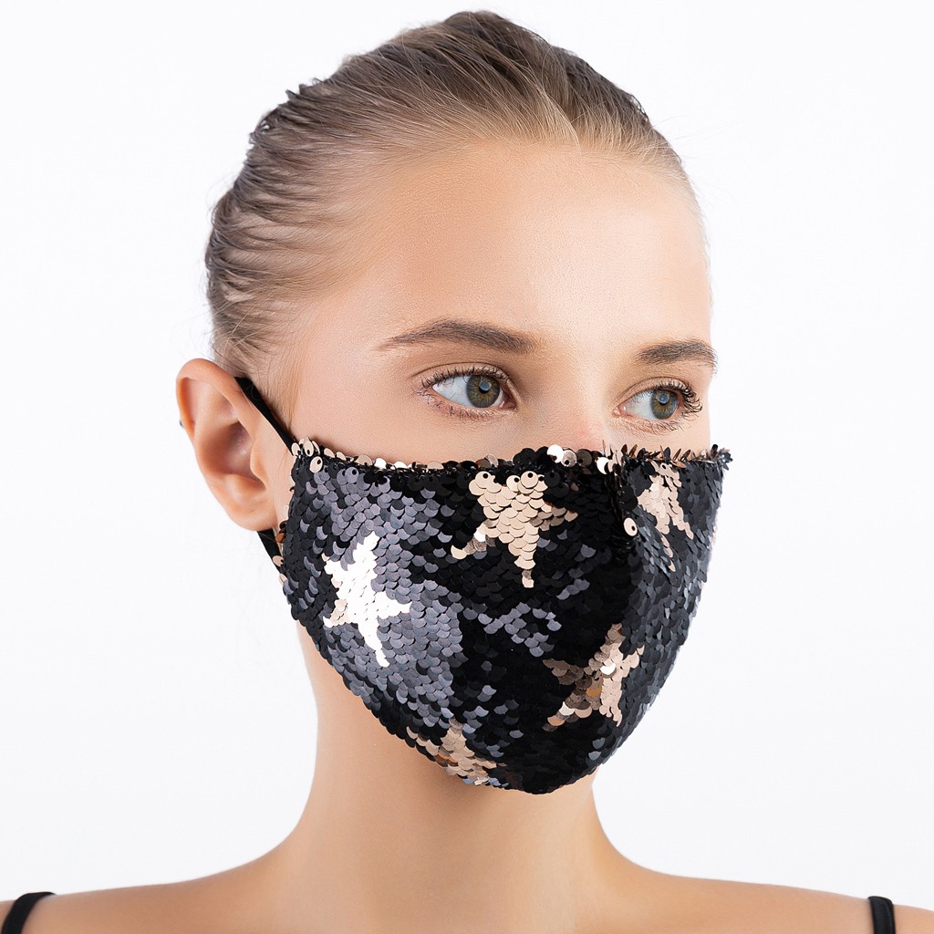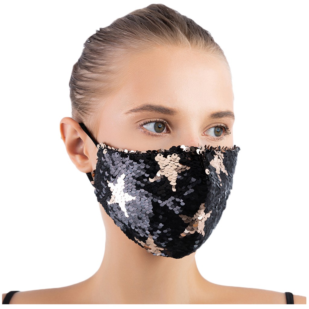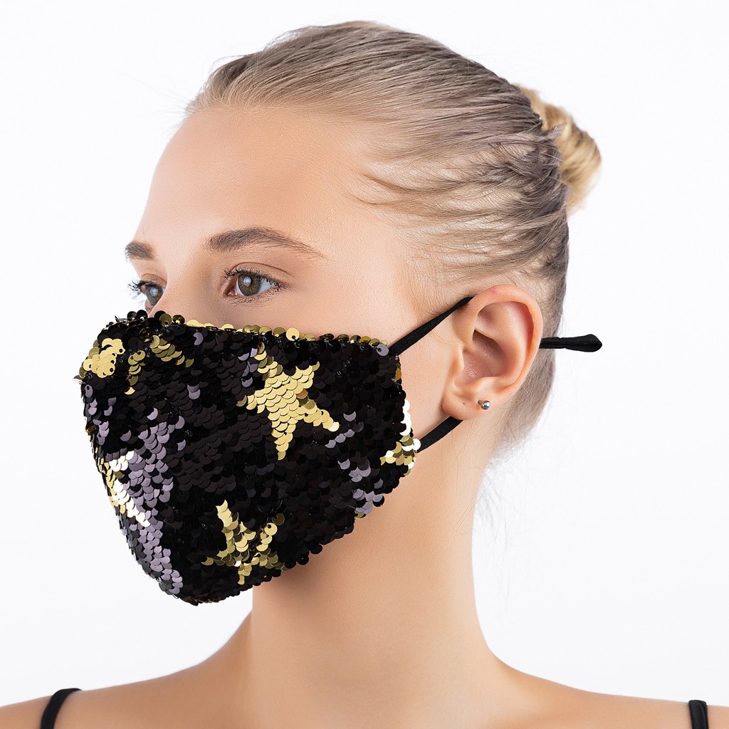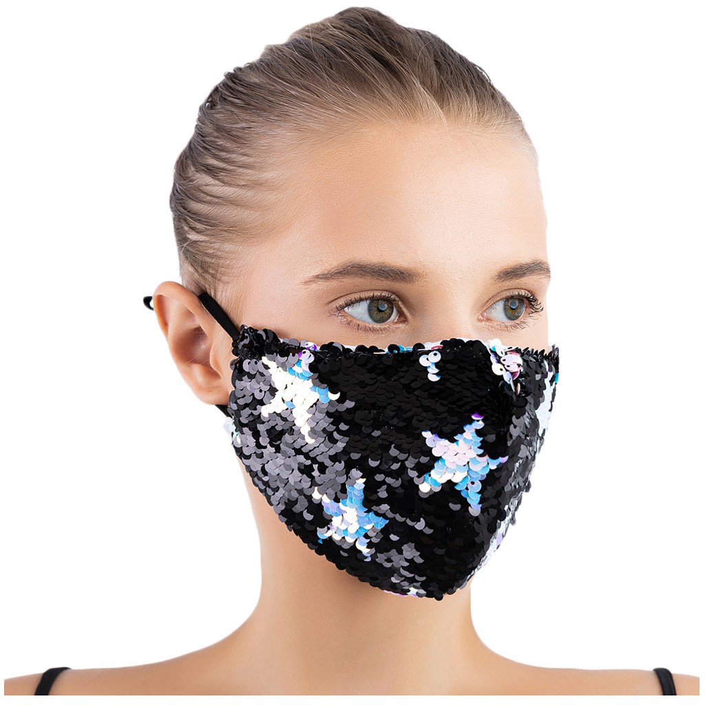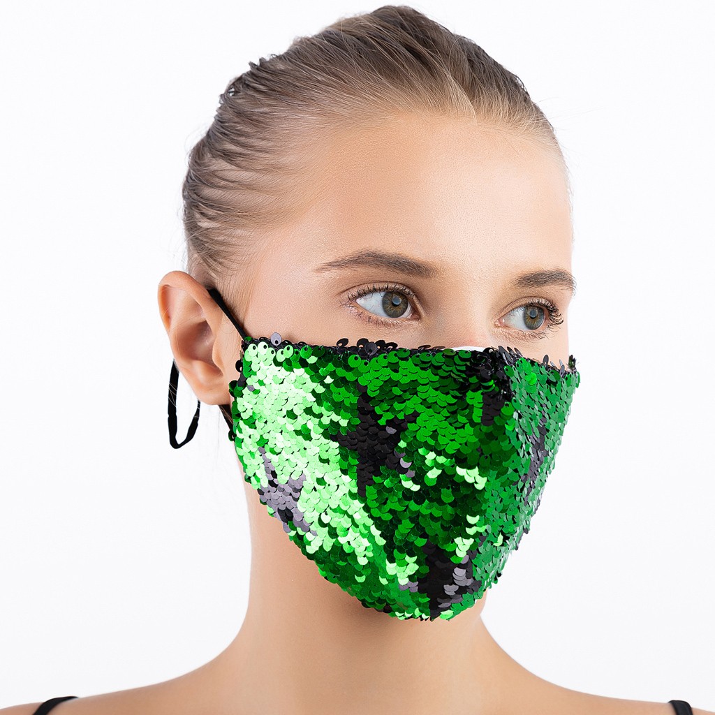 Маска изготовлена из ткани и пайеток, с небольшим запахом. Замочите его в теплой воде в течение 15 минут, и запах исчезнет медленно.