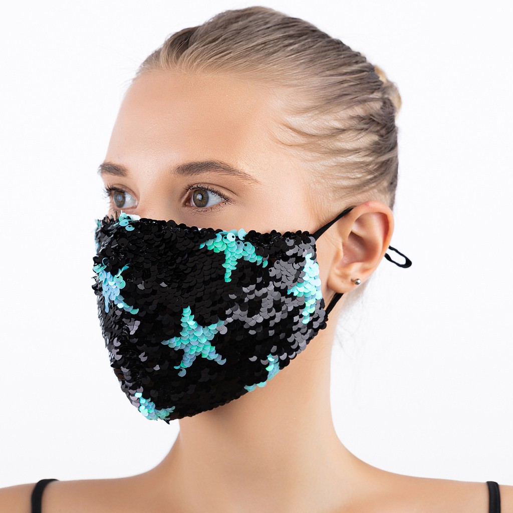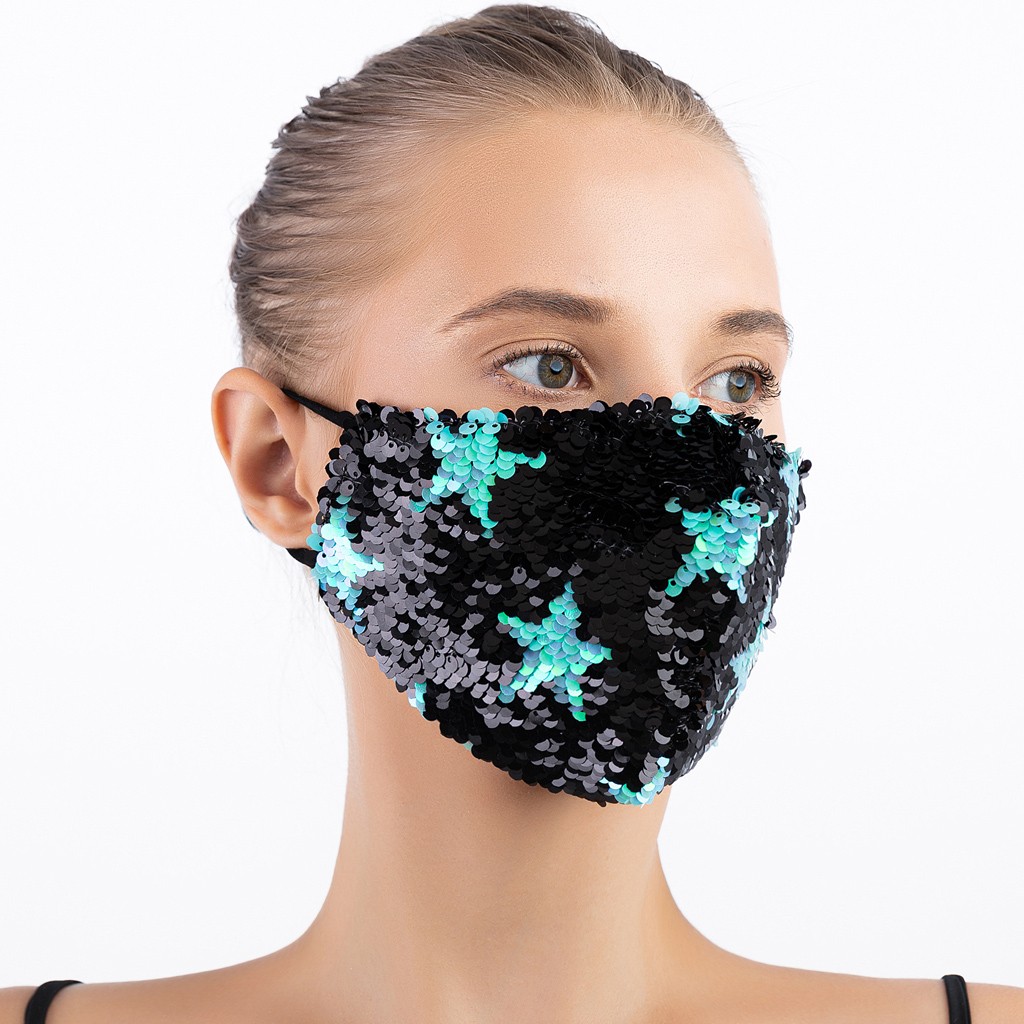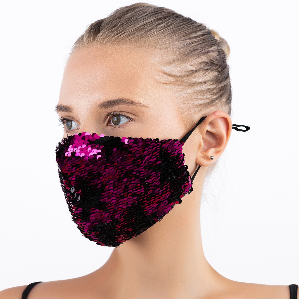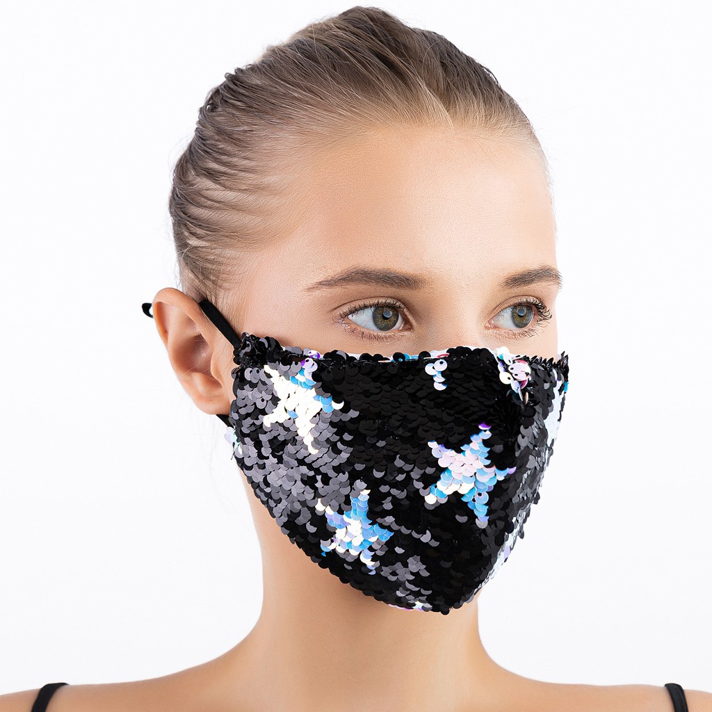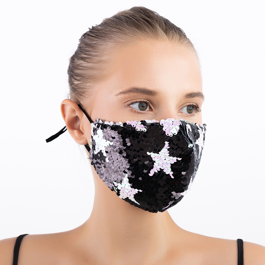 Маска изготовлена из ткани и пайеток, с небольшим запахом. Замочите его в теплой воде в течение 15 минут, и запах исчезнет медленно.
