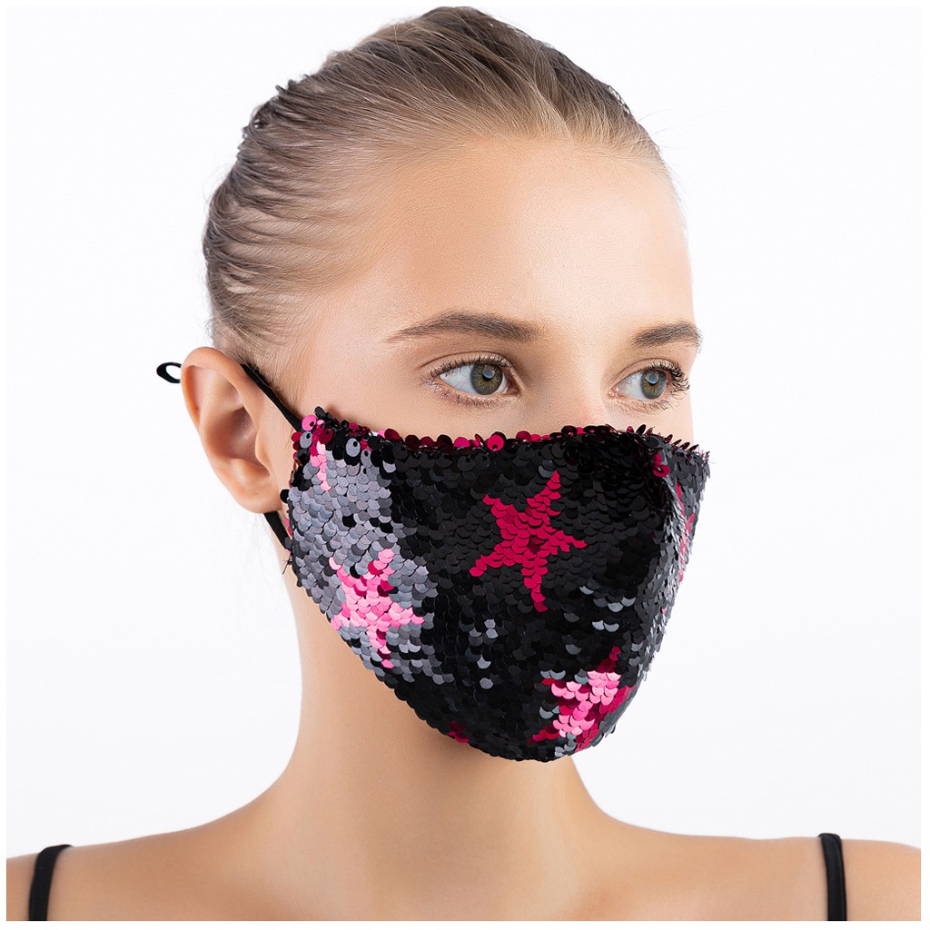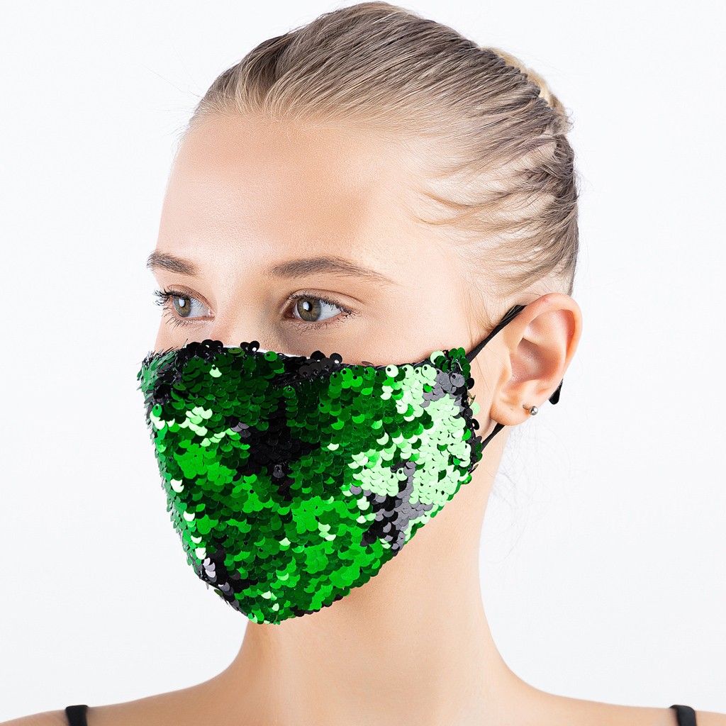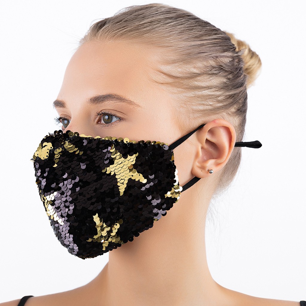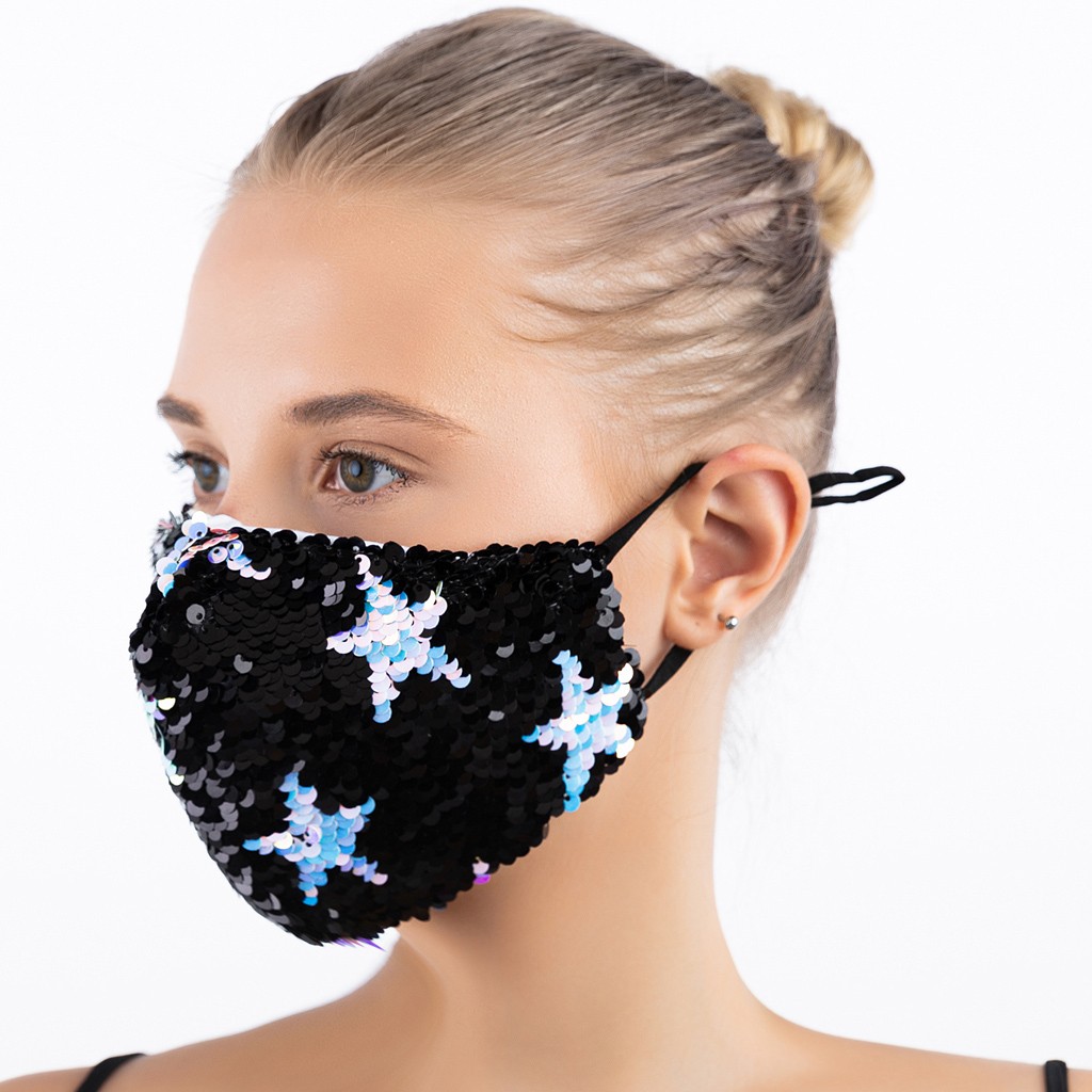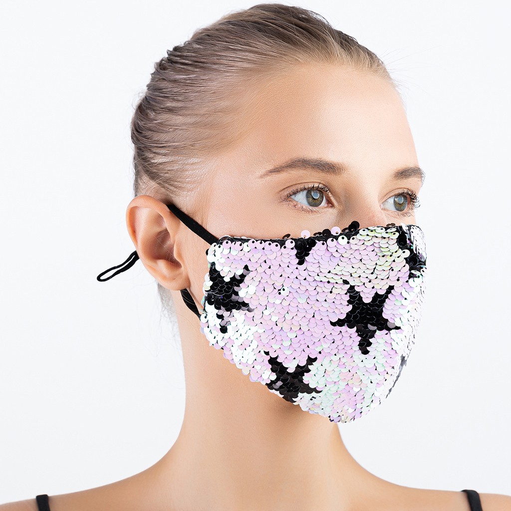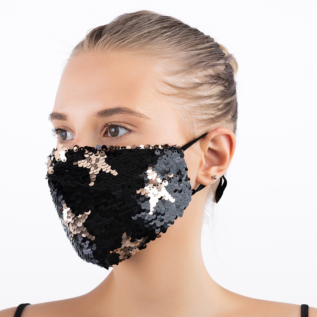 Маска изготовлена из ткани и пайеток, с небольшим запахом. Замочите его в теплой воде в течение 15 минут, и запах исчезнет медленно.