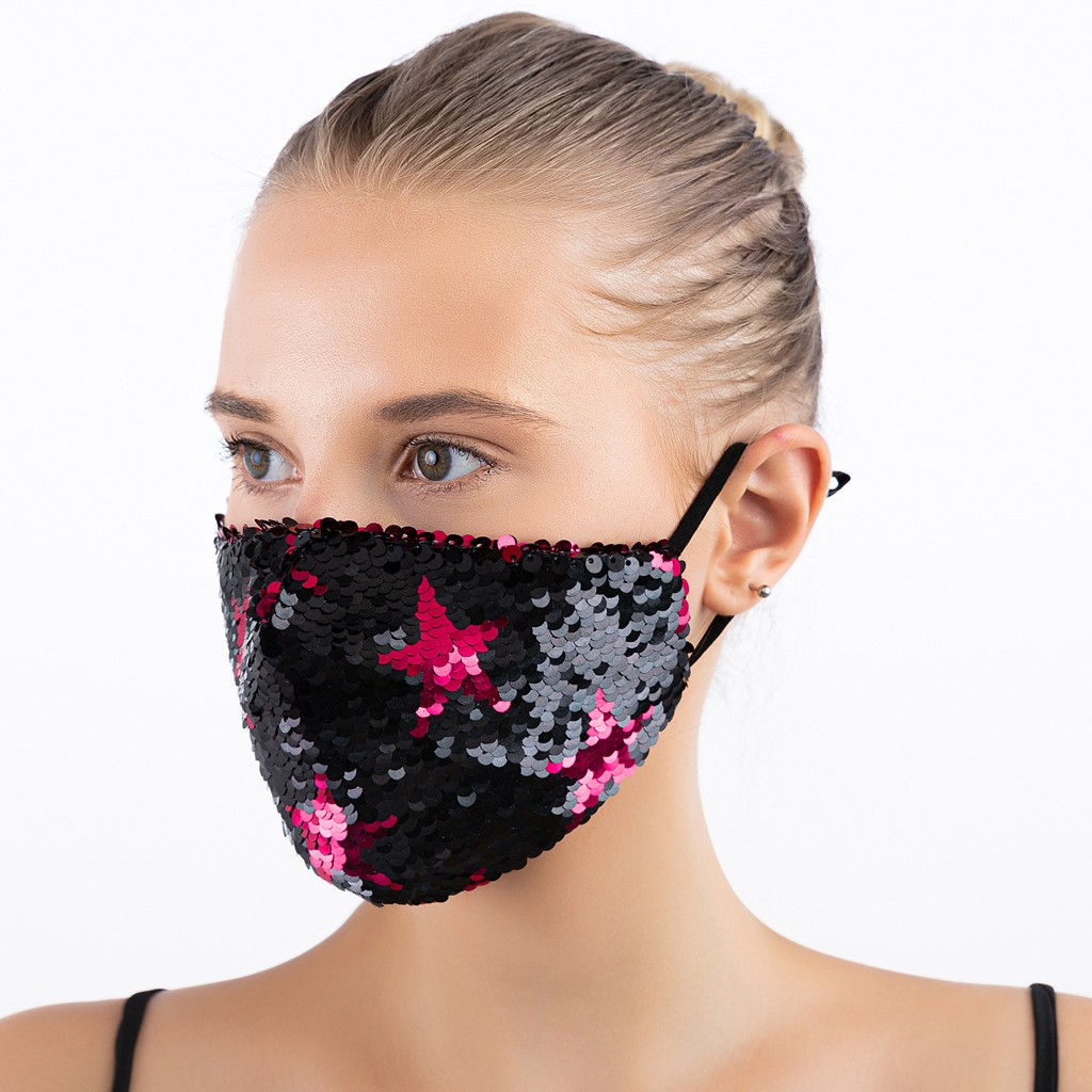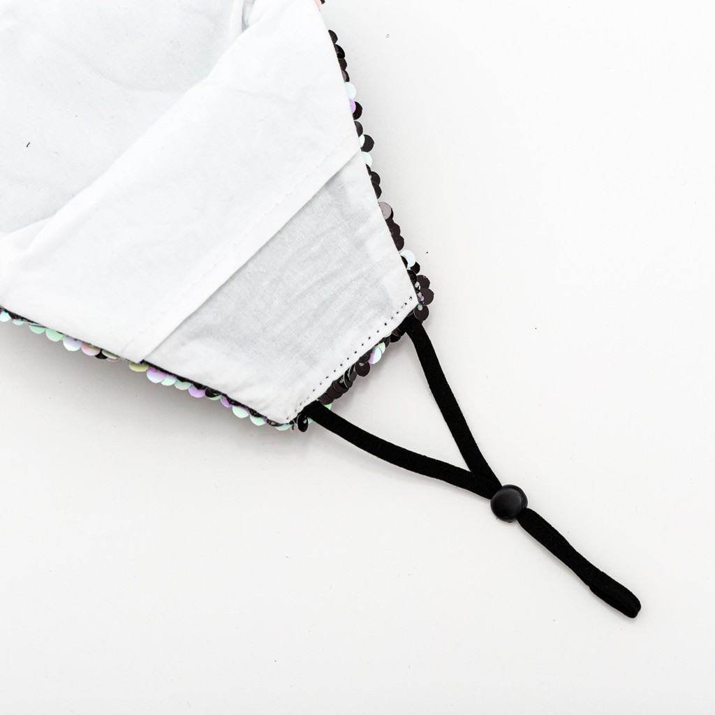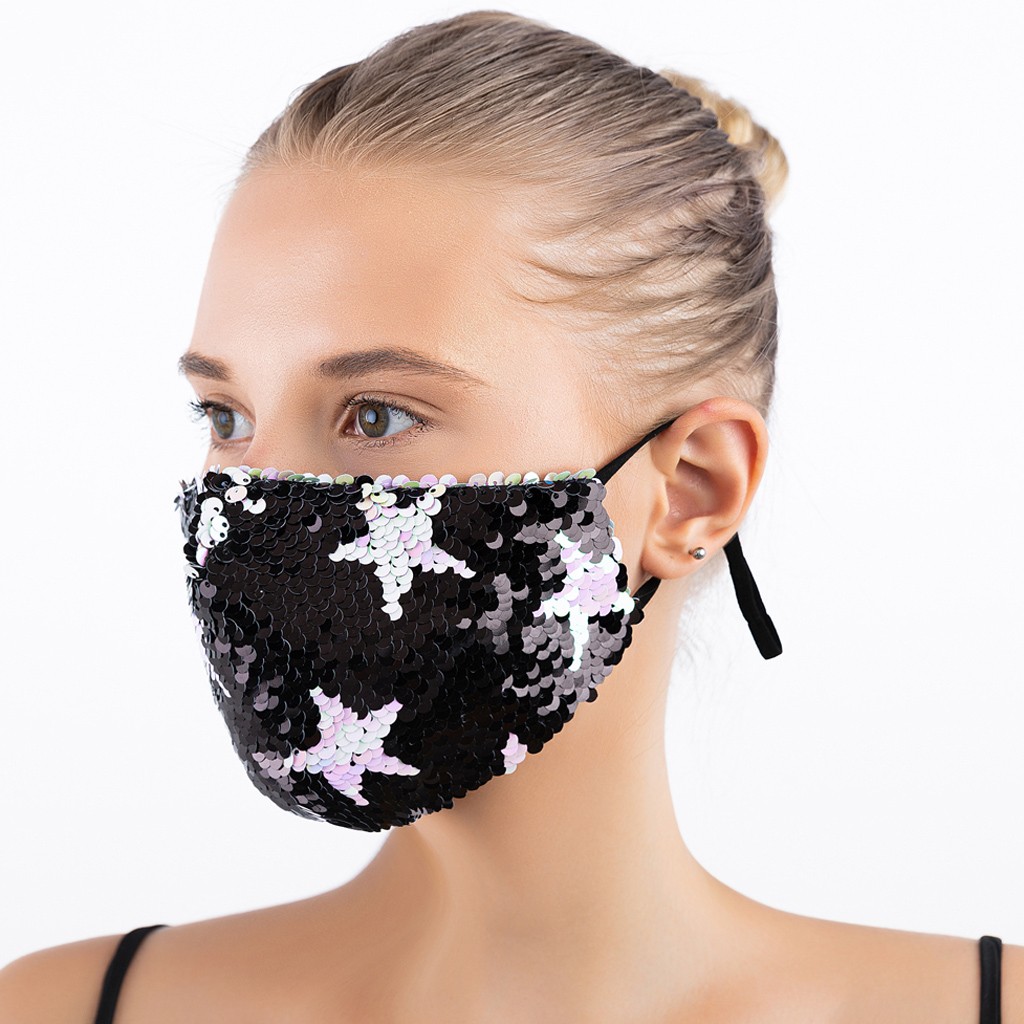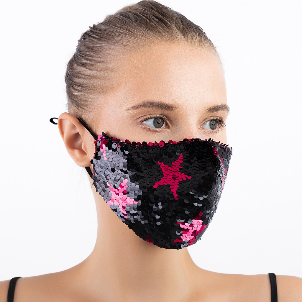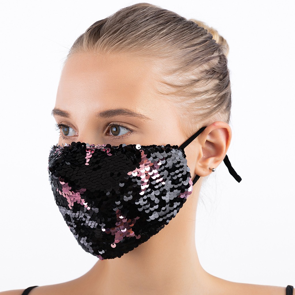 Маска изготовлена из ткани и пайеток, с небольшим запахом. Замочите его в теплой воде в течение 15 минут, и запах исчезнет медленно.