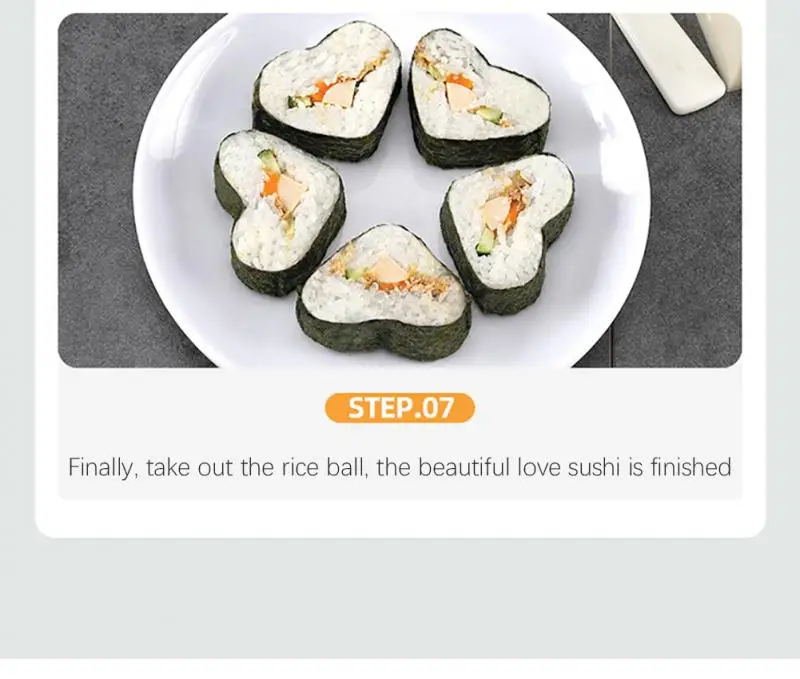 (7). Наконец, выньте рисовый шар, красивая любовь суши закончена