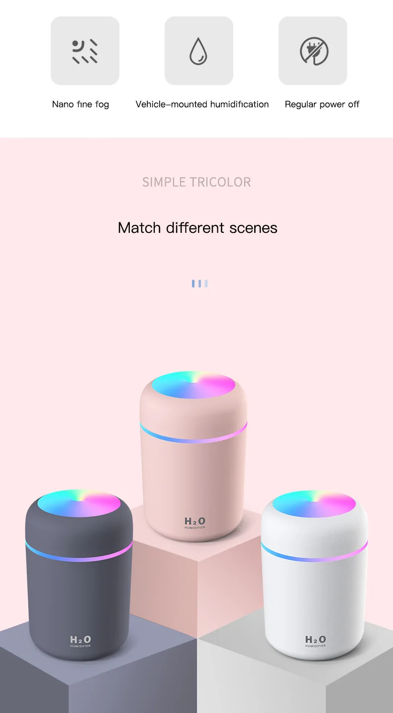 Многофункциональность: Идеально подходит для использования в автомобиле, офисе, гостиной и т. д., сохраняет сухую кожу влагой и возвращает вам свежий воздух.