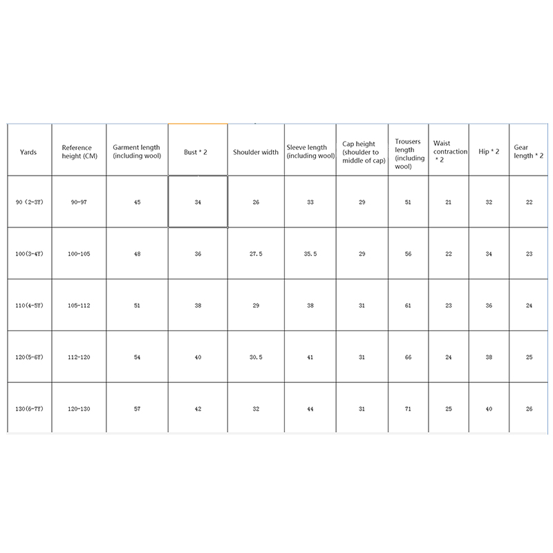 100 Возраст: 3-4 года длина стопы: 18,90 Обхват груди: 28,35 Длина брюк: 22,05 обхват бедер: 26,77