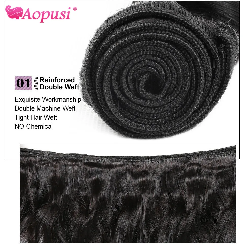 Aopusi свободные волнистые пряди с закрытием бразильские 3 пряди с закрытием волосы переплетения с кружевной застежкой Remy волосы
