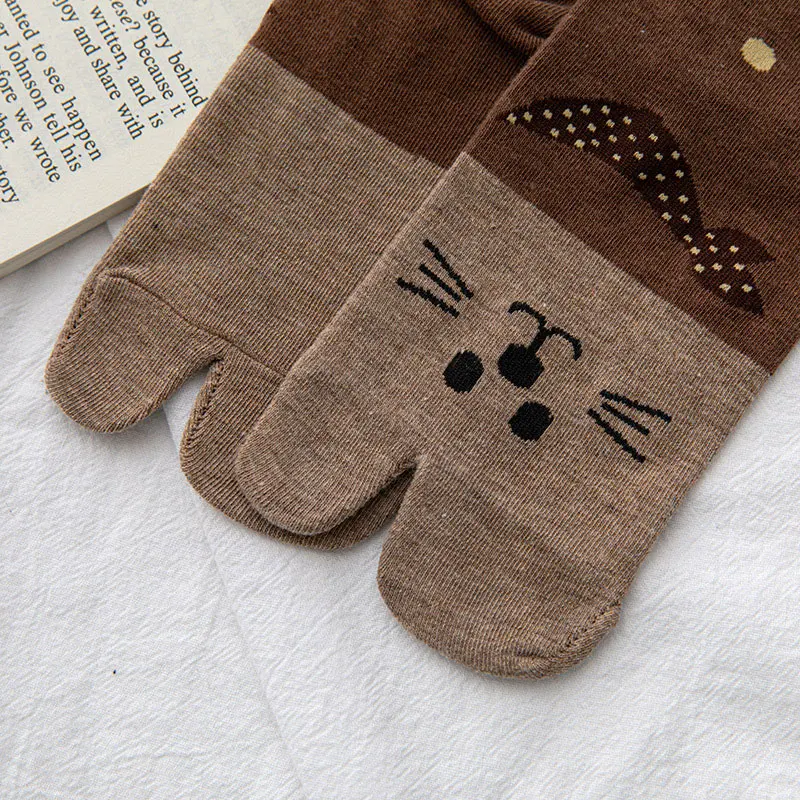 Наименование товара: женские хлопковые носки с раздельным носком; Носки с двумя пальцами и рисунком кота