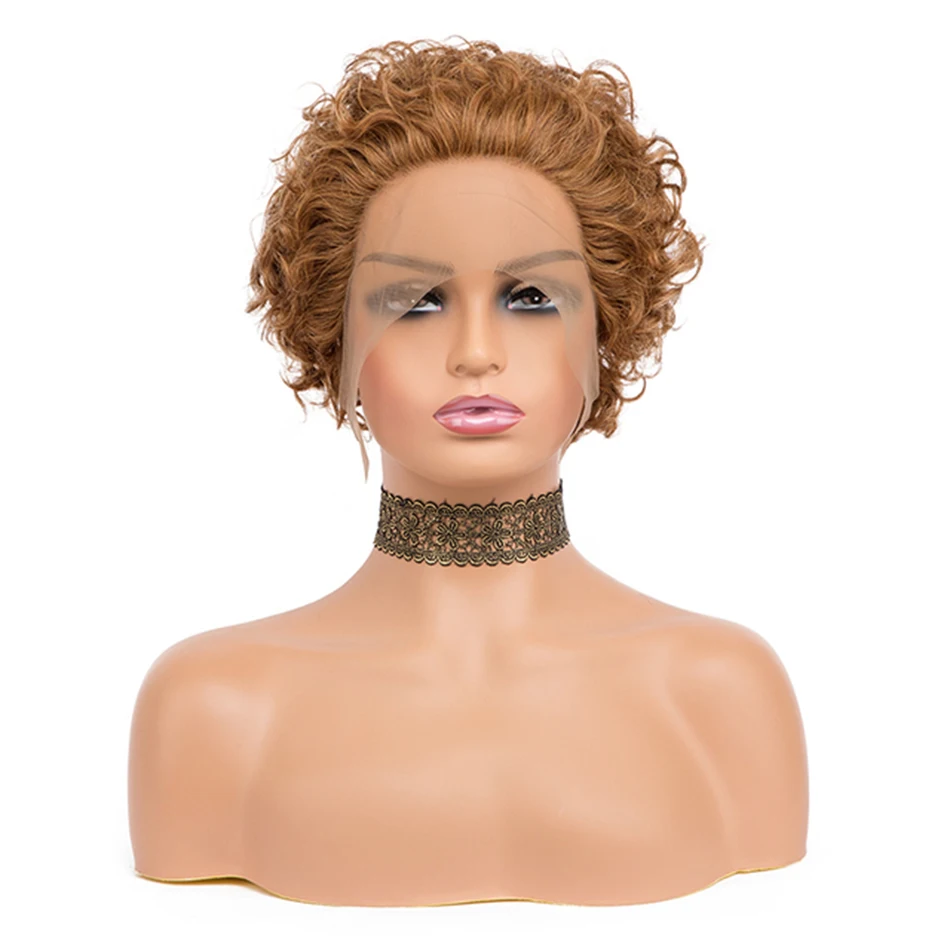 Короткий кудрявый стрижка Пикси парик человеческих волос Синтетические волосы на кружеве 13x1 прозрачный Синтетические волосы на кружеве al парик глубокая вода кудрявый парик человеческих волос парик