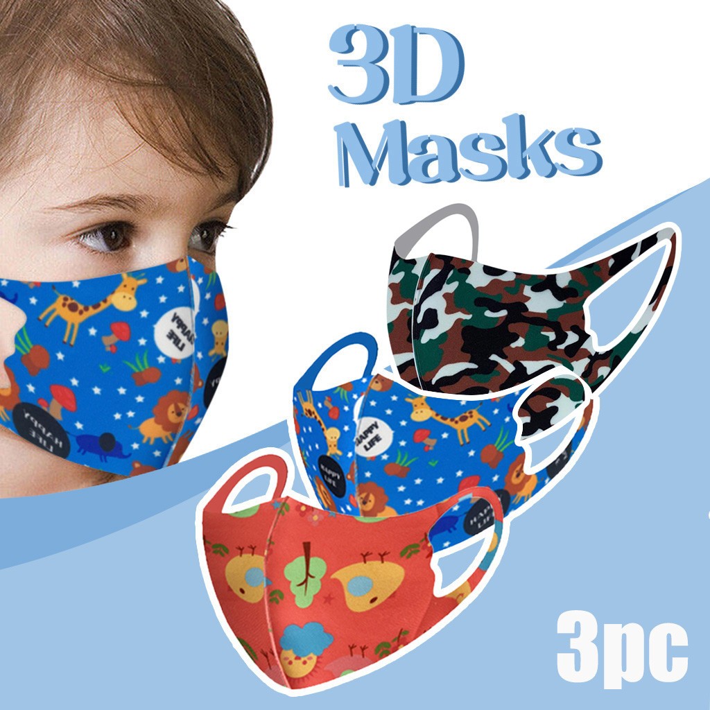 3 шт., Детская Хлопковая моющаяся Регулируемая Маска с фильтром для мальчиков и девочек
