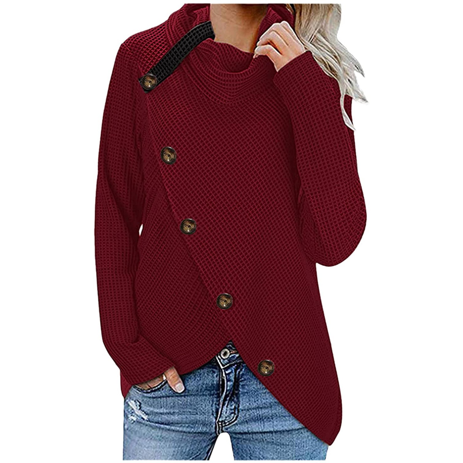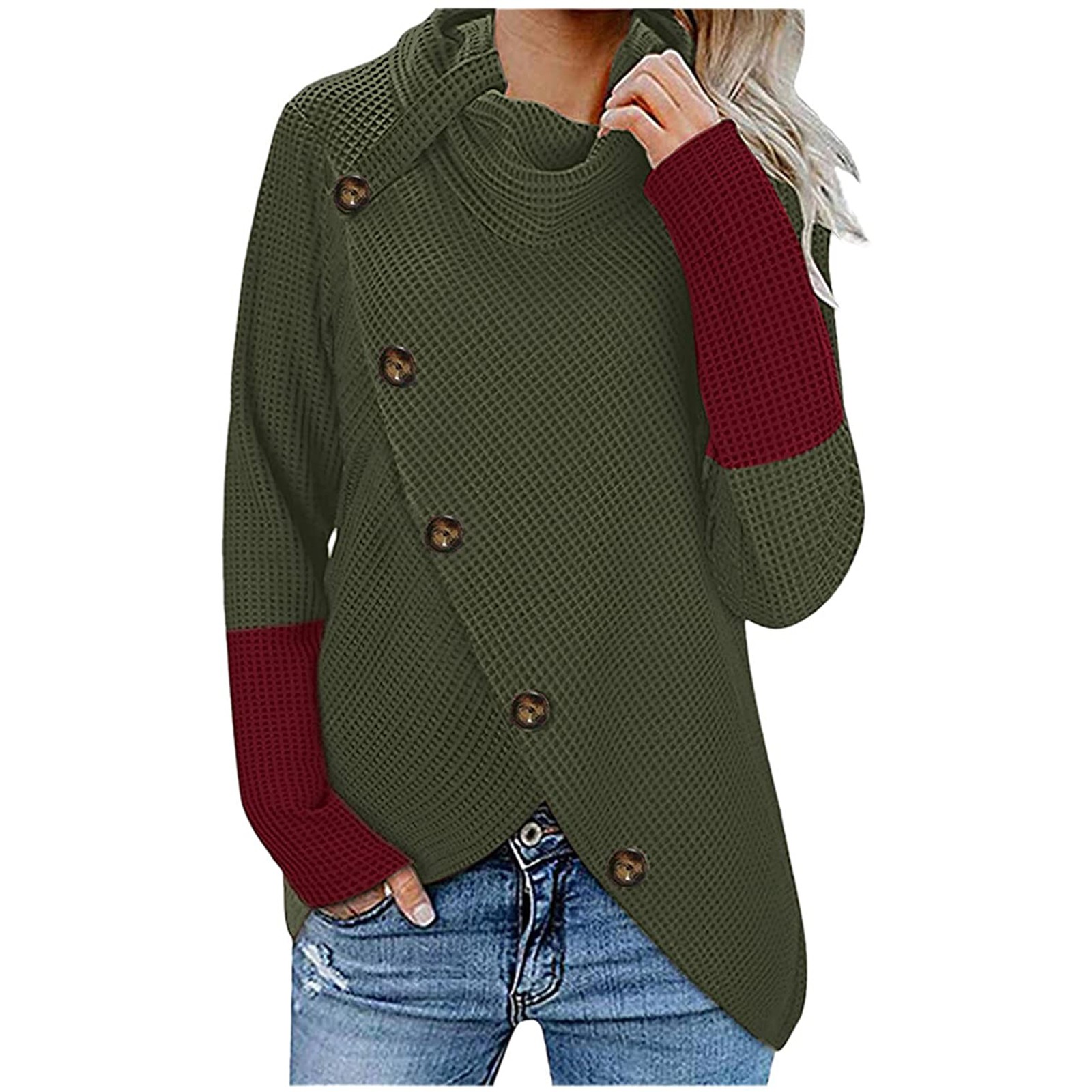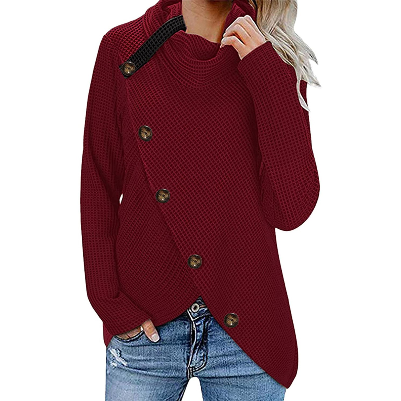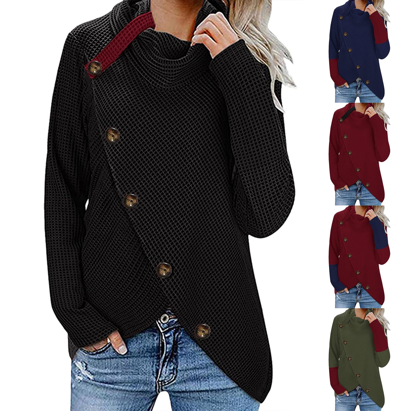 Женский Повседневный трикотажный пуловер с длинными рукавами и пуговицами и воротником-хомутом; Туника; Свитера