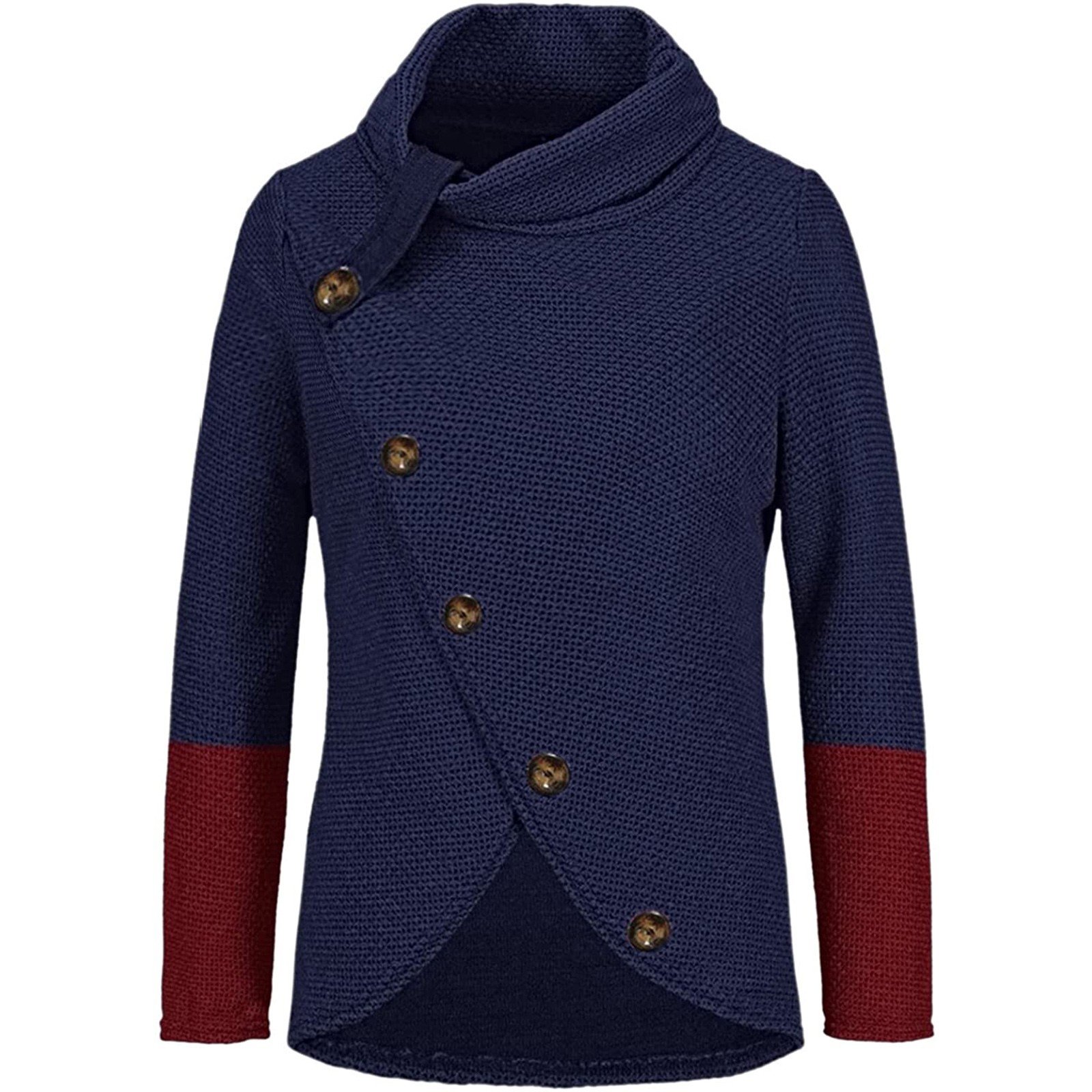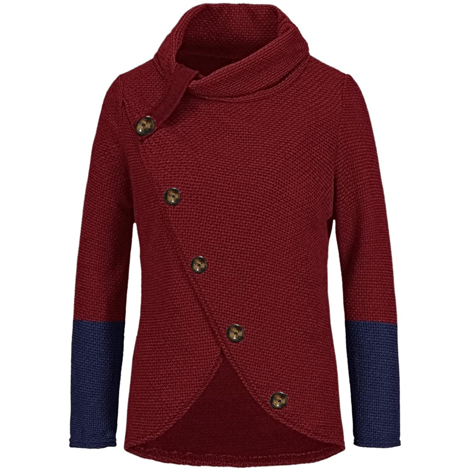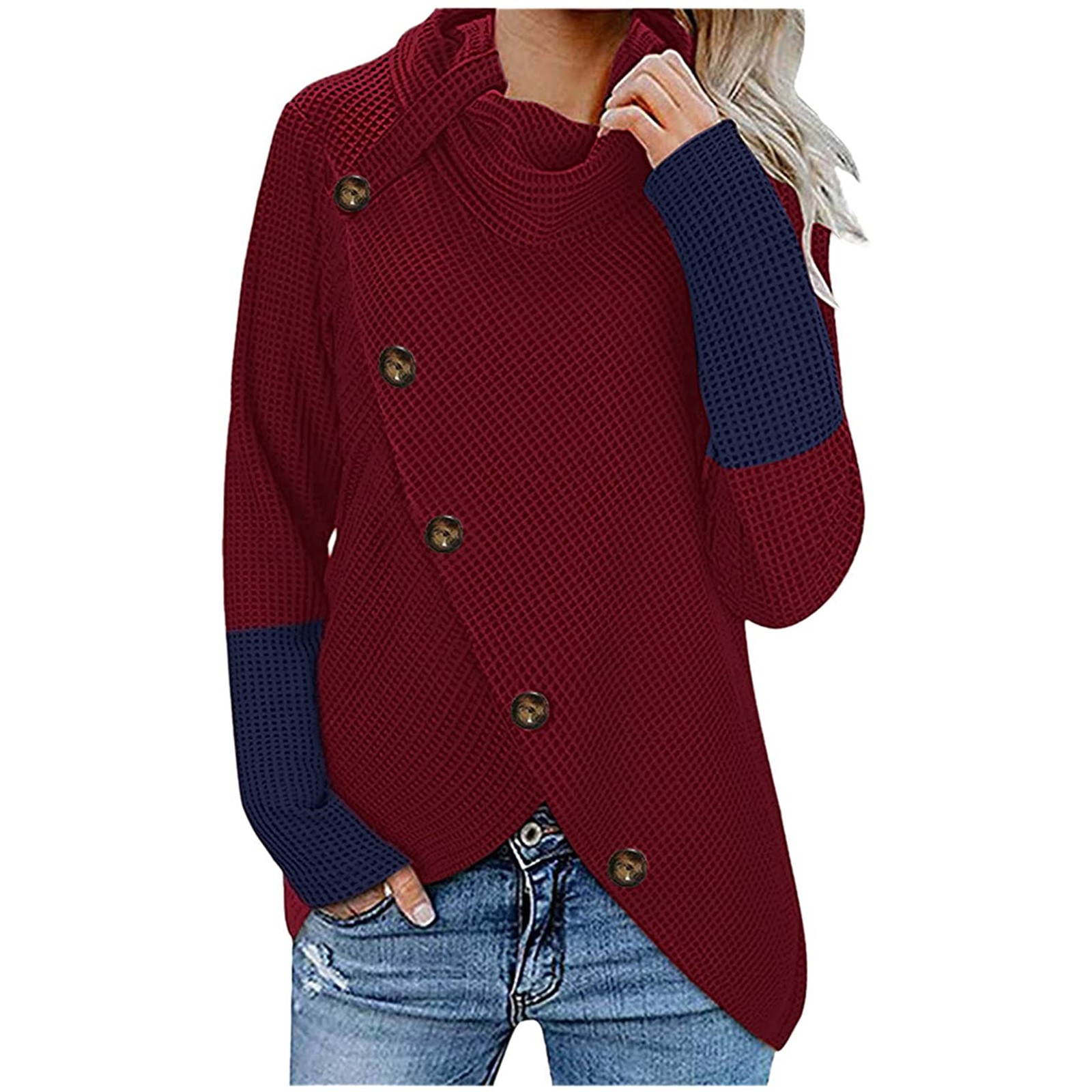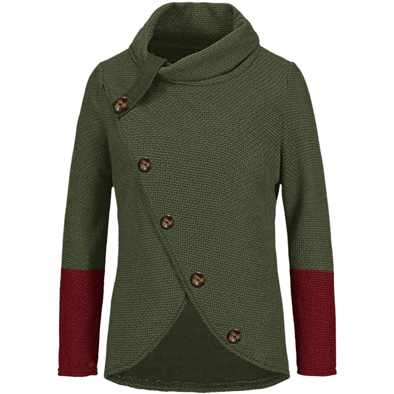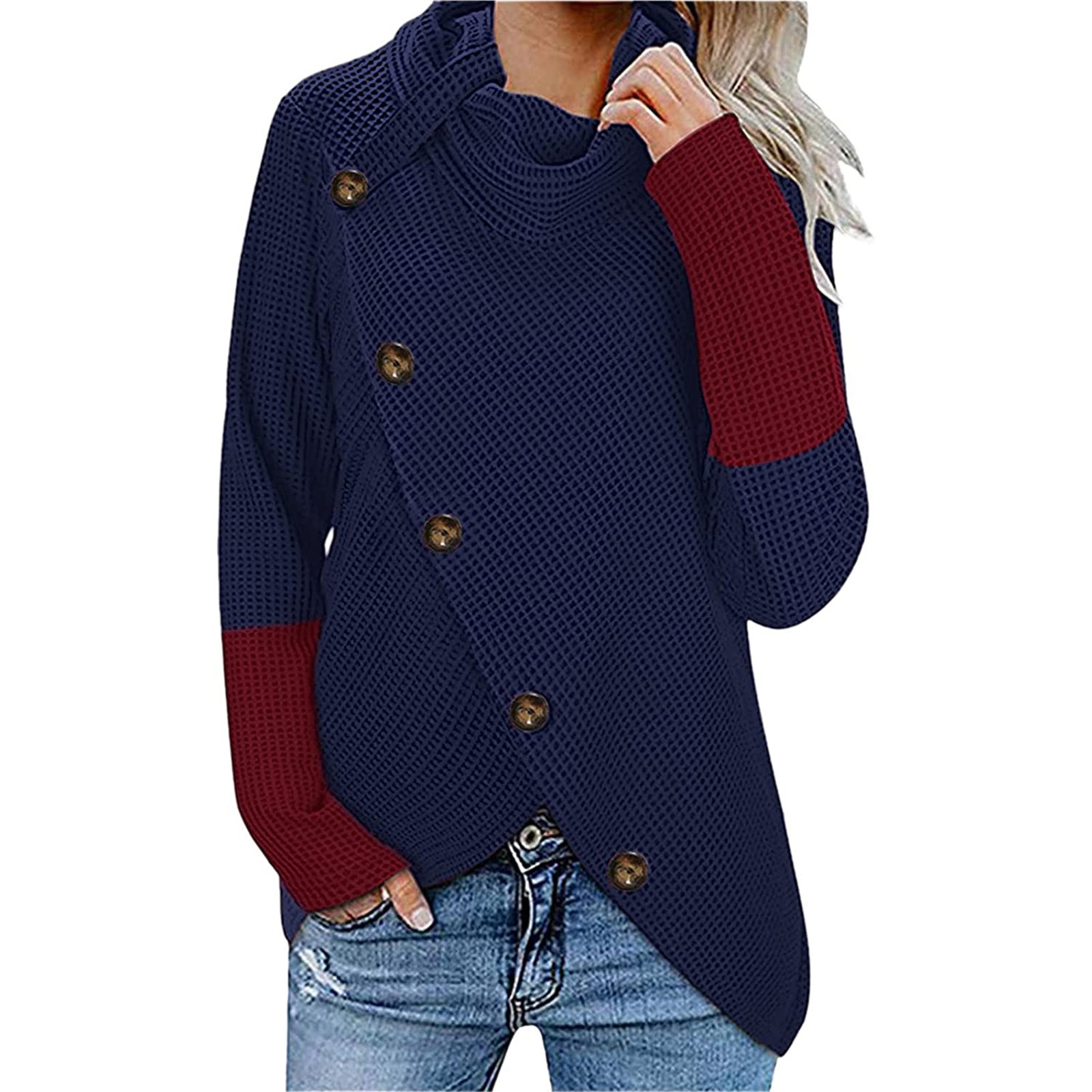 Женский Повседневный трикотажный пуловер с длинными рукавами и пуговицами и воротником-хомутом; Туника; Свитера