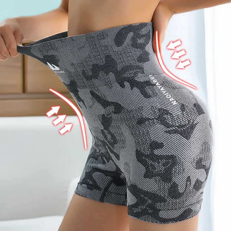 Спортивные камуфляжные шорты с высокой талией, бесшовные шорты для фитнеса и йоги, шорты для йоги, спортивные женские леггинсы, спортивная одежда, Новинка.