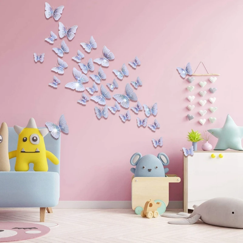 48 шт., блестящие 3D наклейки на стену с бабочками, съемные наклейки на стену, яркие наклейки на стену с бабочками для украшения комнаты своими руками