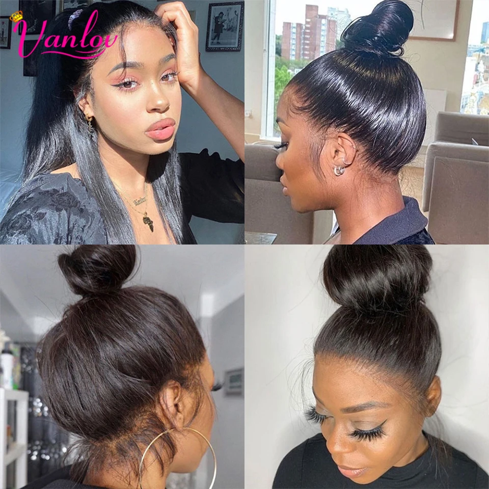 Vanlov перуанские прямые волосы, кружевные передние человеческие волосы, парики с детскими волосами, предварительно выщипанные передние кружевные парики, 180% плотность, волосы Remy