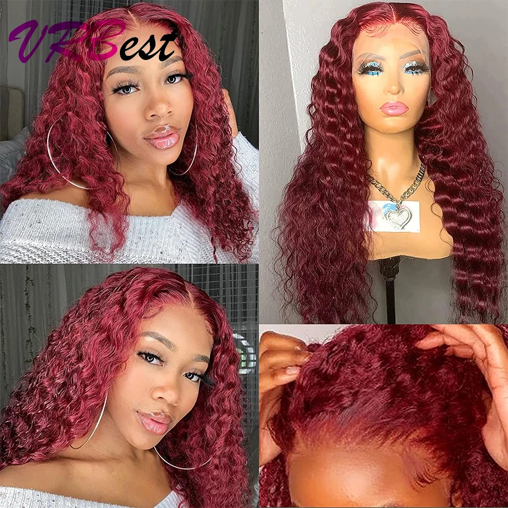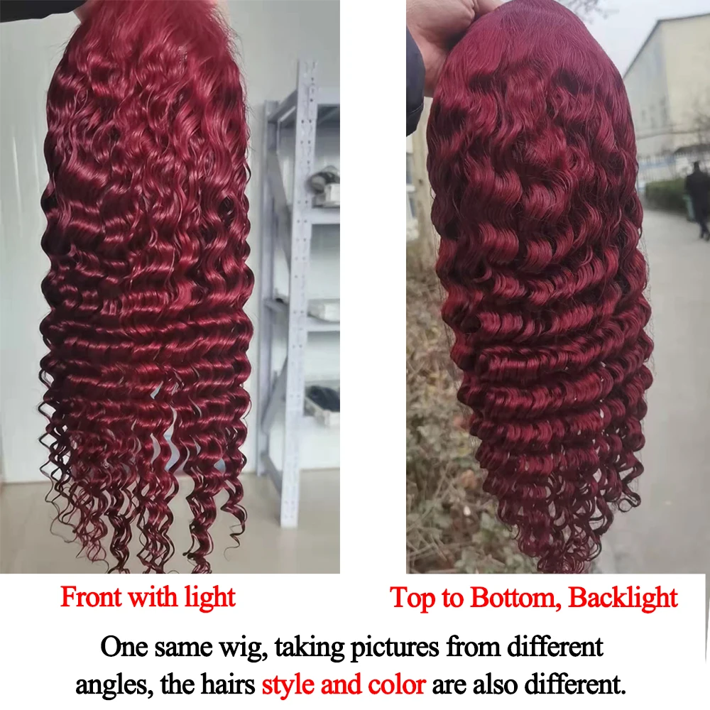 Изделие для волос | 99J цветные кружевные передние парики, парик из человеческих волос с глубокой волной, бордовый 13x4 HD прозрачный кружевной передний парик, бесклеевой, винно-красный парик для женщин |