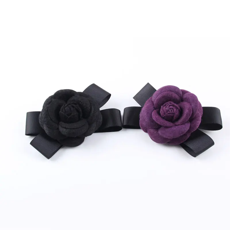 Унисекс черный бант ткань цветок камелии брошь цветок булавка ручной работы шарф Пряжка большие броши с розами вечерние ювелирные изделия аксессуары