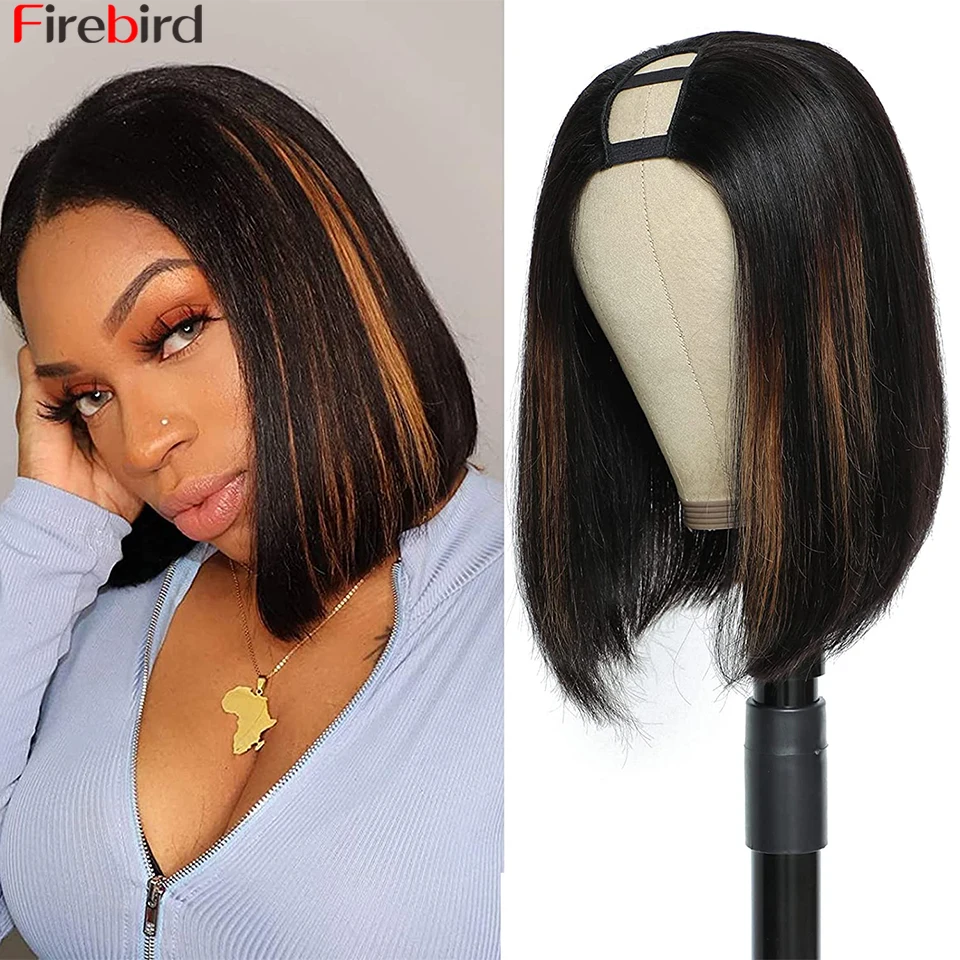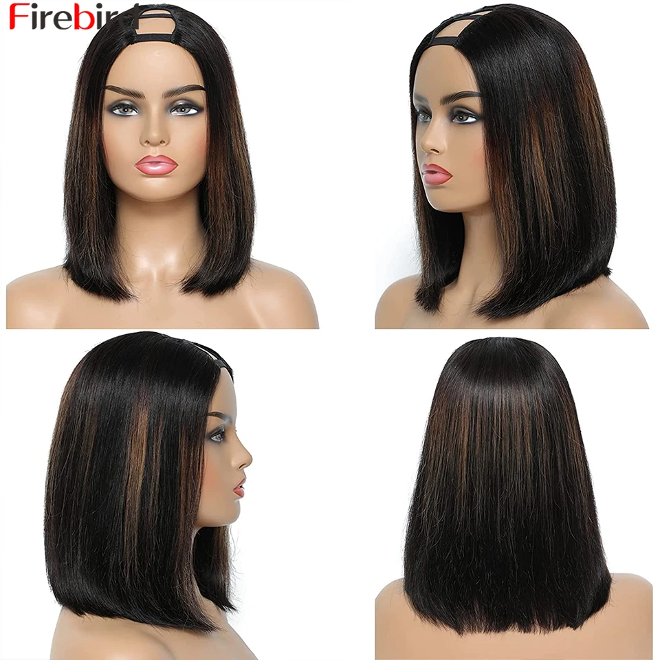 Прямые u-образные парики из натуральных волос, парик из коричневого цвета, парик из натуральных волос, короткие волосы с накладками в виде полупарика, двухцветные парики FB30