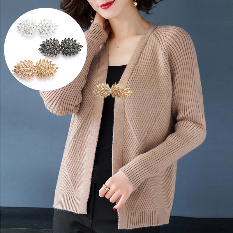 Винтажный кардиган, воротник, зажим, держатель, одна пара, Модный женский декор, блестящий плащ с кристаллами, плащ, застежки, пряжка, брошь, зажим