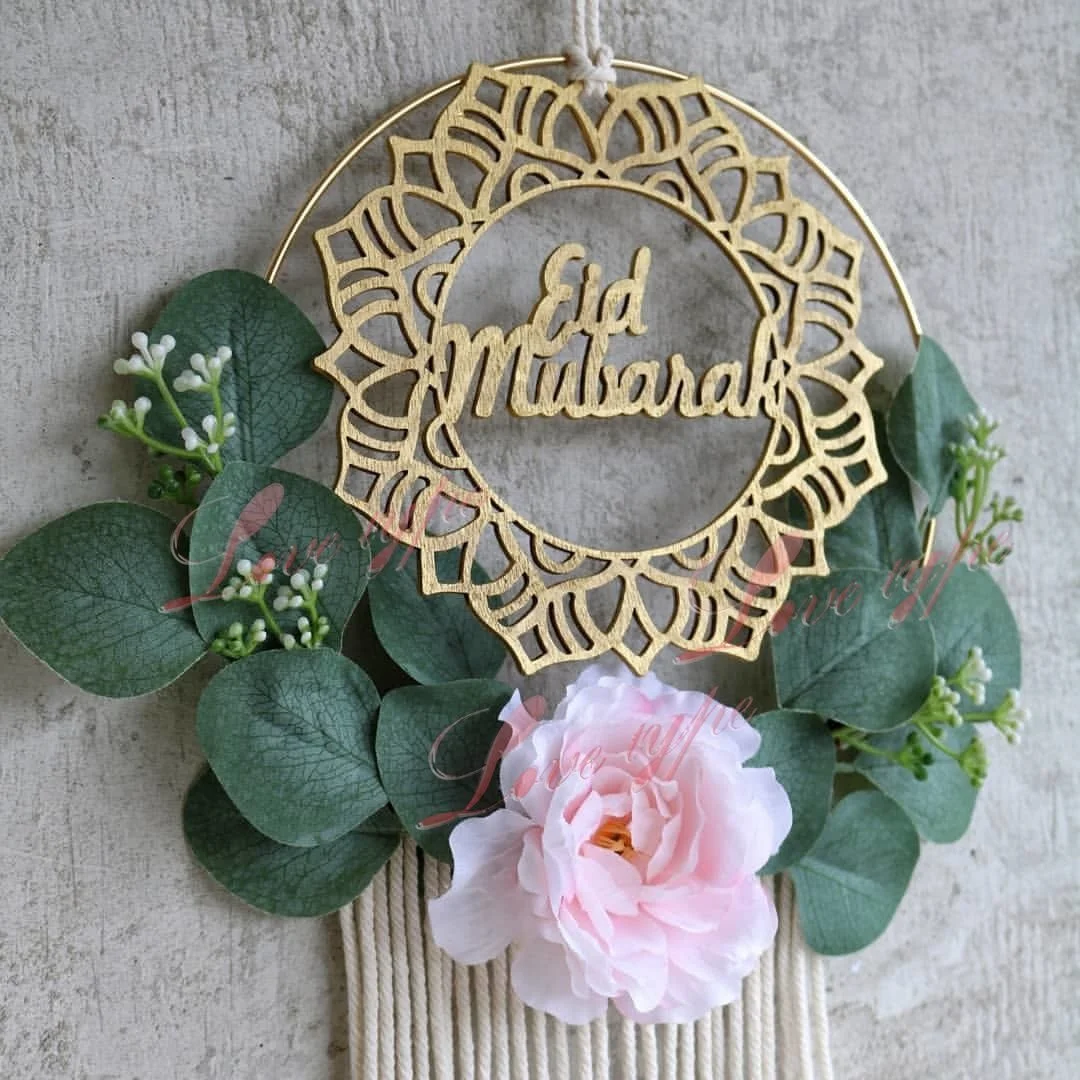 Eid Мубарак деревянный висячий орнамент с металлическим обручем для Рамадана Kareem украшения домашней двери ислам вечерние металлические кольца