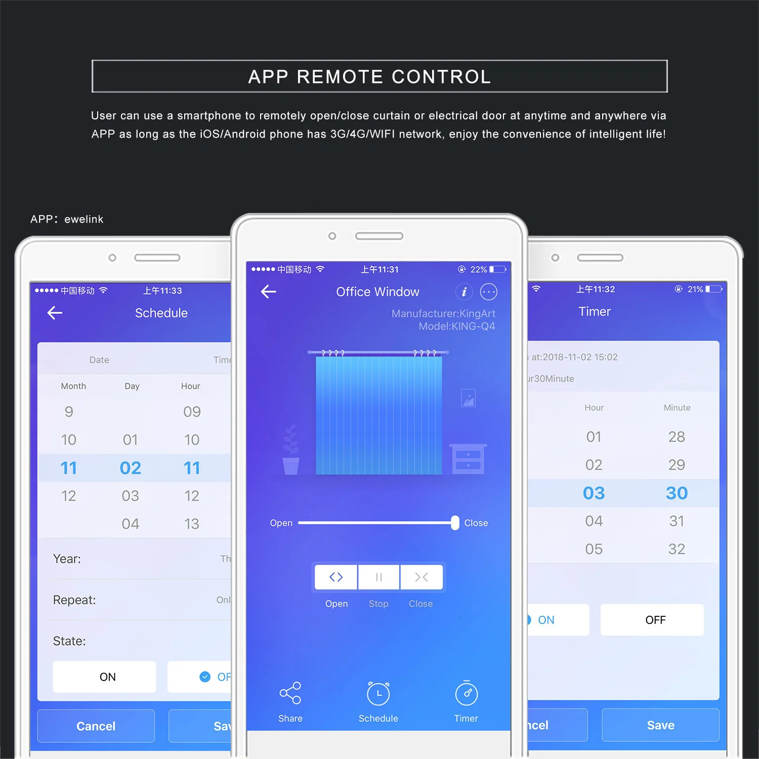 Используйте r можно использовать смартфон, чтобы удаленно открывать/закрывать занавес или электрическую дверь в любое время и в любом месте с помощью приложения до тех пор, пока телефон iOS/Android имеет сеть 3G/4G/WIFI, наслаждайтесь удобством умной жизни! Приложение: eWeLink.