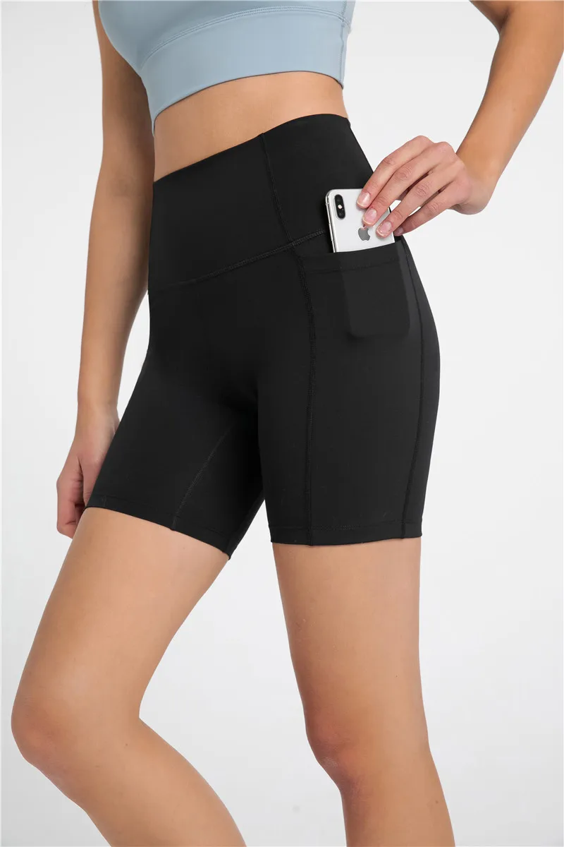 Women's High Waist Shorts Fitness Gauze Pocket Sport Tights For Yoga Running Activewear Workout Gym Female Tight |
