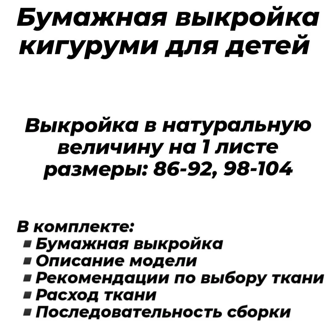 - выкройка на бумаге, на 1 листе размеры 86-92, 98-104