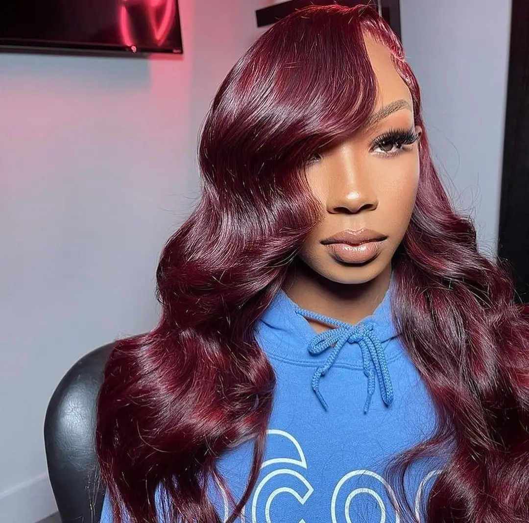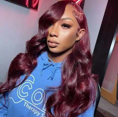 Hair Color: Burgundy Ships From: United States Stretched Length: 26inches Density: 180Density 13x4 Lace