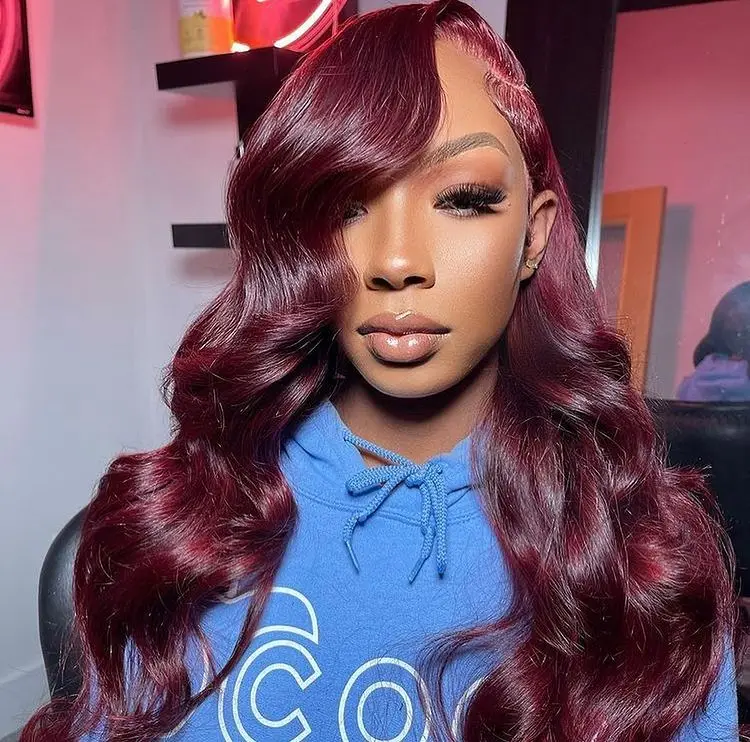 Show moreColored Burgundy Lace Frontal Wig Peruvian Body Wave Human Hair Wigs For Women Pre Plucked #99J Red Lace Frontal Curly Wig Remy