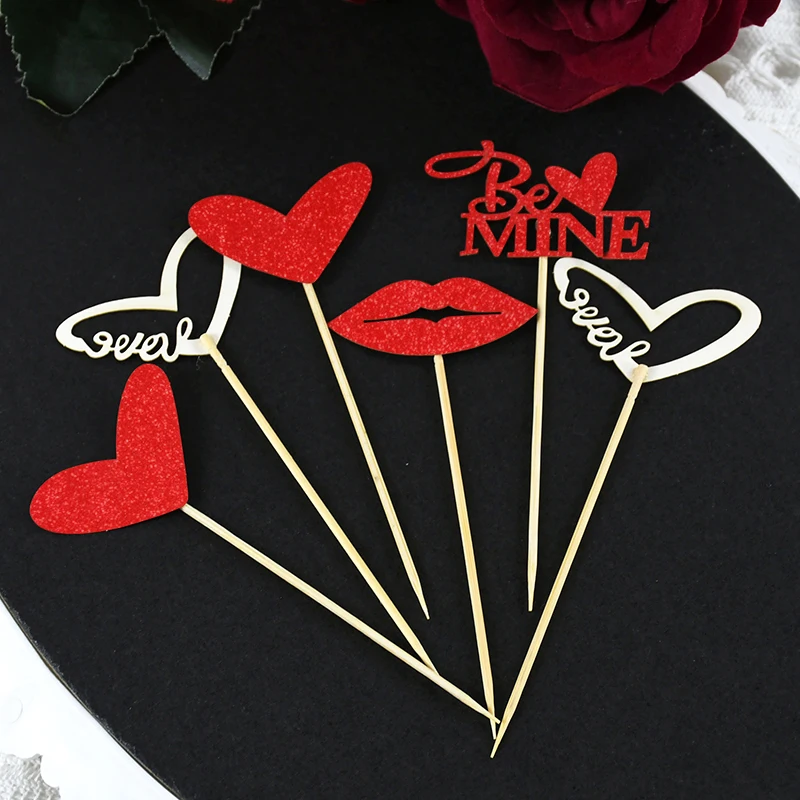 12 шт./компл. Любовь Свадебный торт Топпер красное розовое сердце день Святого Валентина торт топперы для свадебной вечеринки товары для украшения торта