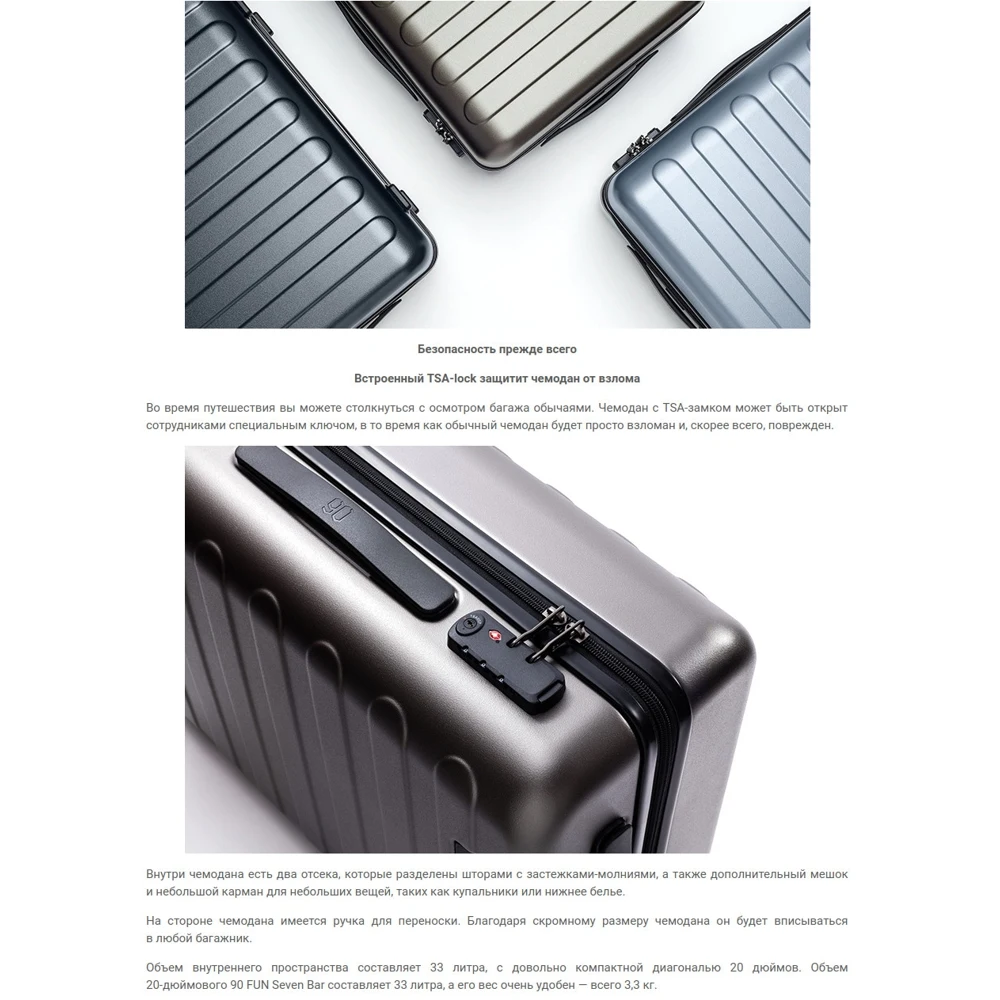 Не подделка и не копия. 100% оригинальный товар! Возможно, Вы не каждый каждый день используете такую вещь, как чемодан, но каждый хочет быть уверенным в надежности и долговечности своих дорожных аксессуаров когда собирается в поездку. Новинка получила все преимущества своих предшественников — прочный корпус из устойчивой к царапинам полимерной структуры из полимерного карбоната Makrolon® + 3-слойного композита с повышенной прочностью, TSA-lock, небольшие и надежные складные колесики диаметром 6 см.