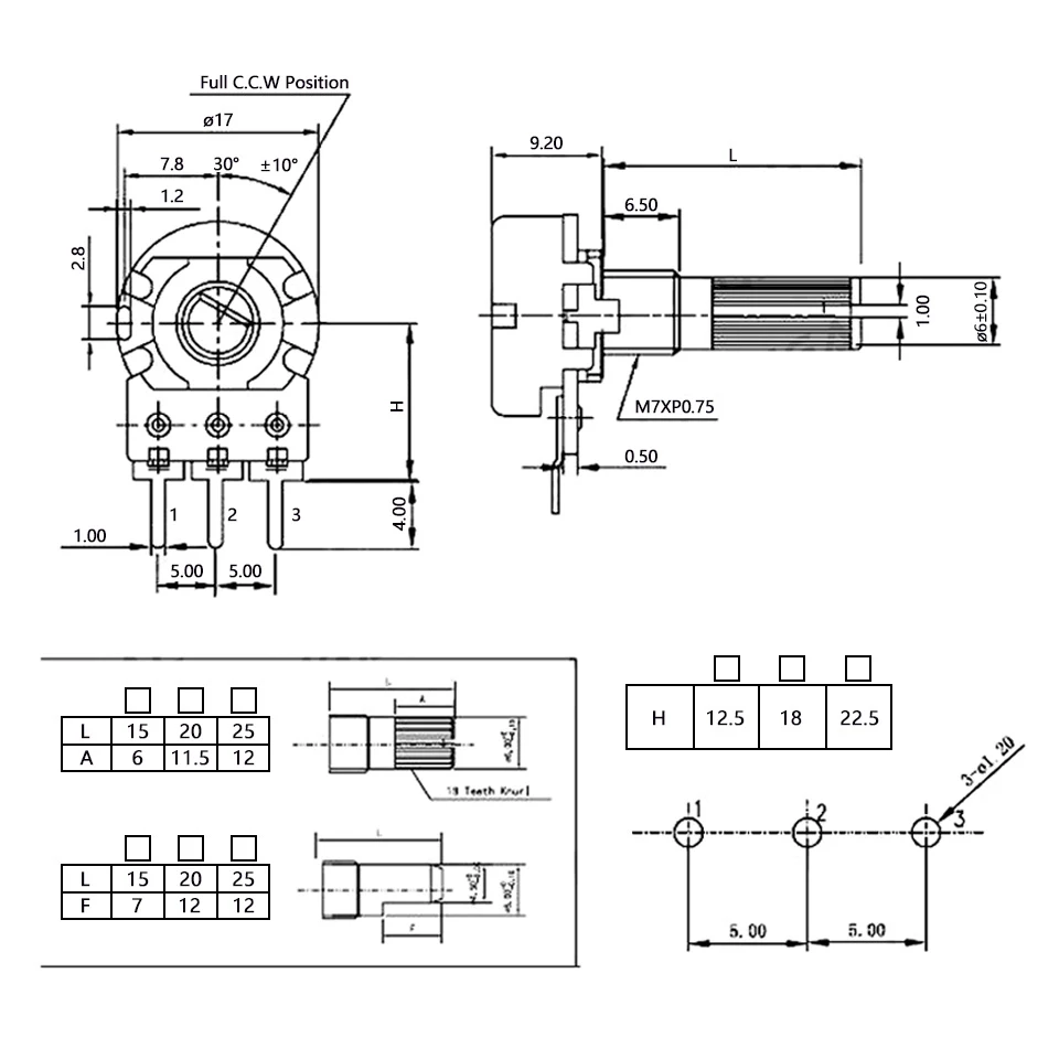 5 Sets = 10PCS WH148 1K 10K 20K 50K 100K 500K Ohm 15mm 3 Pin Linear Taper Rotary Potentiometer Resistor for Arduino with AG2 White capPackage Contents:50PCS