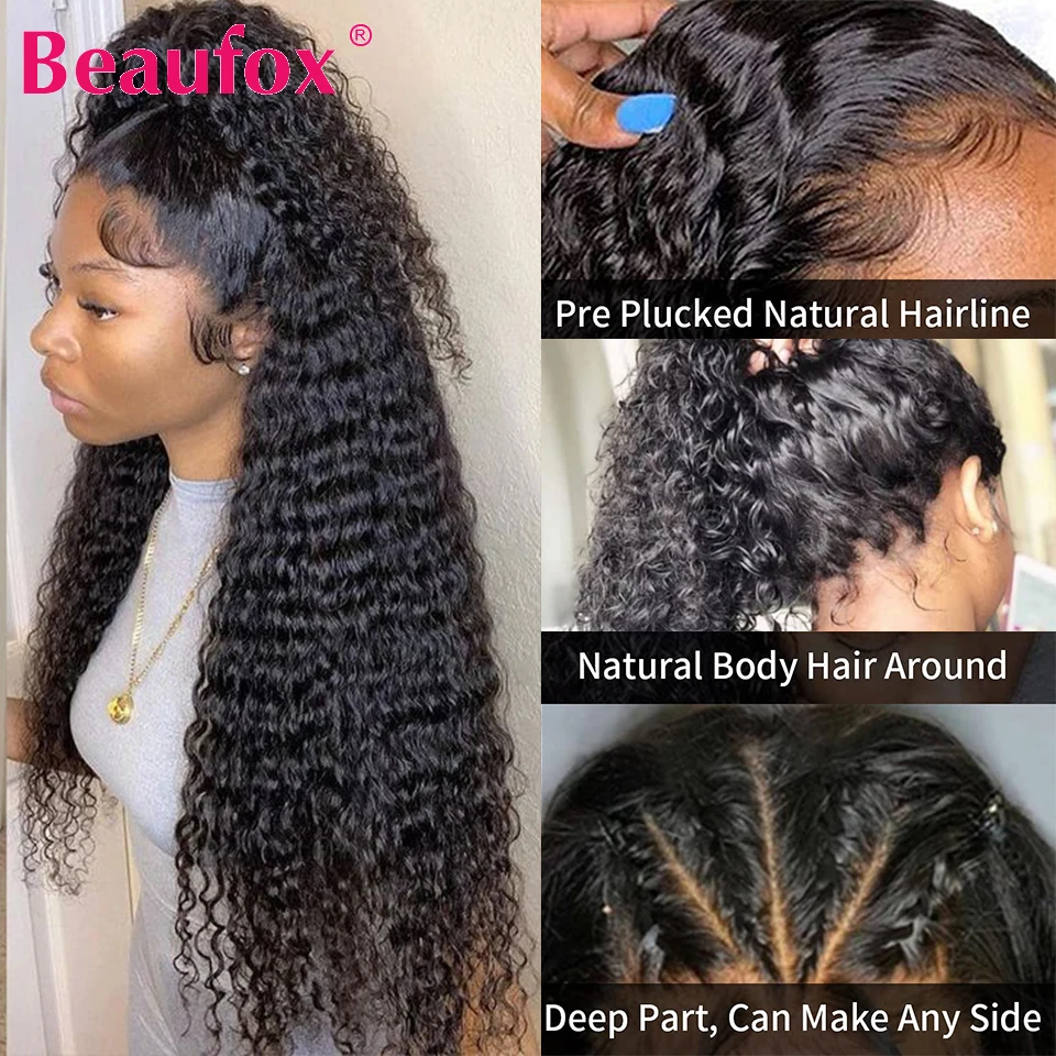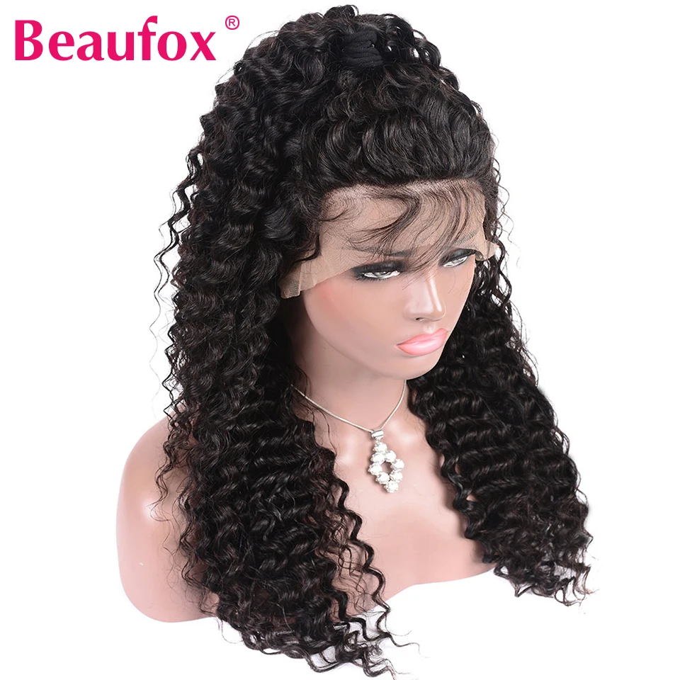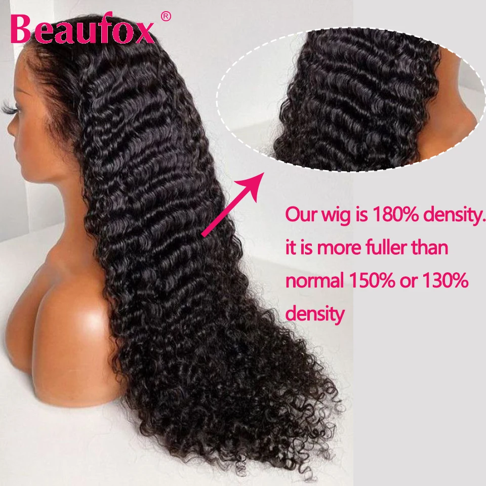 Beaufox Lace Front Human Hair Wigs Malaysian Deep Wave Lace Frontal Wig Curly Remy Human Hair Lace Wig Guleless Wig 180% DensityСмотрите так же другие товары: