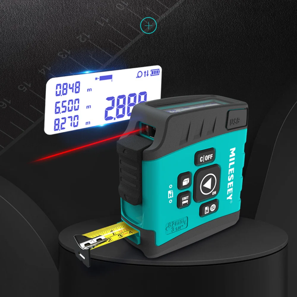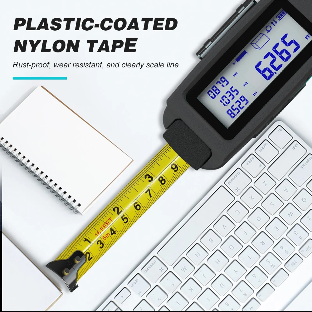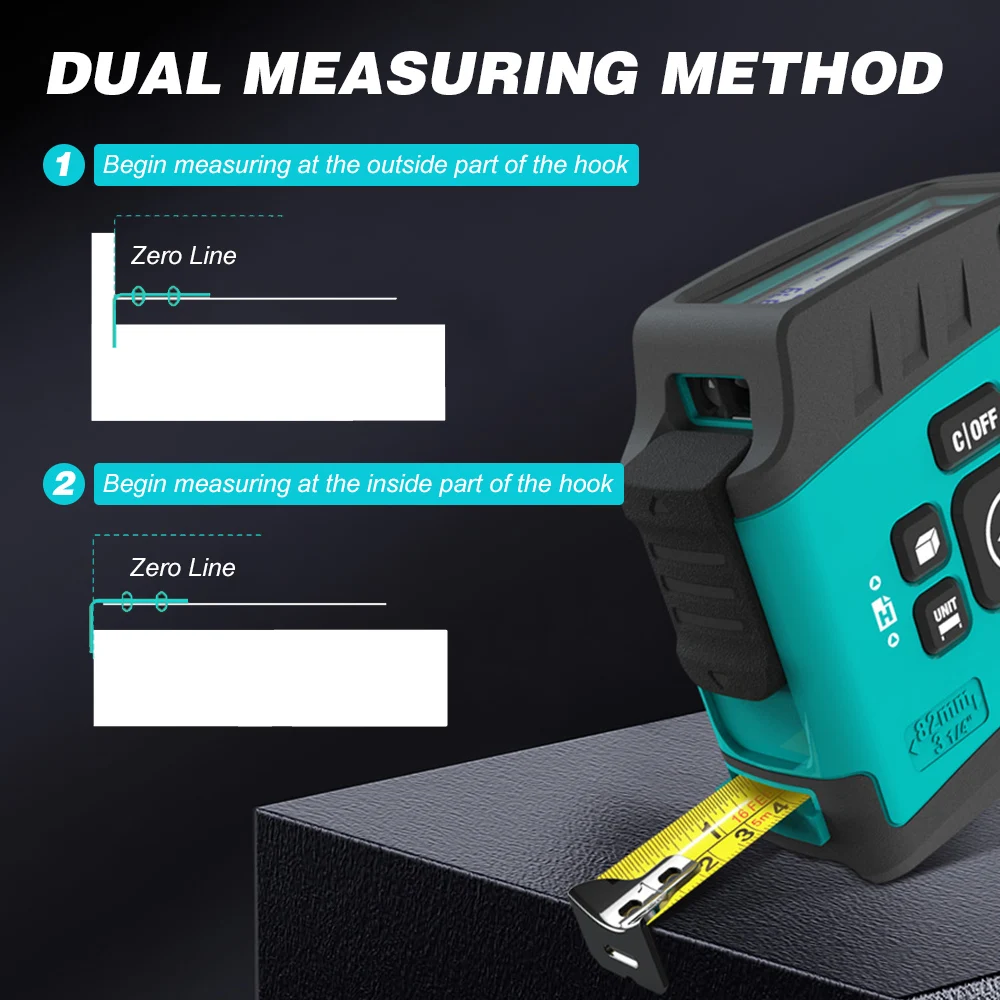 Инструмент представляет собой цифровую измерительную ленту в сочетании с ИК-измерителем расстояния для ежедневного домашнего измерения или профессиональной работы по отделке измерительных задач.