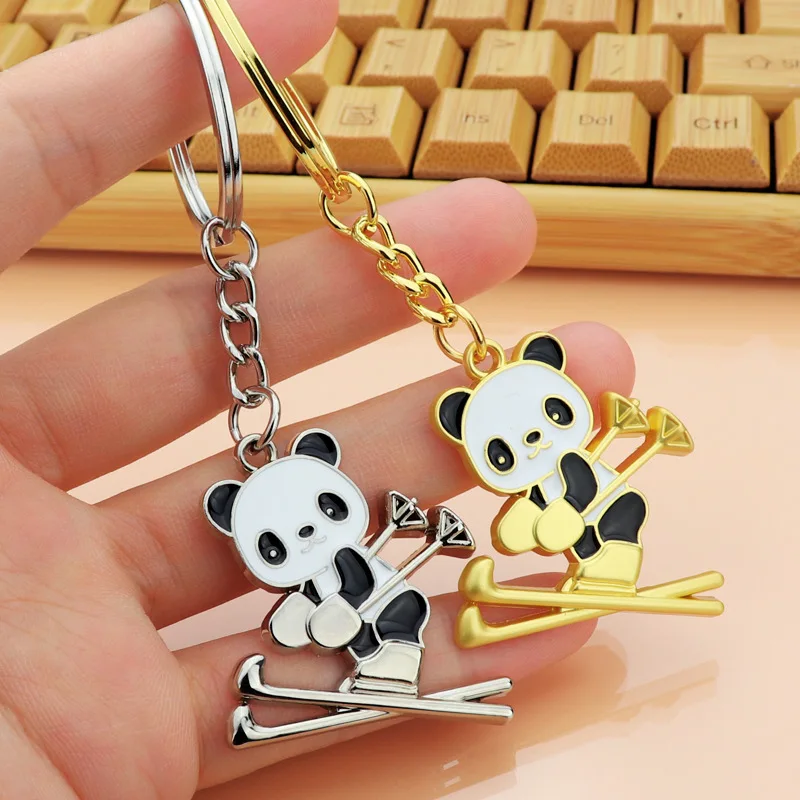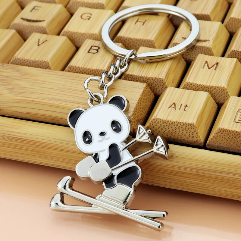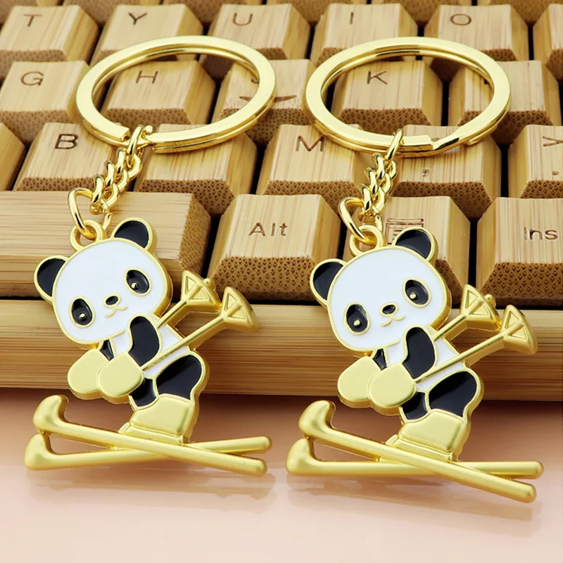 2022 Panda Ski Keychain Olympiad Panda Skating Key Rings Cute Panda Keychain For Gifts Backpacks Bag Charm Holder Cartoon Chain