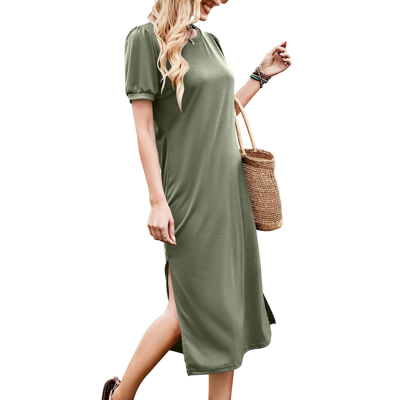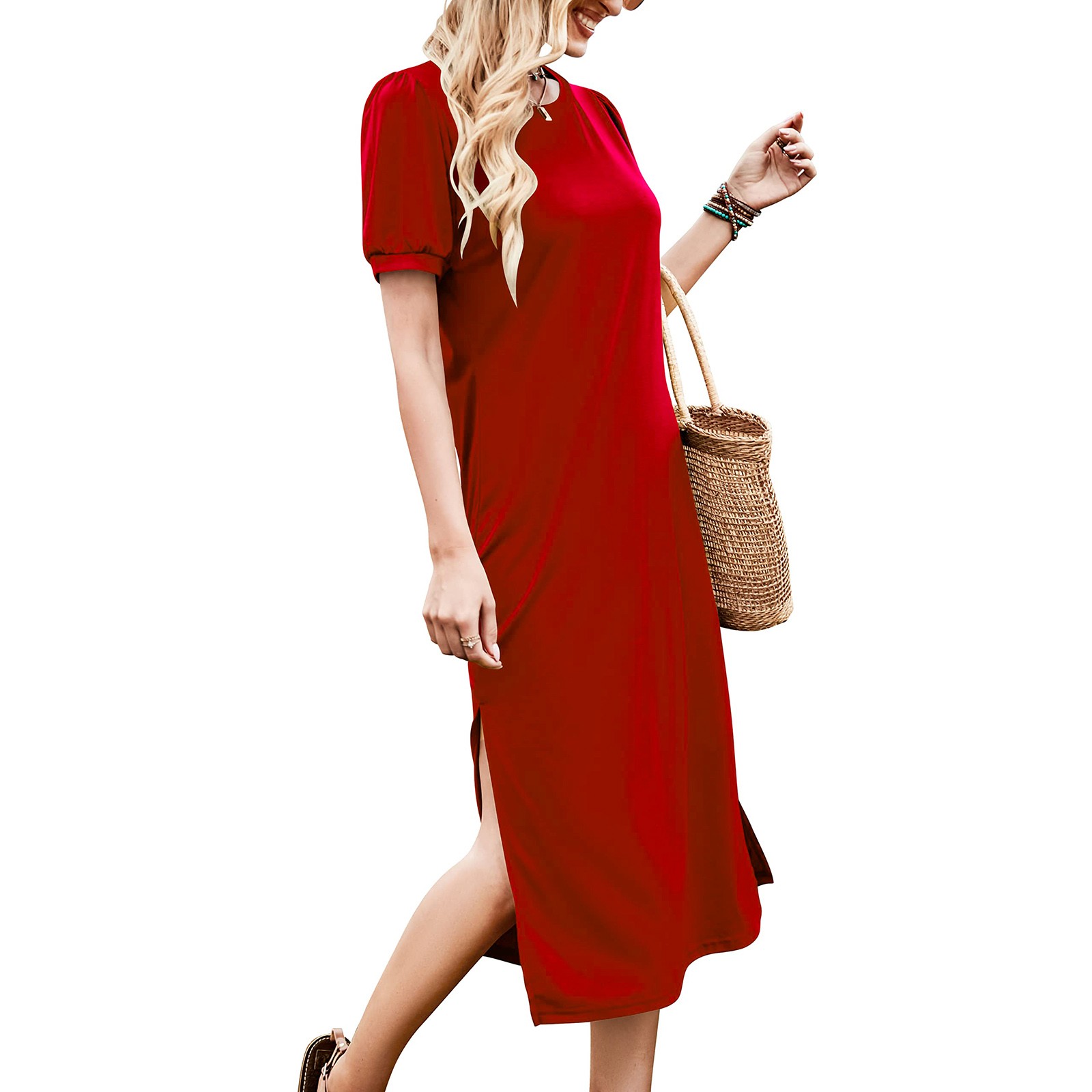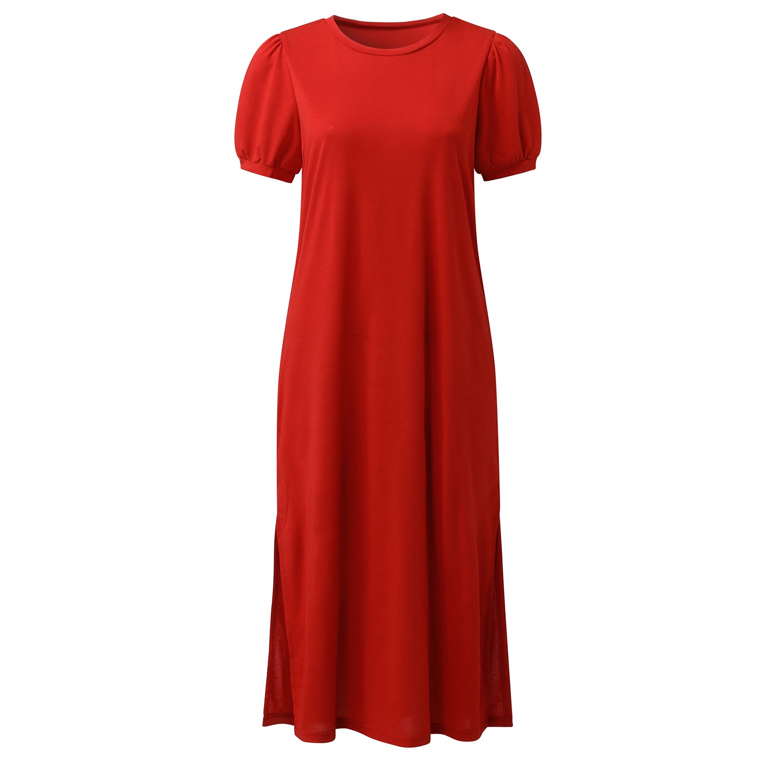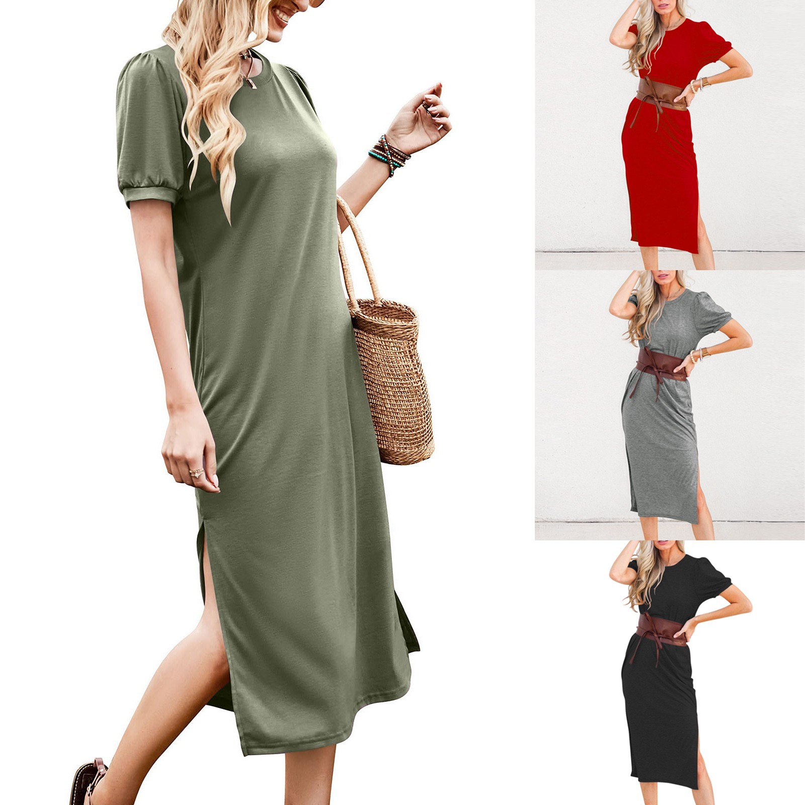 Женская Повседневная футболка с пышными рукавами, платье средней длины, летнее однотонное платье с круглым вырезом, платье трапециевидной формы Features: 1.It is made of high quality materials,100% Polyester,durable enought for your daily wearing 2.Great for party,Daily,Beach,I am sure you will like it! 3. This stunning midi dress is made for causal summer days! Featuring crew neck,short puff sleeves, with cuffs,Elasticized shoulders and cuffs,Straight & simple in a relaxed fit. The midi shift dress effortlessly “shifts” from desk to dinner,Side splits at hem. Occasion - This cute long midi T-shirt Dress glad for daily, 4.This cute long midi T-shirt Dress glad for daily, Beach,going out, party, work, casual wear. Loose t-shirt dress design,put on a belt and paired with a pair of boots will make you looks great. 5.Care - Machine/ Hand wash, not bleach, hang or line dry, low iron when necessary. Product information: Season: Autumn Winner Gender: Women Occasion: Casua Material:Chiffon Decoration: None Clothing Length: Regular Pattern Type:Solid Style: Fashion, Causal What you get: 1PC Women Dress