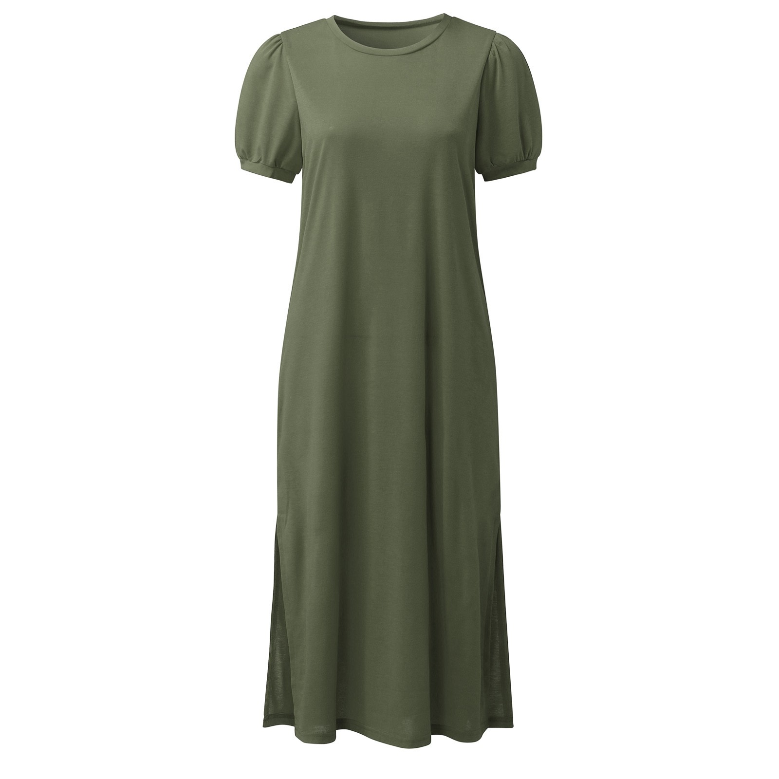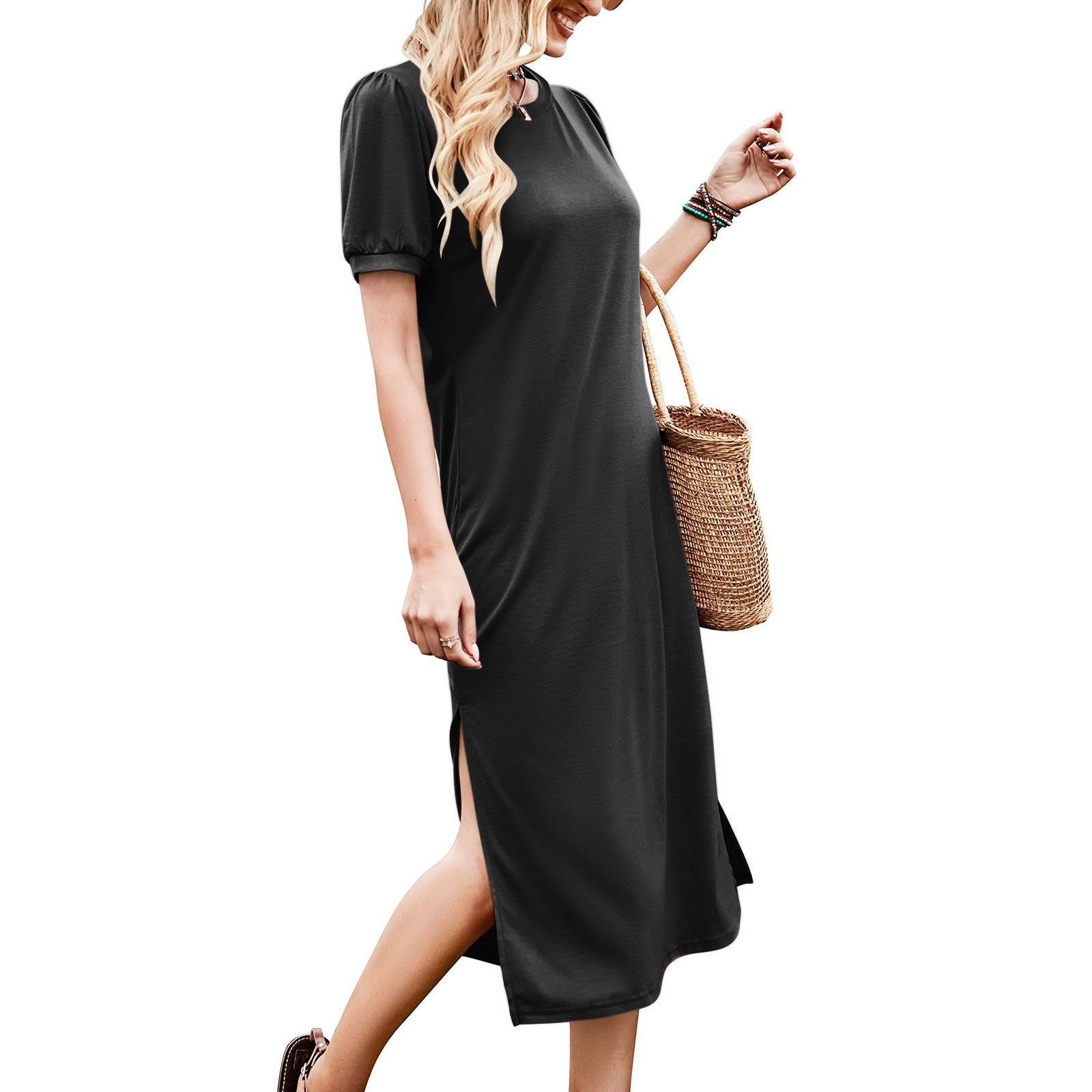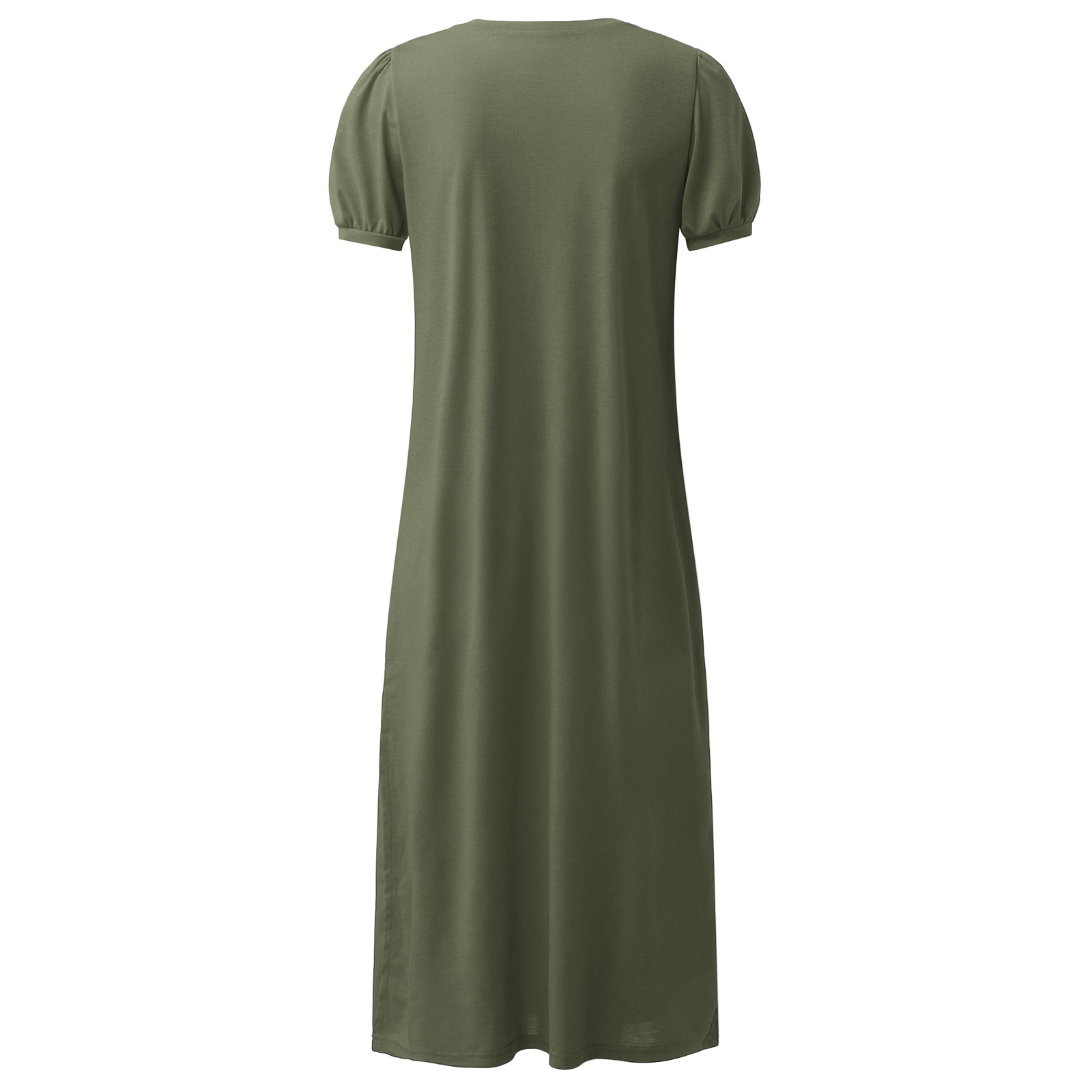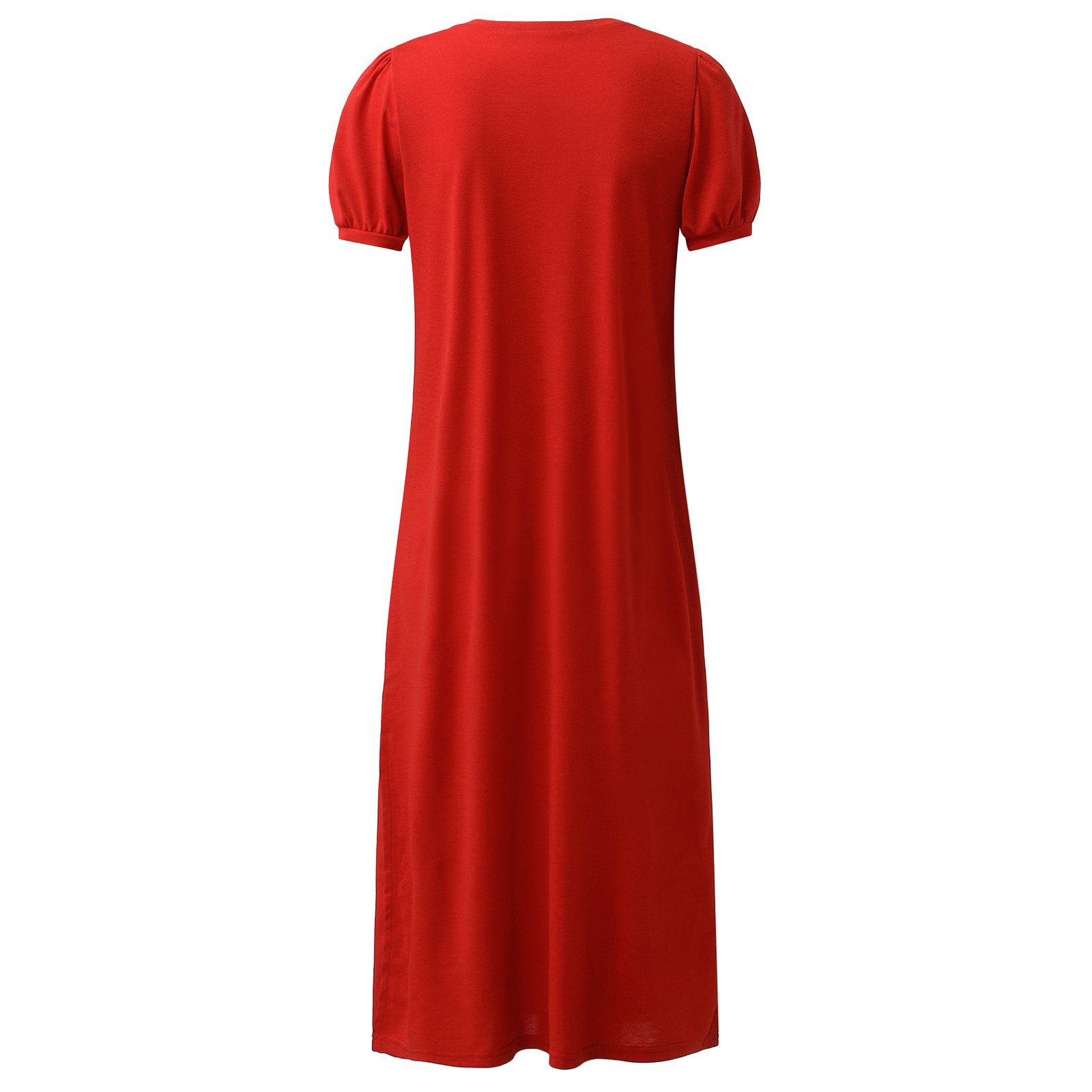 Женская Повседневная футболка с пышными рукавами, платье средней длины, летнее однотонное платье с круглым вырезом, платье трапециевидной формы Features: 1.It is made of high quality materials,100% Polyester,durable enought for your daily wearing 2.Great for party,Daily,Beach,I am sure you will like it! 3. This stunning midi dress is made for causal summer days! Featuring crew neck,short puff sleeves, with cuffs,Elasticized shoulders and cuffs,Straight & simple in a relaxed fit. The midi shift dress effortlessly “shifts” from desk to dinner,Side splits at hem. Occasion - This cute long midi T-shirt Dress glad for daily, 4.This cute long midi T-shirt Dress glad for daily, Beach,going out, party, work, casual wear. Loose t-shirt dress design,put on a belt and paired with a pair of boots will make you looks great. 5.Care - Machine/ Hand wash, not bleach, hang or line dry, low iron when necessary. Product information: Season: Autumn Winner Gender: Women Occasion: Casua Material:Chiffon Decoration: None Clothing Length: Regular Pattern Type:Solid Style: Fashion, Causal What you get: 1PC Women Dress