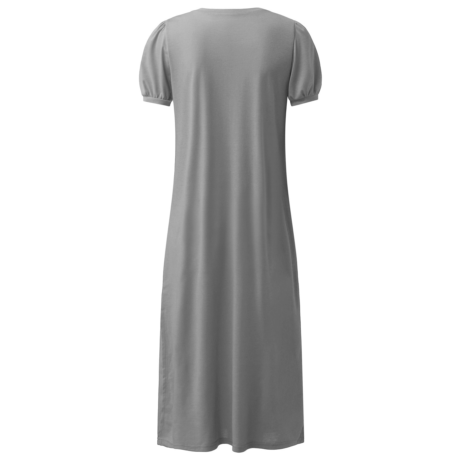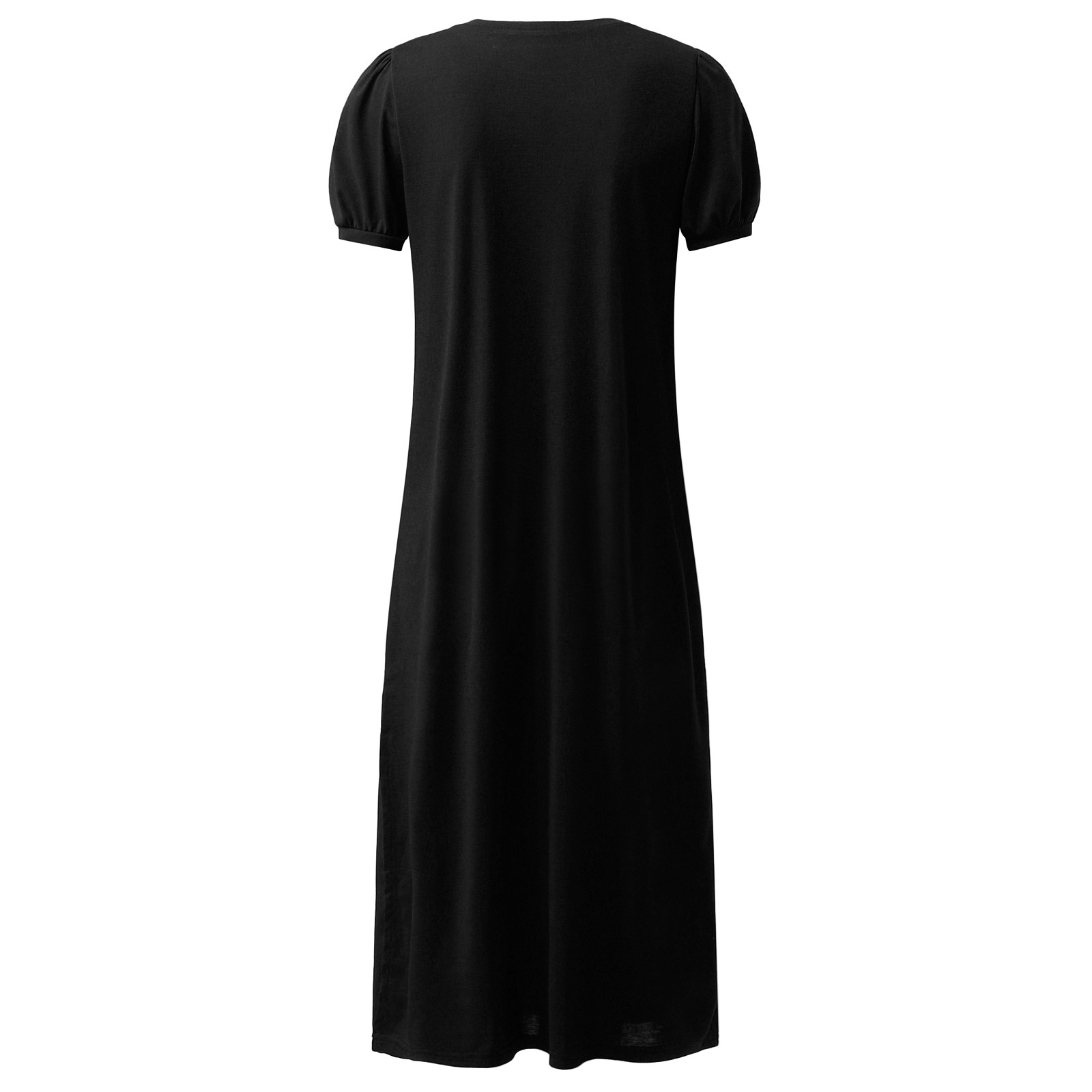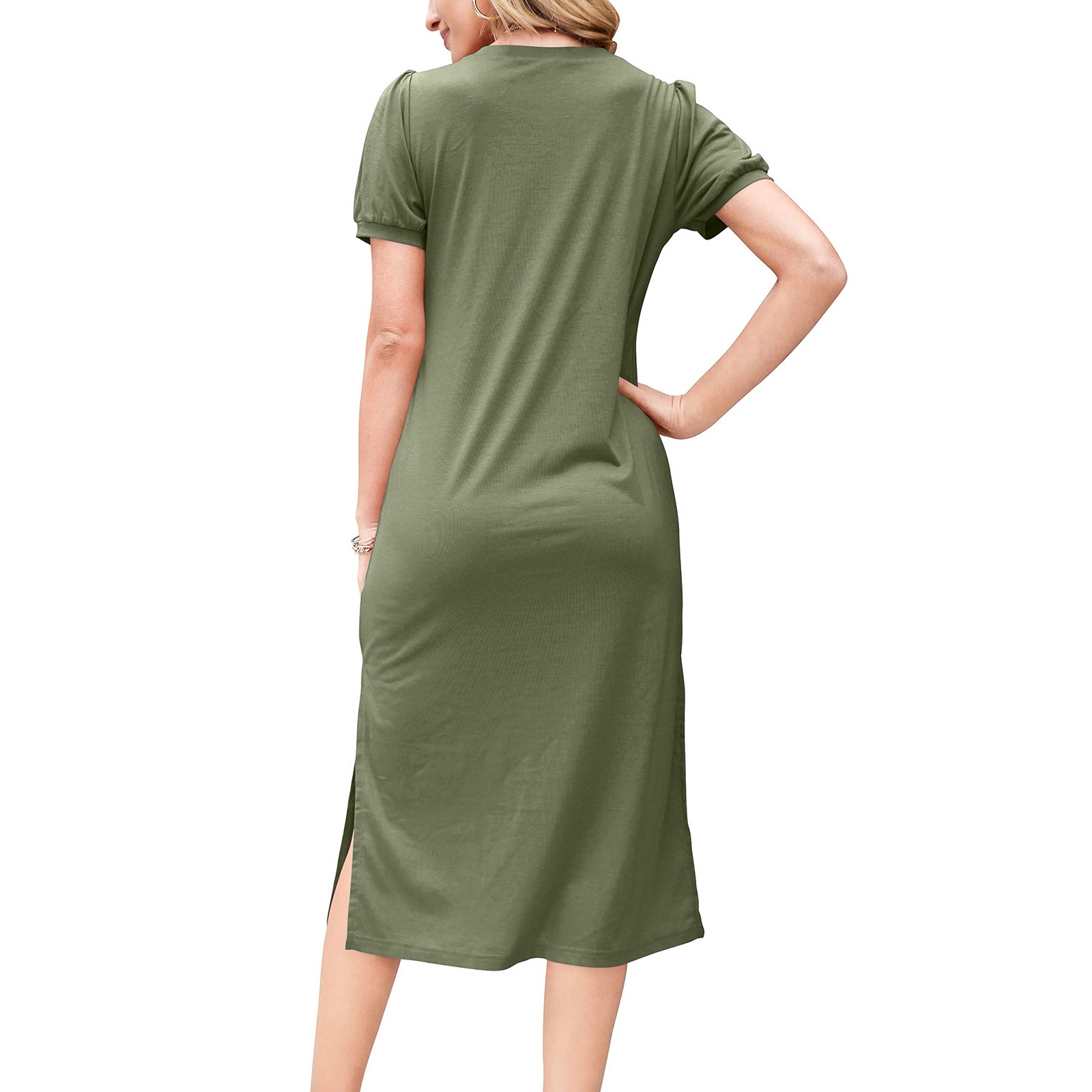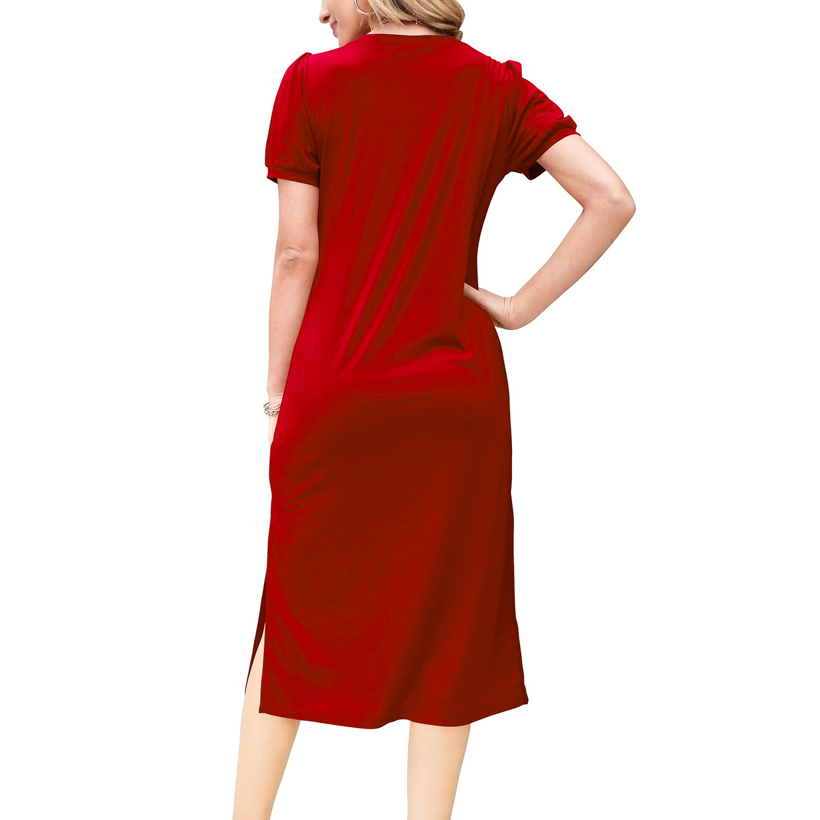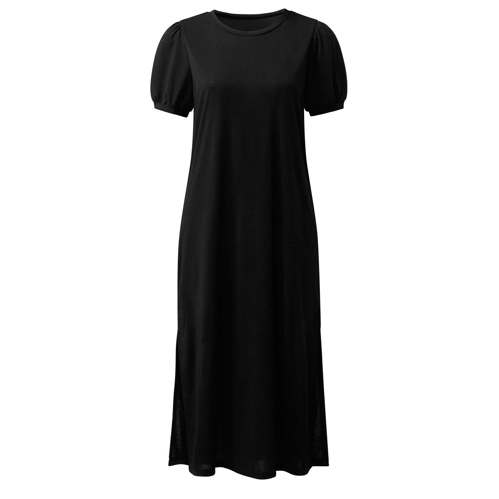 Женская Повседневная футболка с пышными рукавами, платье средней длины, летнее однотонное платье с круглым вырезом, платье трапециевидной формы Features: 1.It is made of high quality materials,100% Polyester,durable enought for your daily wearing 2.Great for party,Daily,Beach,I am sure you will like it! 3. This stunning midi dress is made for causal summer days! Featuring crew neck,short puff sleeves, with cuffs,Elasticized shoulders and cuffs,Straight & simple in a relaxed fit. The midi shift dress effortlessly “shifts” from desk to dinner,Side splits at hem. Occasion - This cute long midi T-shirt Dress glad for daily, 4.This cute long midi T-shirt Dress glad for daily, Beach,going out, party, work, casual wear. Loose t-shirt dress design,put on a belt and paired with a pair of boots will make you looks great. 5.Care - Machine/ Hand wash, not bleach, hang or line dry, low iron when necessary. Product information: Season: Autumn Winner Gender: Women Occasion: Casua Material:Chiffon Decoration: None Clothing Length: Regular Pattern Type:Solid Style: Fashion, Causal What you get: 1PC Women Dress