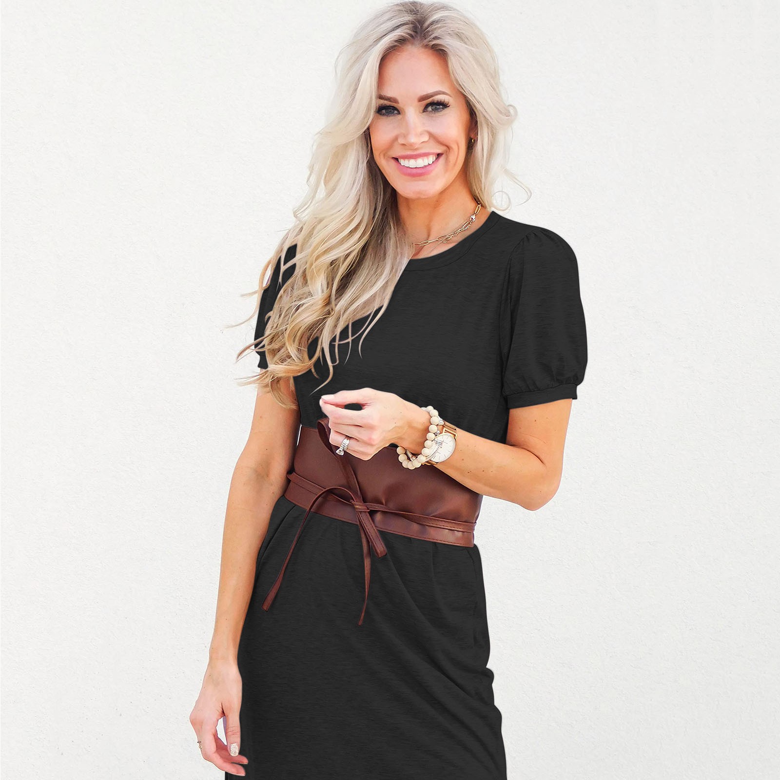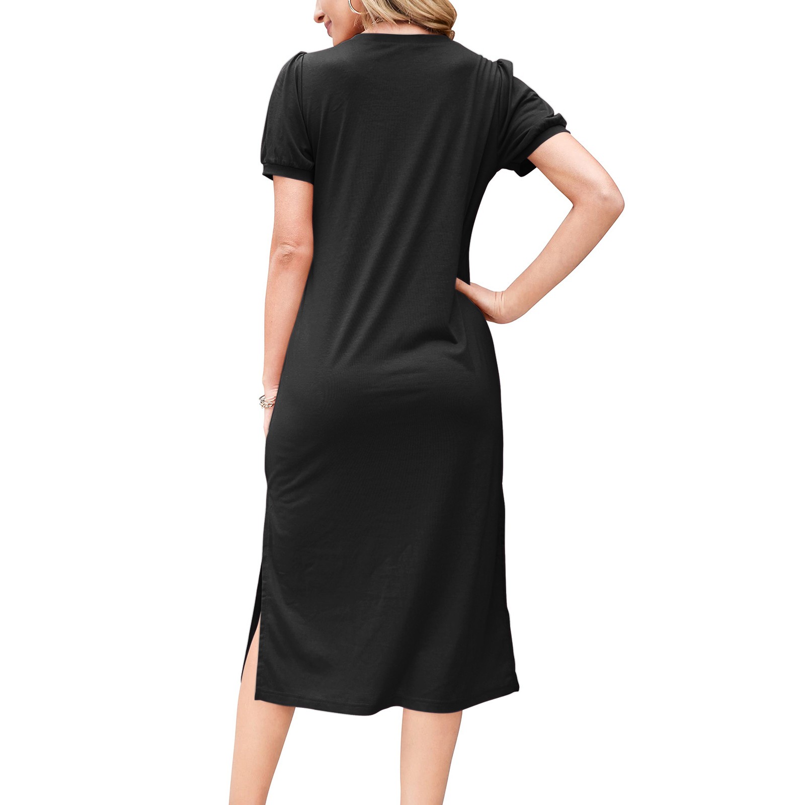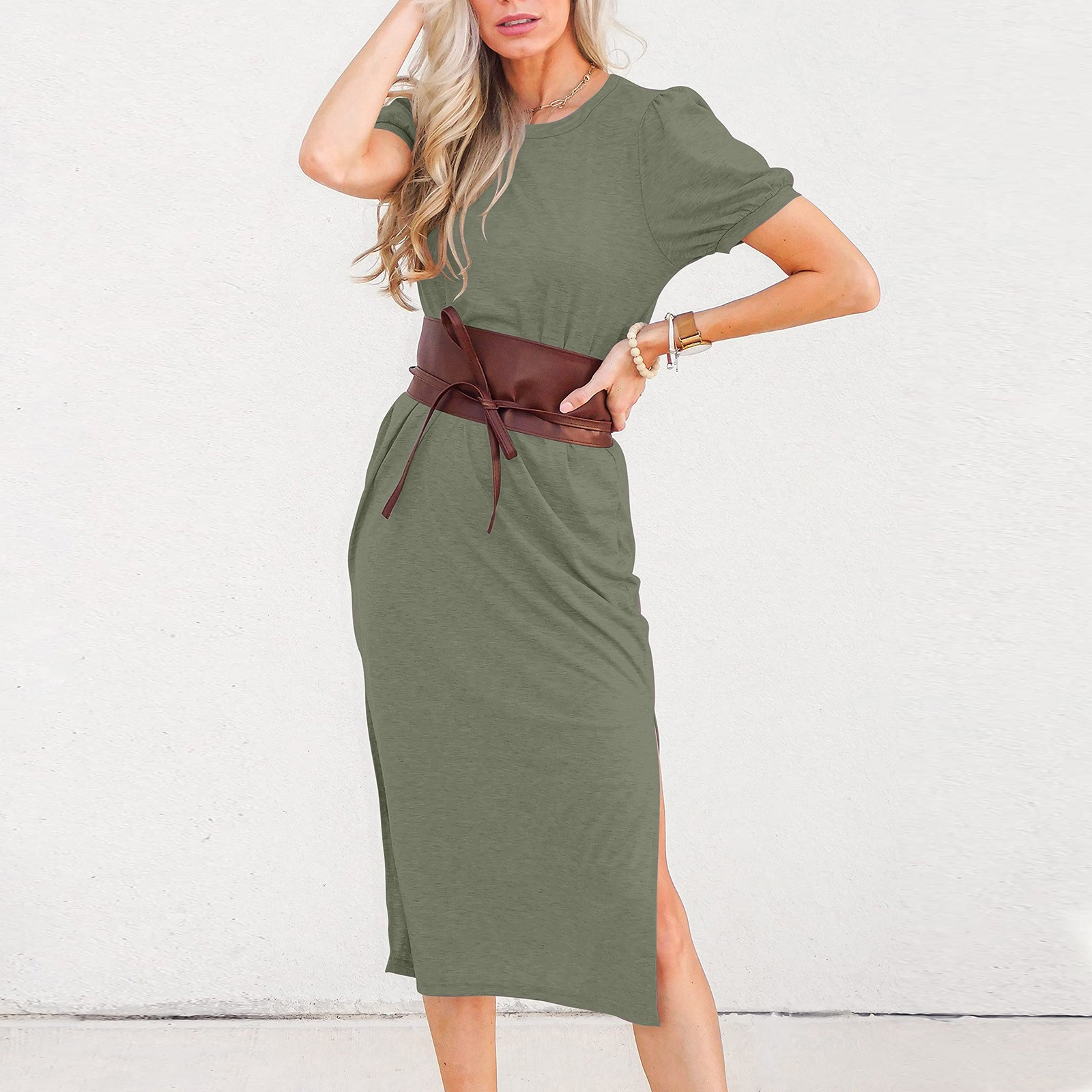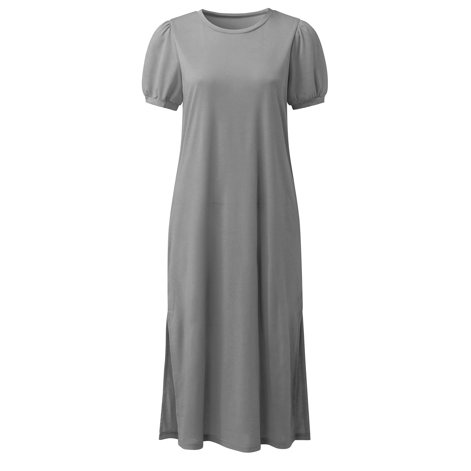 Женская Повседневная футболка с пышными рукавами, платье средней длины, летнее однотонное платье с круглым вырезом, платье трапециевидной формы Features: 1.It is made of high quality materials,100% Polyester,durable enought for your daily wearing 2.Great for party,Daily,Beach,I am sure you will like it! 3. This stunning midi dress is made for causal summer days! Featuring crew neck,short puff sleeves, with cuffs,Elasticized shoulders and cuffs,Straight & simple in a relaxed fit. The midi shift dress effortlessly “shifts” from desk to dinner,Side splits at hem. Occasion - This cute long midi T-shirt Dress glad for daily, 4.This cute long midi T-shirt Dress glad for daily, Beach,going out, party, work, casual wear. Loose t-shirt dress design,put on a belt and paired with a pair of boots will make you looks great. 5.Care - Machine/ Hand wash, not bleach, hang or line dry, low iron when necessary. Product information: Season: Autumn Winner Gender: Women Occasion: Casua Material:Chiffon Decoration: None Clothing Length: Regular Pattern Type:Solid Style: Fashion, Causal What you get: 1PC Women Dress