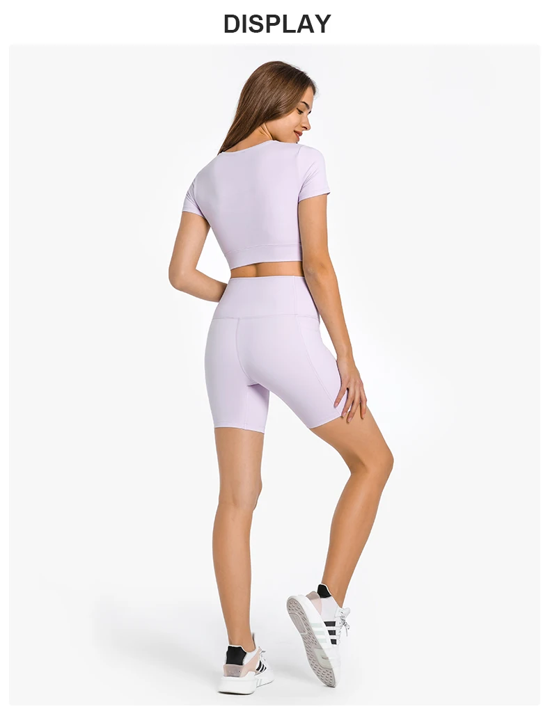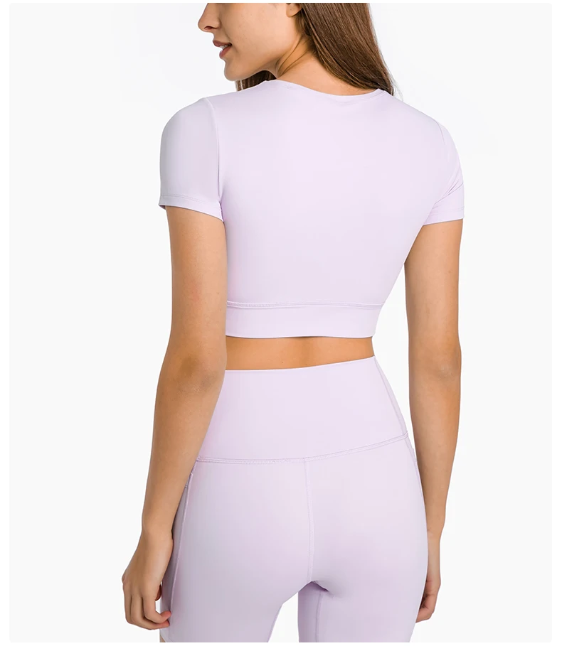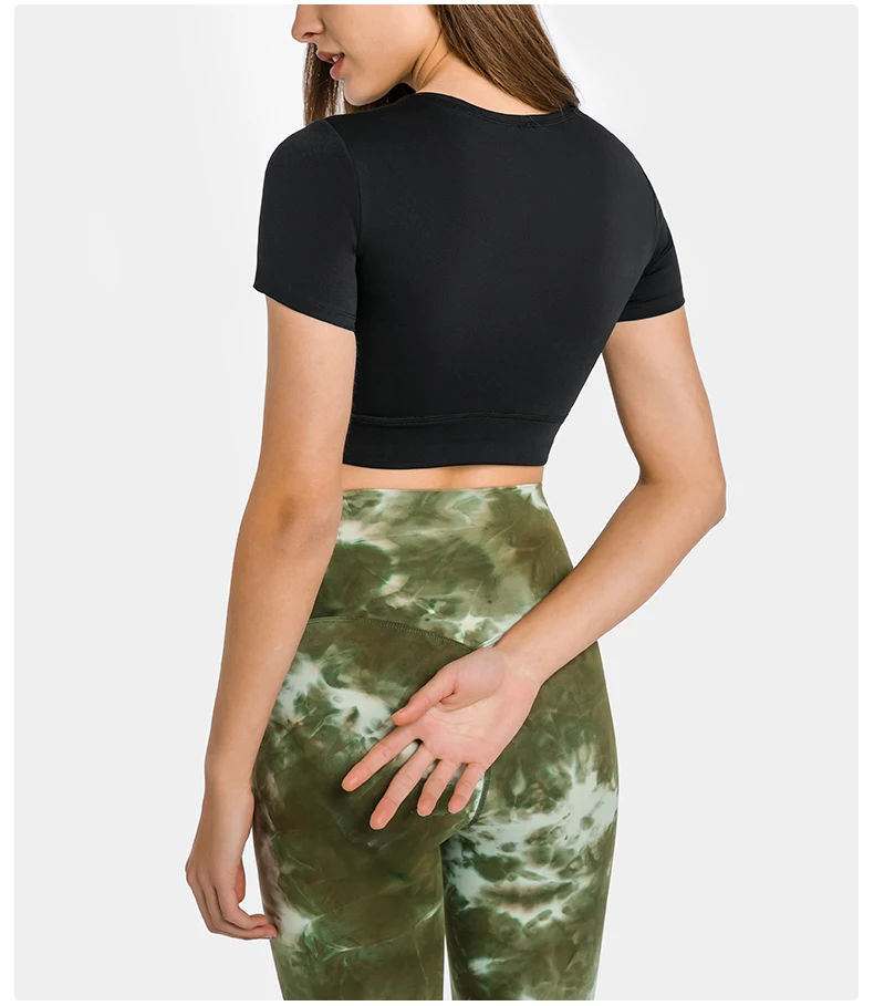 Женский облегающий топ для тренировок ABS LOLI, укороченный топ с круглым вырезом и коротким рукавом для занятий спортом, йогой и йогой, Спортивная рубашка со встроенным бюстгальтером